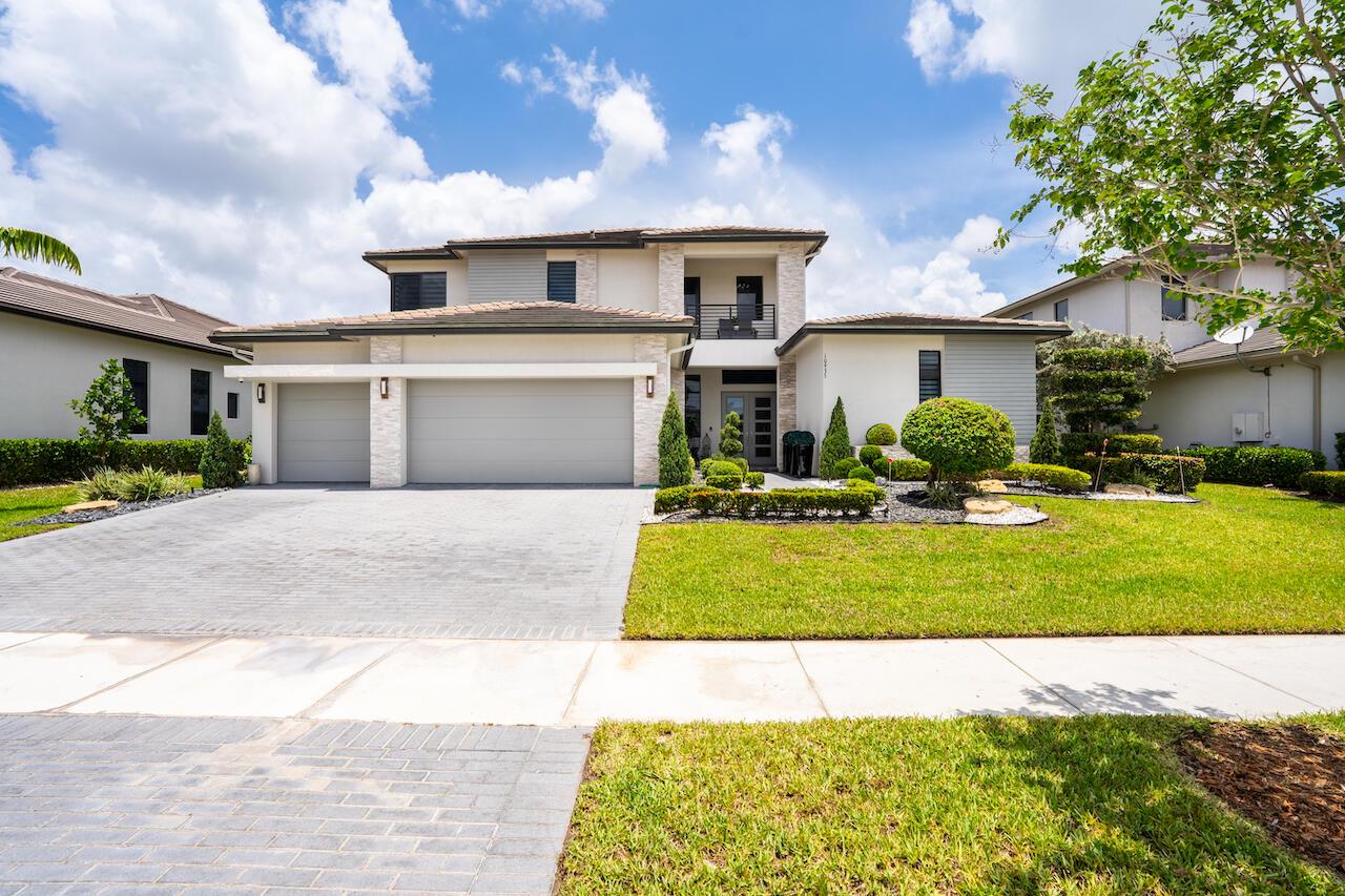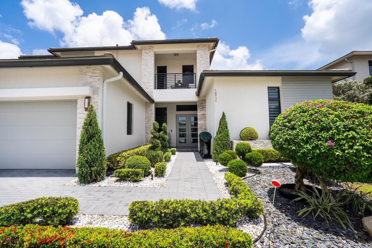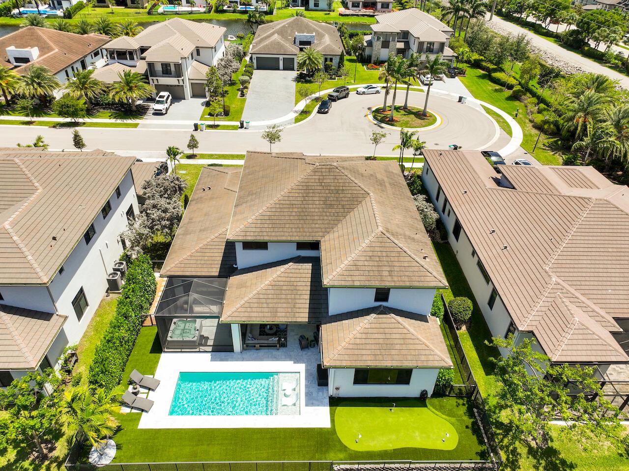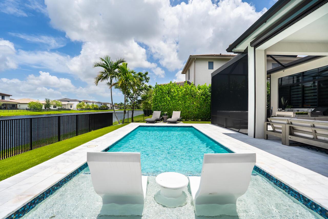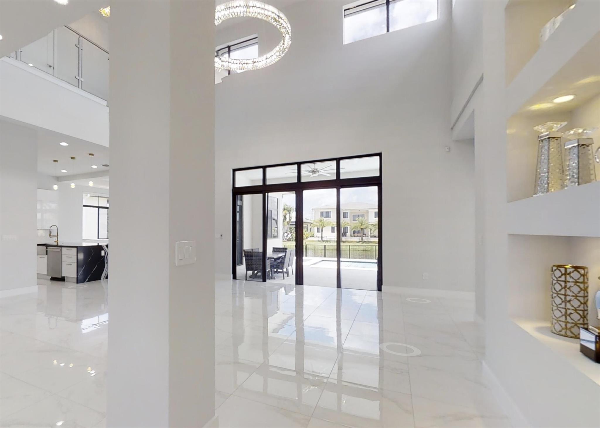 Spectacular CC Homes built Nouvelle model in Cascata. 5 bedrooms + loft, 4.5 baths, 3 car garage, soaring high ceilings & massive open concept floor plan. Chef's kitchen, white upgraded cabinetry, two tone quartz counters, high-end appliances, gas cooktop, snack-bar seating, & a true walk-in pantry. Spacious family room with custom wall unit. Elegant formal dining & living room with oversized porcelain tile throughout. Glass railings, electric blinds, complete home standby generator & impact windows/doors. 1st floor primary suite, oversized dual shower/tub luxurious bath. Enormous walk-in closet. Peaceful lake views from your electric screened patio or lounging in the pool. Private putting green & turf surround your marble paver patio. Amazing resort style amenities, A+ school