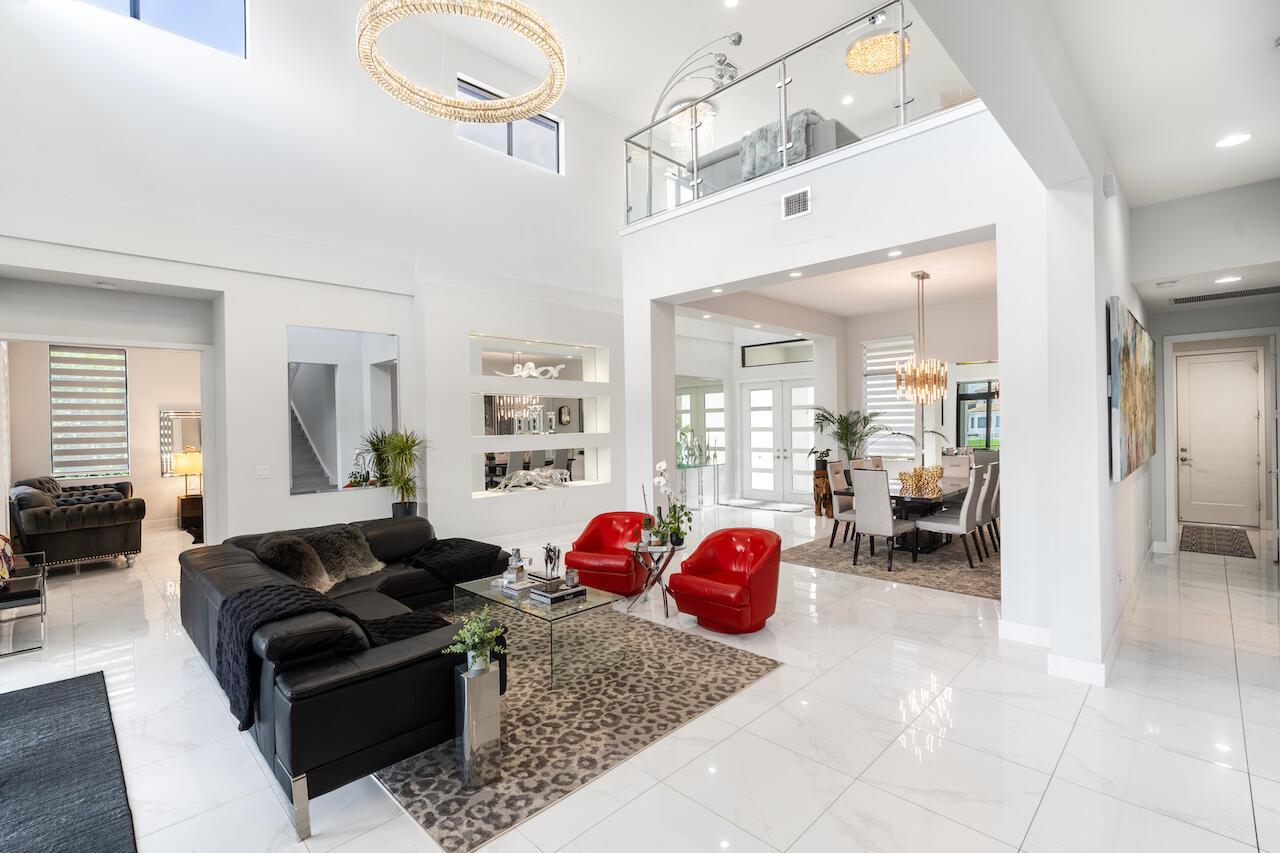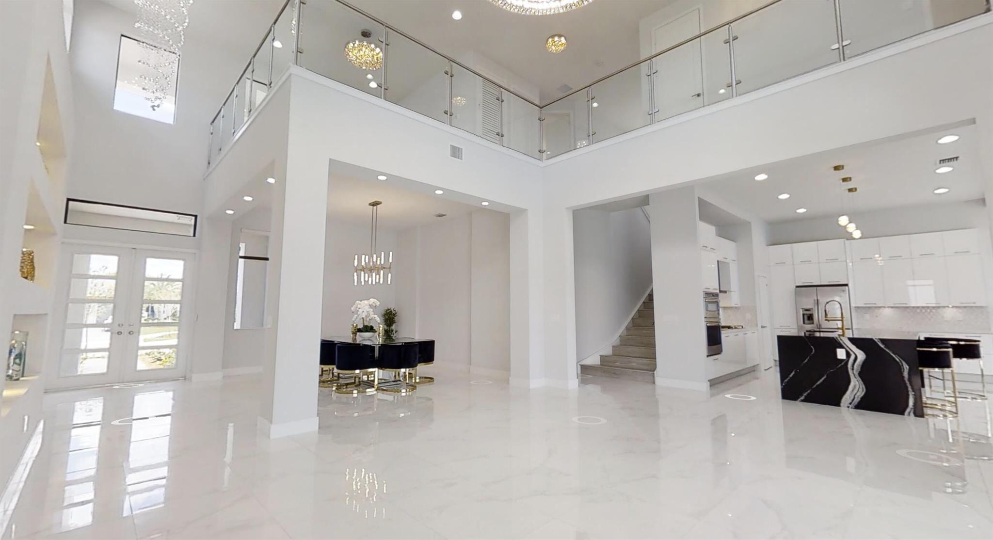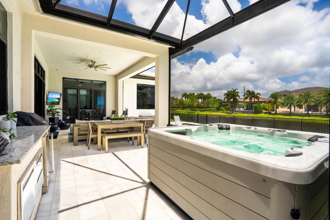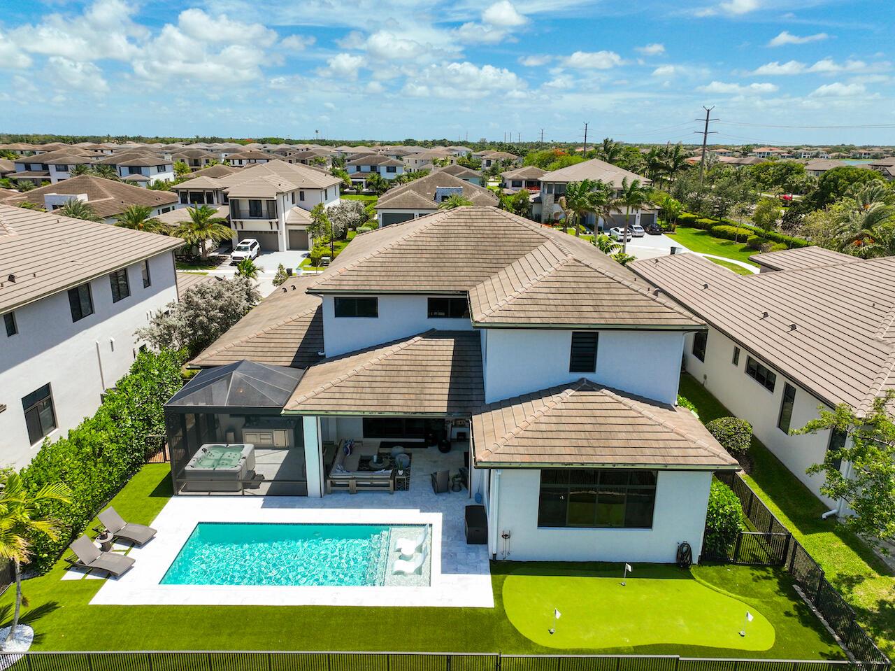 Spectacular CC Homes built Nouvelle model in Cascata. 5 bedrooms + loft, 4.5 baths, 3 car garage, soaring high ceilings & massive open concept floor plan. Chef's kitchen, white upgraded cabinetry, two tone quartz counters, high-end appliances, gas cooktop, snack-bar seating, & a true walk-in pantry. Spacious family room with custom wall unit. Elegant formal dining & living room with oversized porcelain tile throughout. Glass railings, electric blinds, complete home standby generator & impact windows/doors. 1st floor primary suite, oversized dual shower/tub luxurious bath. Enormous walk-in closet. Peaceful lake views from your electric screened patio or lounging in the pool. Private putting green & turf surround your marble paver patio. Amazing resort style amenities, A+ school