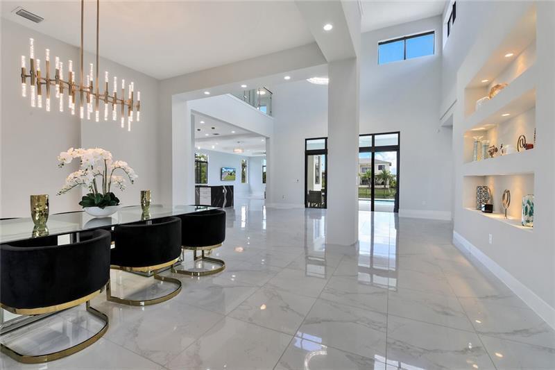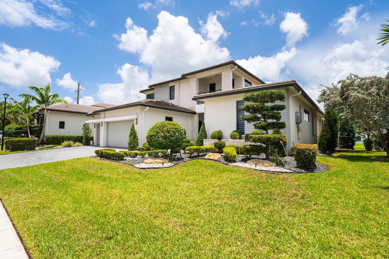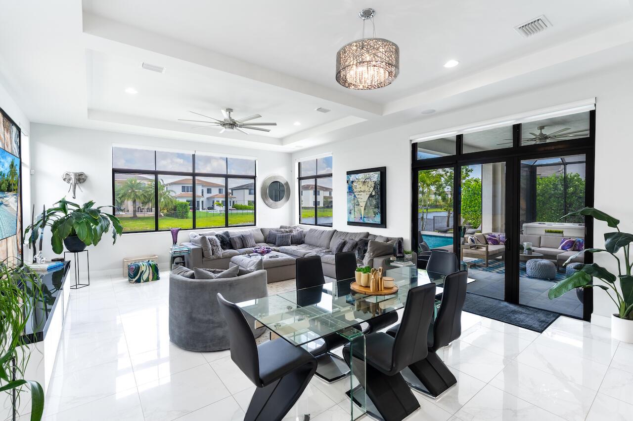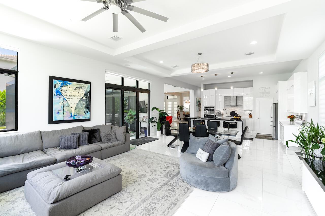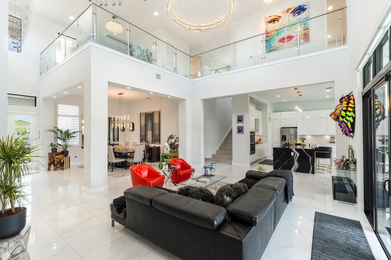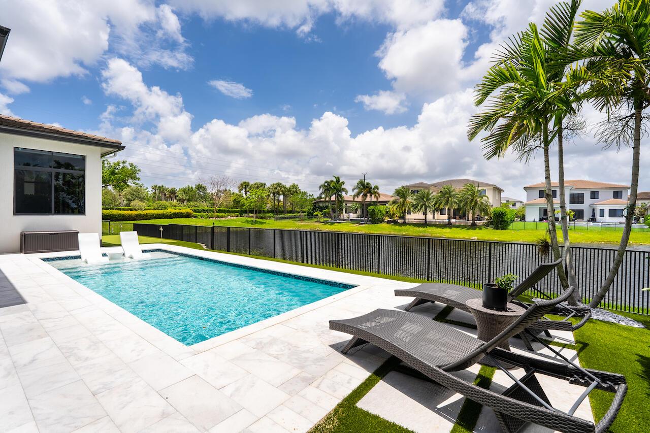 Spectacular CC Homes built Nouvelle model in Cascata. 5 bedrooms + loft, 4.5 baths, 3 car garage, soaring high ceilings & massive open concept floor plan. Chef's kitchen, white upgraded cabinetry, two tone quartz counters, high-end appliances, gas cooktop, snack-bar seating, & a true walk-in pantry. Spacious family room with custom wall unit. Elegant formal dining & living room with oversized porcelain tile throughout. Glass railings, electric blinds, complete home standby generator & impact windows/doors. 1st floor primary suite, oversized dual shower/tub luxurious bath. Enormous walk-in closet. Peaceful lake views from your electric screened patio or lounging in the pool. Private putting green & turf surround your marble paver patio. Amazing resort style amenities, A+ school