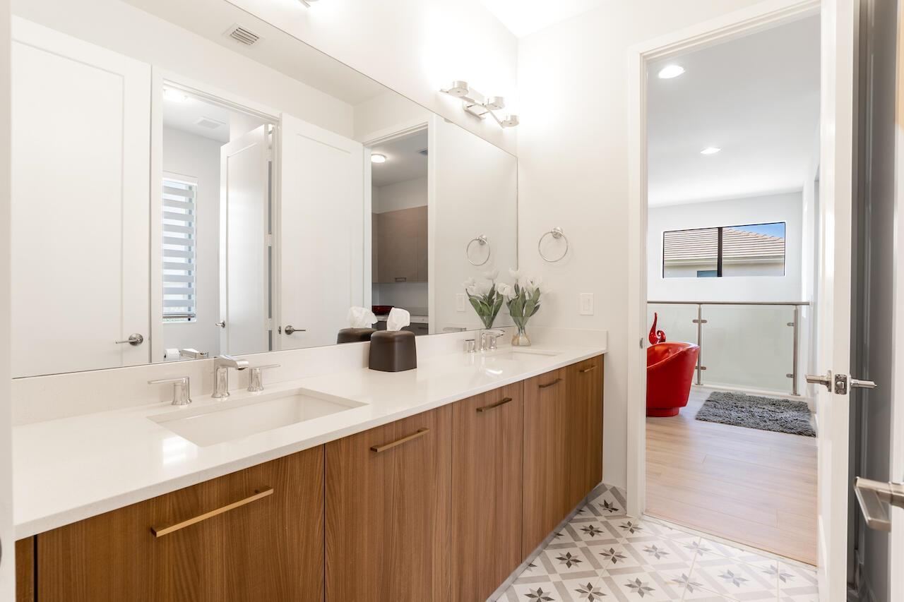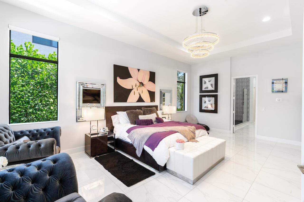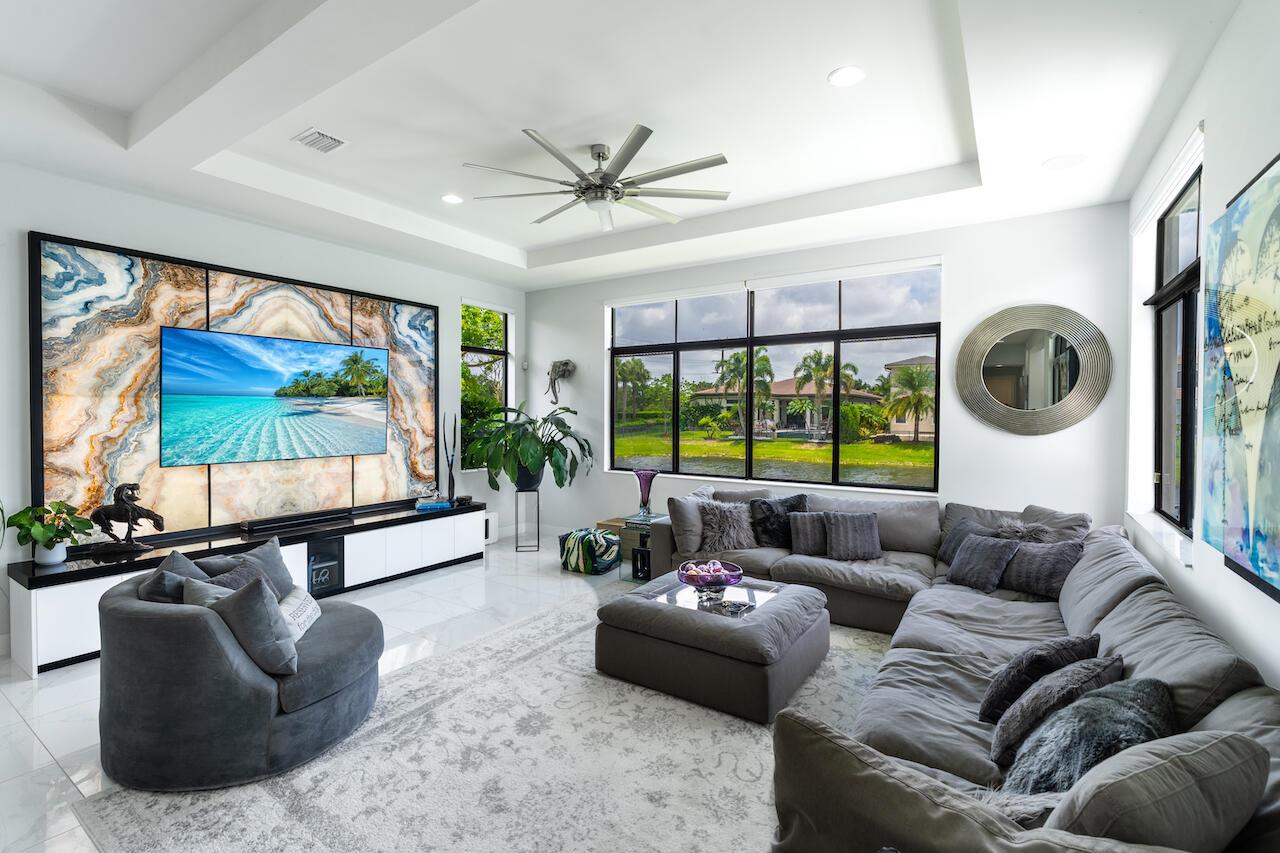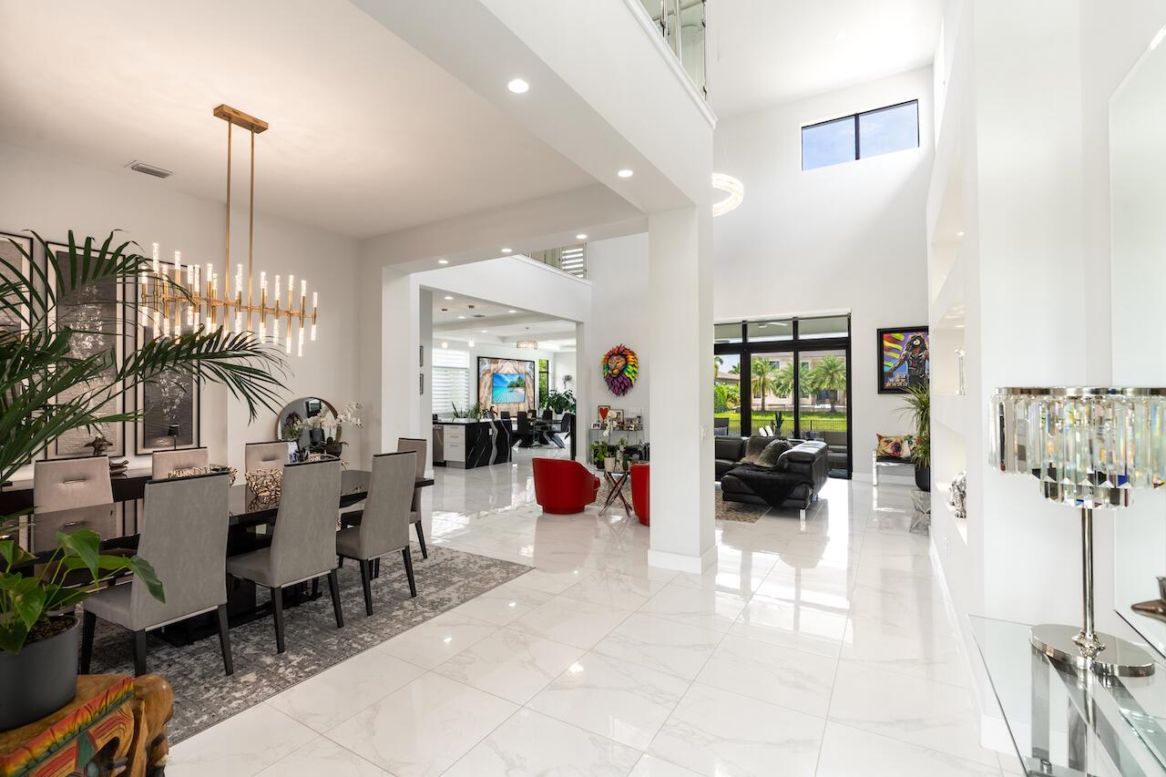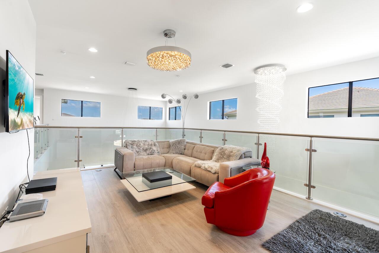 Spectacular CC Homes built Nouvelle model in Cascata. 5 bedrooms + loft, 4.5 baths, 3 car garage, soaring high ceilings & massive open concept floor plan. Chef's kitchen, white upgraded cabinetry, two tone quartz counters, high-end appliances, gas cooktop, snack-bar seating, & a true walk-in pantry. Spacious family room with custom wall unit. Elegant formal dining & living room with oversized porcelain tile throughout. Glass railings, electric blinds, complete home standby generator & impact windows/doors. 1st floor primary suite, oversized dual shower/tub luxurious bath. Enormous walk-in closet. Peaceful lake views from your electric screened patio or lounging in the pool. Private putting green & turf surround your marble paver patio. Amazing resort style amenities, A+ school