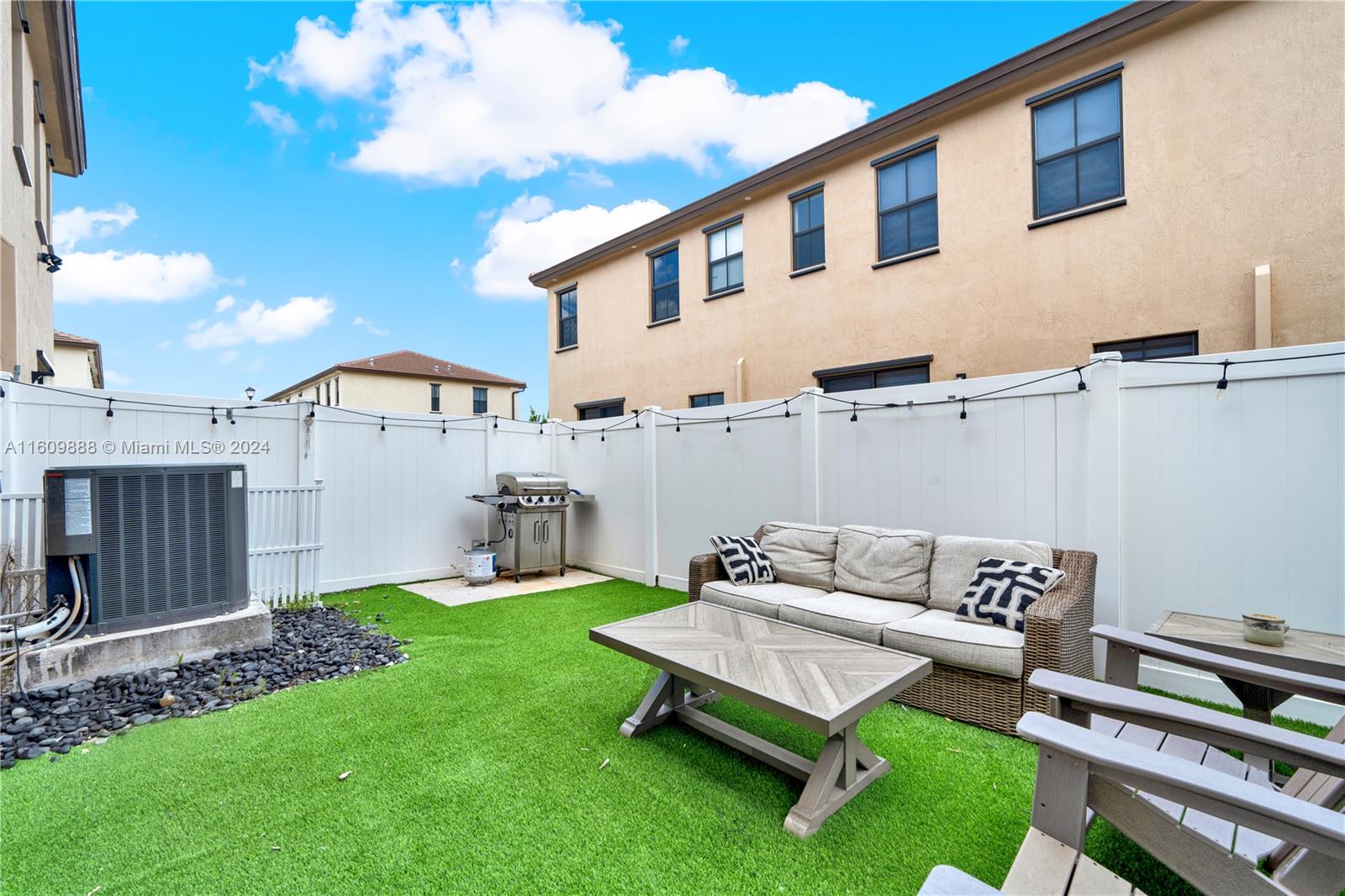 Discover your new home in the Aquabella gated community of Hialeah Gardens. This modern 2020-built townhouse offers 4 bedrooms, 2.5 bathrooms, and over 2,000 sq ft of living space, including a living room, dining room, and family space. The home features tile floors downstairs and wood flooring upstairs. Hurricane impact windows provide protection, and the kitchen has quartz countertops and stainless steel appliances. Enjoy the backyard with turf and an AC-equipped garage that can be used as a traditional garage, gym, office, or extra room. Aquabella offers resort-style pools, gyms, green areas, lakes, and play areas. Nearby are great schools and shopping centers with childcare, restaurants, shops, pharmacies, gas stations, and banks. Comfort and an active lifestyle await you.