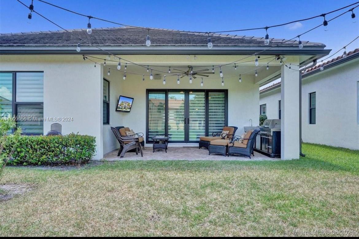 This gated home shows like a model. This open concept 3/2.5 Lakefront home in the desirable Raintree community has it all! A large master suite with his and her walk in closets. Tesla solar panels with power wall, charging station for Electric car, hurricane impact windows, outdoor bbq/kitchen, custom landscape, screened garage door, extended driveway security cameras, large kitchen with island, SS appliances , quartz/granite countertops. Resort style clubhouse pool and gym. Available fully furnished and turn key. Seller is a licensed Real Estate Agent.