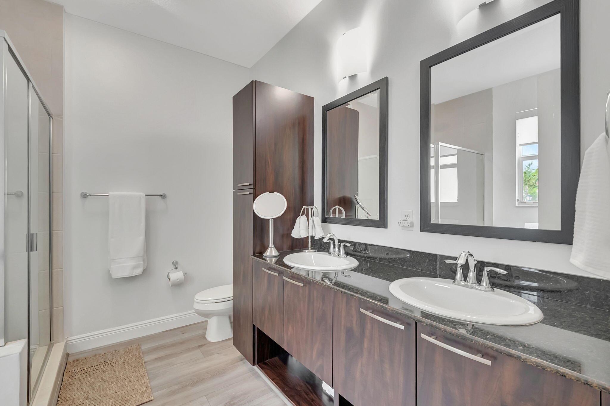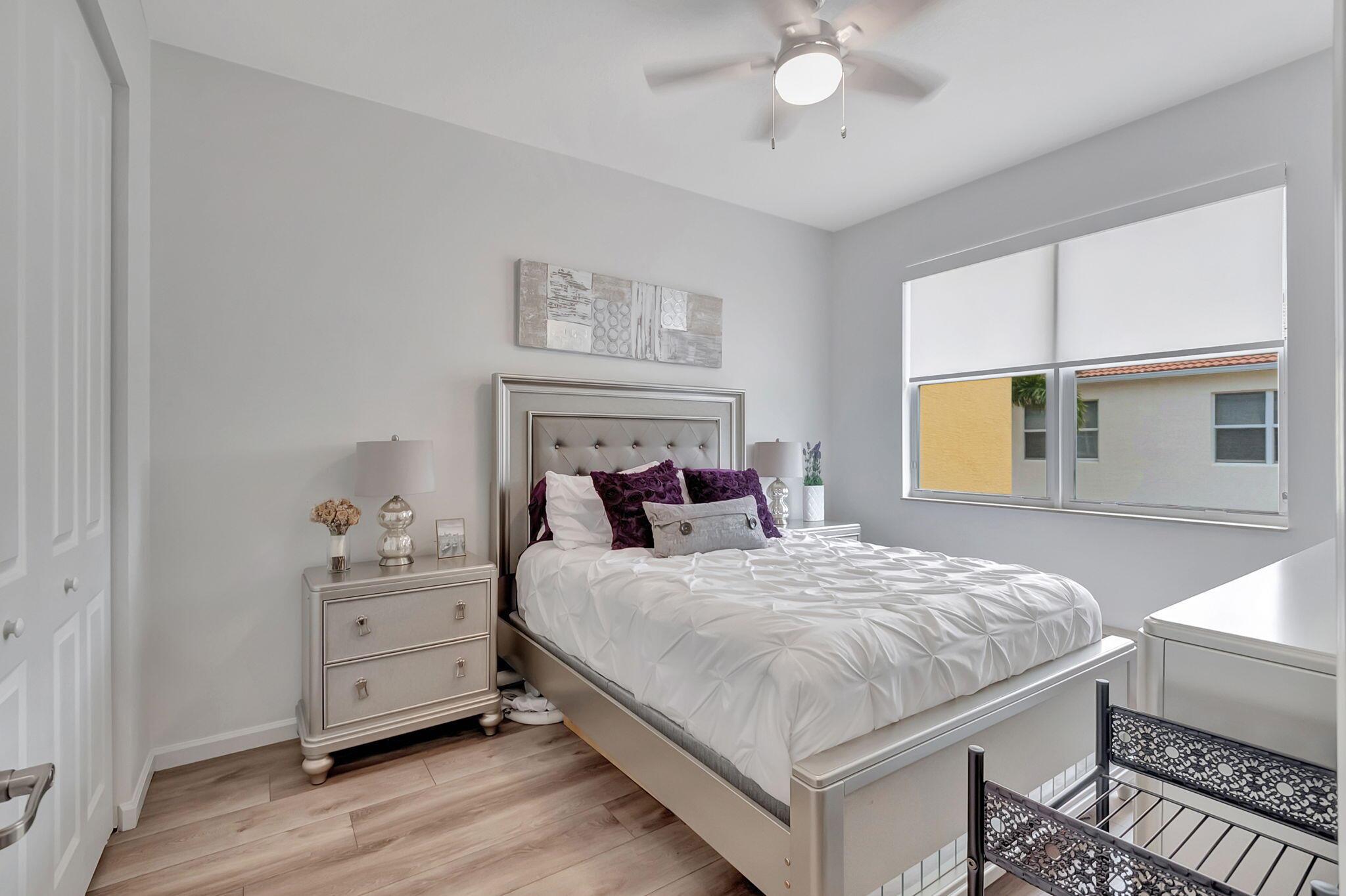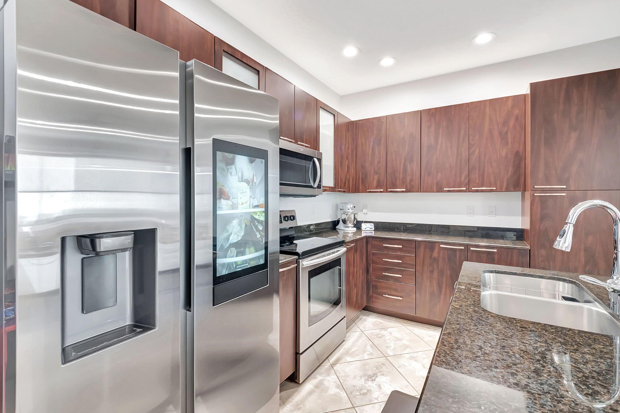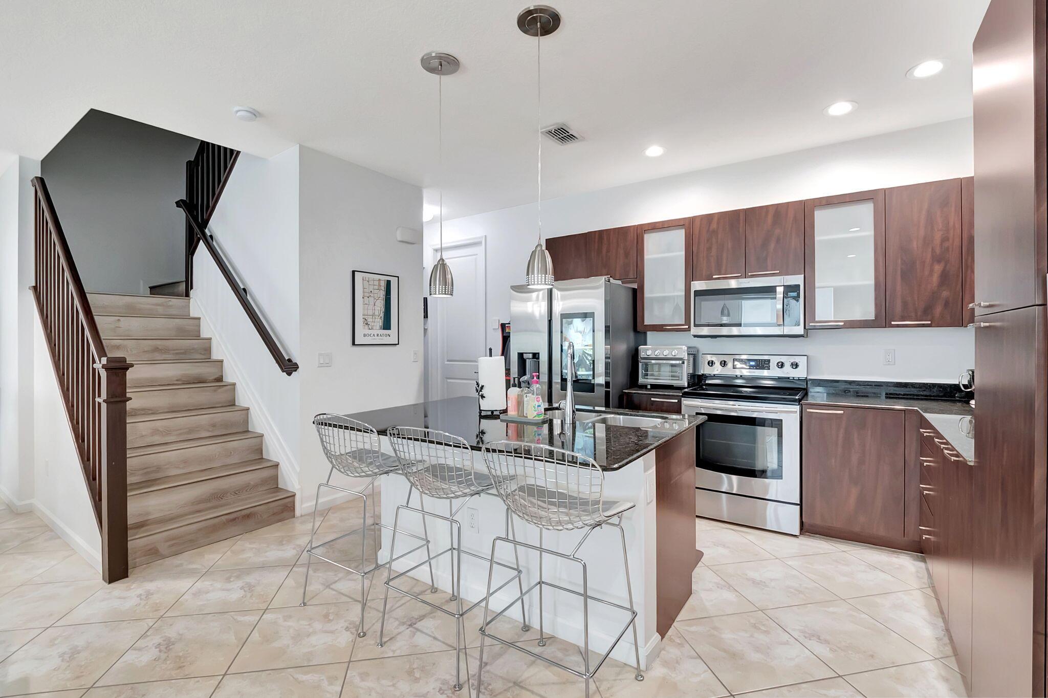 Inside this upgraded townhouse in Centra, you'll find an open-plan living area with modern fixtures, custom Bali roller shades, and full home hurricane impact windows. The kitchen features upgraded Samsung appliances, including a new Smart refrigerator and microwave. This smart home includes a full home Ring security system, smart lock on the front door, and an Ecobee thermostat. A new AC unit, full home air purification system, and 240V outlet for EV charging was recently installed. Upstairs, the master suite offers a custom built-out closet and 2 additional spacious bedrooms. LVT spans the entire second floor and staircase. Residents enjoy access to a recently renovated clubhouse with new gym equipment (including a Peloton bike), pool/hot tub playground and grill.