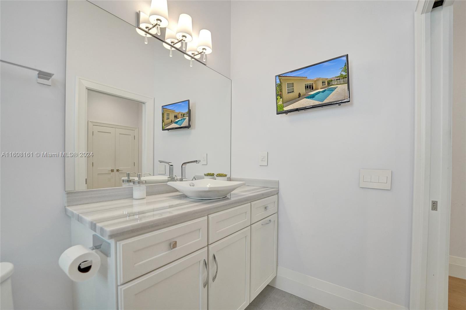 Experience unparalleled luxury in this fully renovated Bougainvillea model home. It features Duchateau wood flooring, custom-cut ceilings with designer beadboard inserts, and a grand center island kitchen with modern white shaker cabinets, marble countertops, a pot filler, and stainless steel appliances. Solid wood doors, a gas fireplace, and renovated bathrooms with Porcelanosa tile and Toto toilets. Custom closets, flat walls, 8" baseboards, and full-impact windows and doors. Outside, enjoy the travertine pool and spa, which are fully fenced and lushly landscaped. Every detail, from linear A/C vents to high-end lighting and custom garage flooring. Walk to the community pool, park, and top-rated schools. This home offers a perfect blend of luxury, comfort, and convenience.