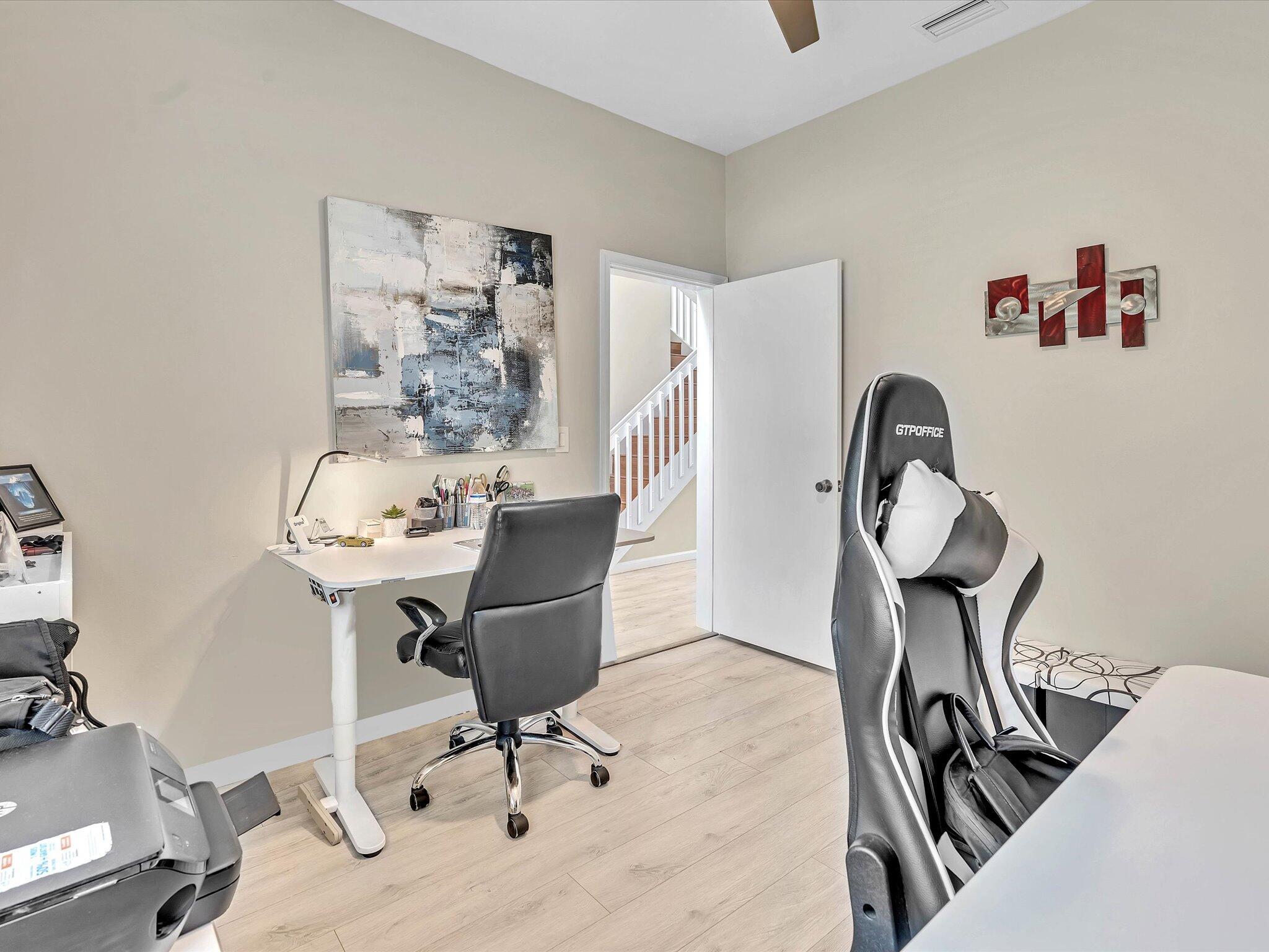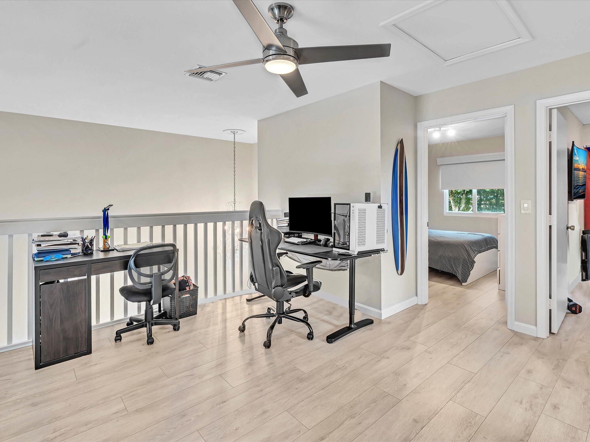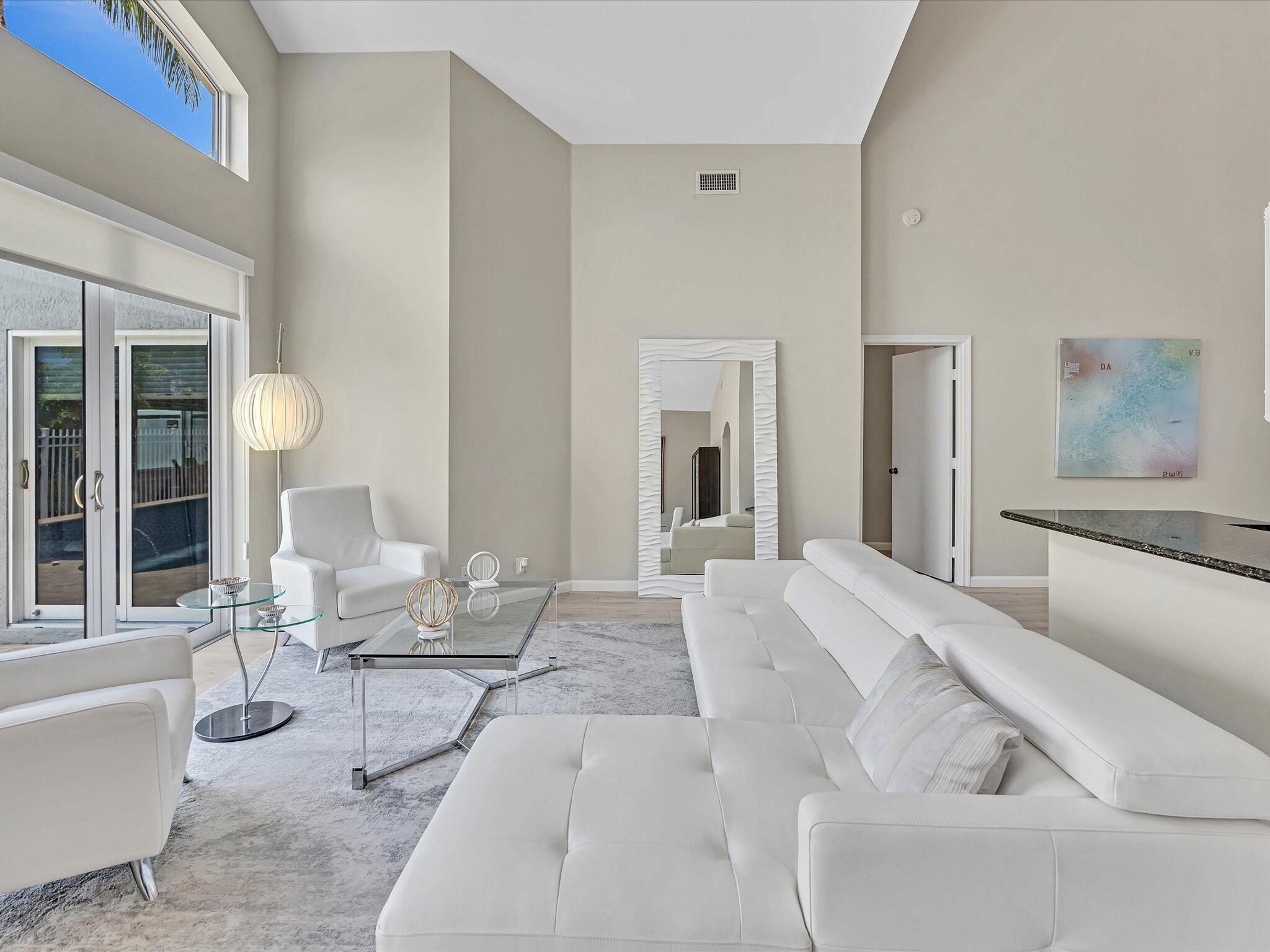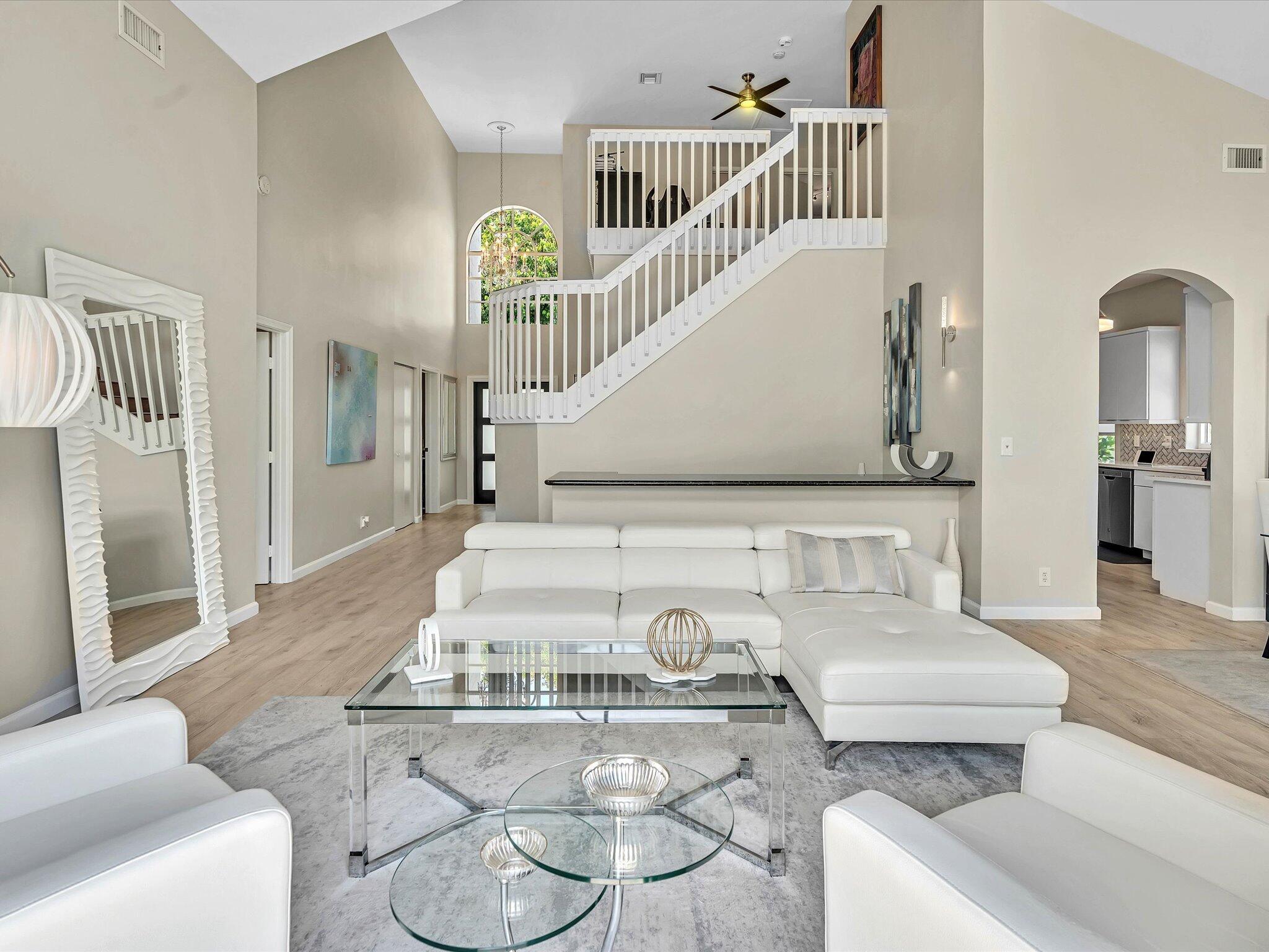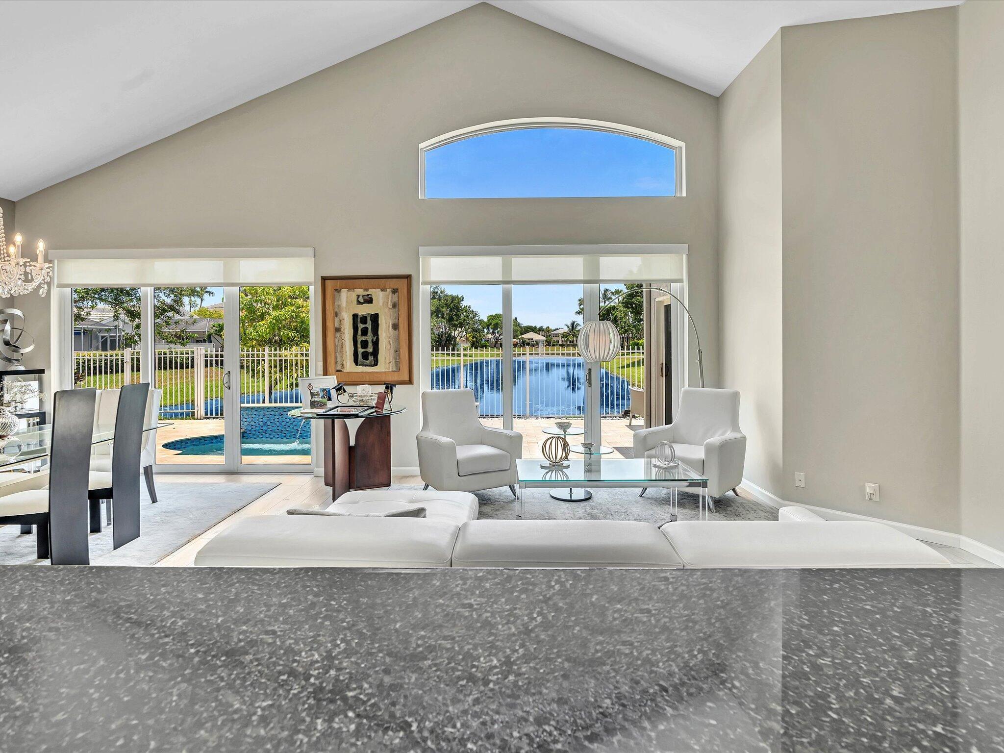 BREATHTAKING SINGLE FAMILY POOL HOME WITH LONG LAKE VIEWS IN THE PALMS at BOCA POINTE. Fully renovated,4 bdrms+Bdrm/office. Primary bdrm, office & den conveniently located on the main level. A chefs kitchen with walk in pantry, quartz countertops & SS appliances.The den for extra living space is located off the Kitchen.3 add'l bdrms, full bath & spacious loft area on the 2nd floor. Sliders from Dining/living rm open onto a peaceful backyard oasis, perfect for relaxing, entertaining.Other features include vaulted ceilings,Impact glass & updated flooring. Guard Gated. Community Pool. Country Club membership NOT Mandatory. Boca Pointe is an all age communityLIVE THE LIFE YOU DESERVE!