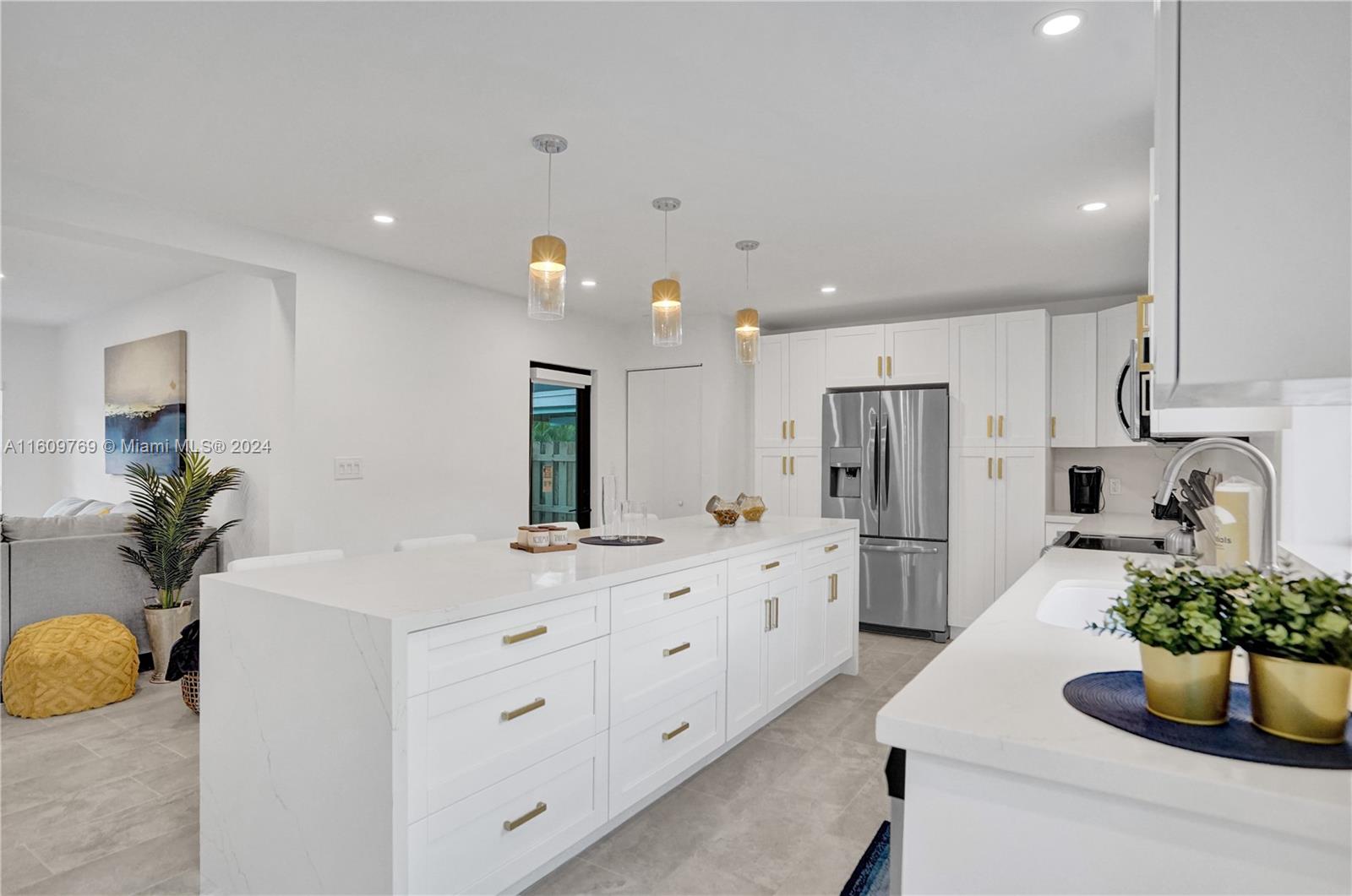 Beautiful and completely remodeled contemporary house with magnificent Kitchen. Tile floor throughout, huge opened kitchen, you will love this layout. Dream kitchen with white cabinets, quartz countertop and lots of space. Washer & dryer inside the house. Large backyard with lots of space for a pool. one could be yours to live or it could be the perfect house for short term rentals. Possibility to sell the furniture. Near downtown, the beaches and the restaurants. Don't wait!
