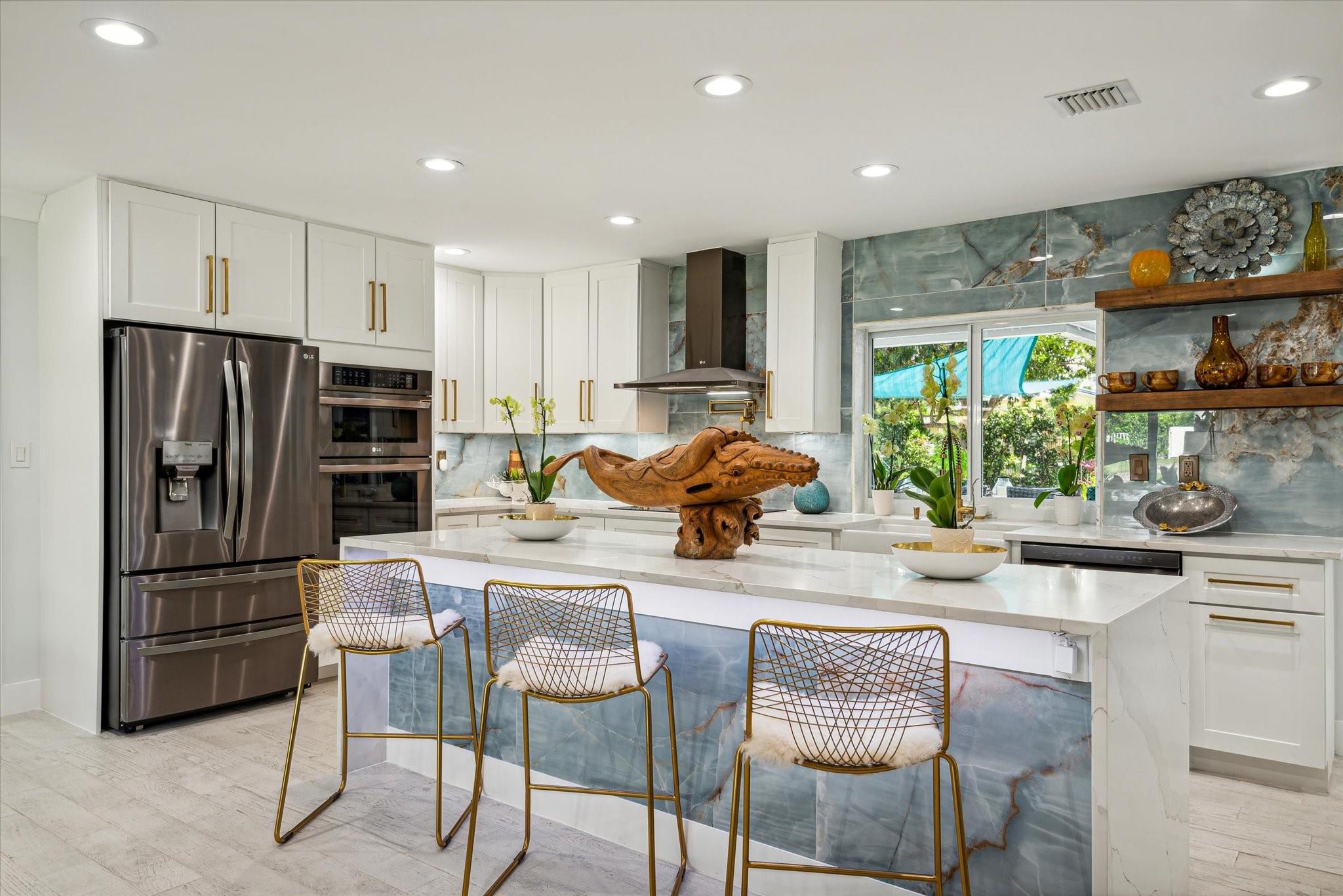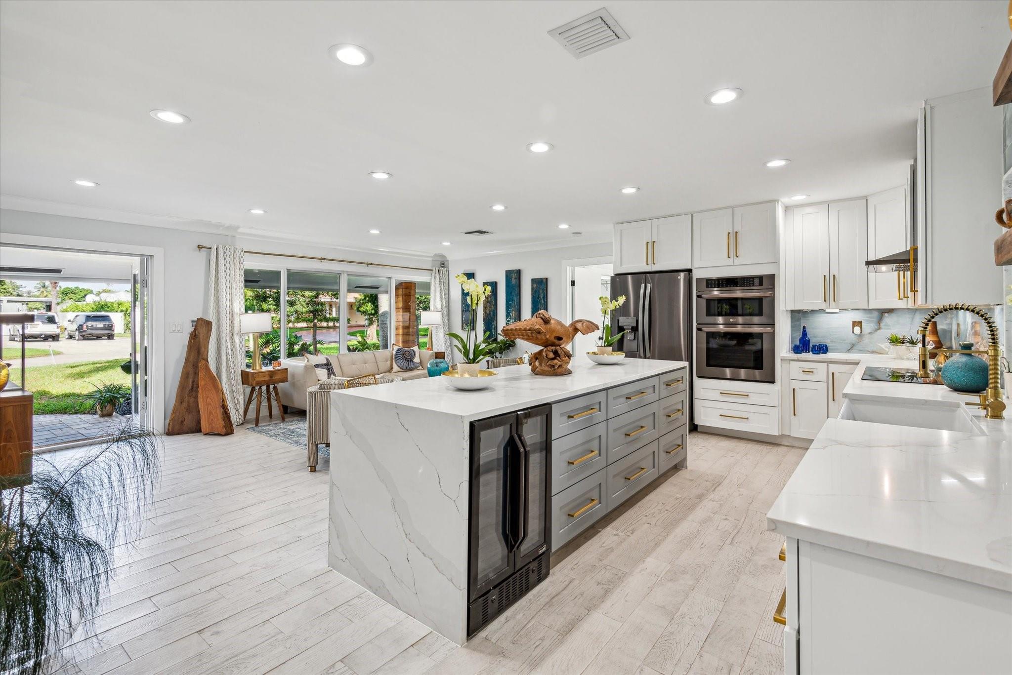 A great reduction on this Unique tropical hideaway with 82 ft of OCEAN ACCESS waterfront & No Fixed Bridges- 4th house from the New River. Remodeled home with a contemporary flow. Newer porcelain tile plank floors through-out, new wood cabinetry & quartz countertops, extra-large chef's island with waterfall, new black SS appliances. modern bathrooms, crown molding, LED lighting & custom fixtures. Hurricane Impact windows & doors through-out, 2 car garage. Travertine paver rear deck & Inviting POOL with sun shelf. Newly landscaped HUGE Lot, fenced for privacy. Situated on a narrow dead-end street. Conveniently located-near All major highways, 3 parks, & just minutes from Downtown/Las Olas, Airport, Port Everglades, Marinas & the Beaches. AE flood zone-flood insurance required.