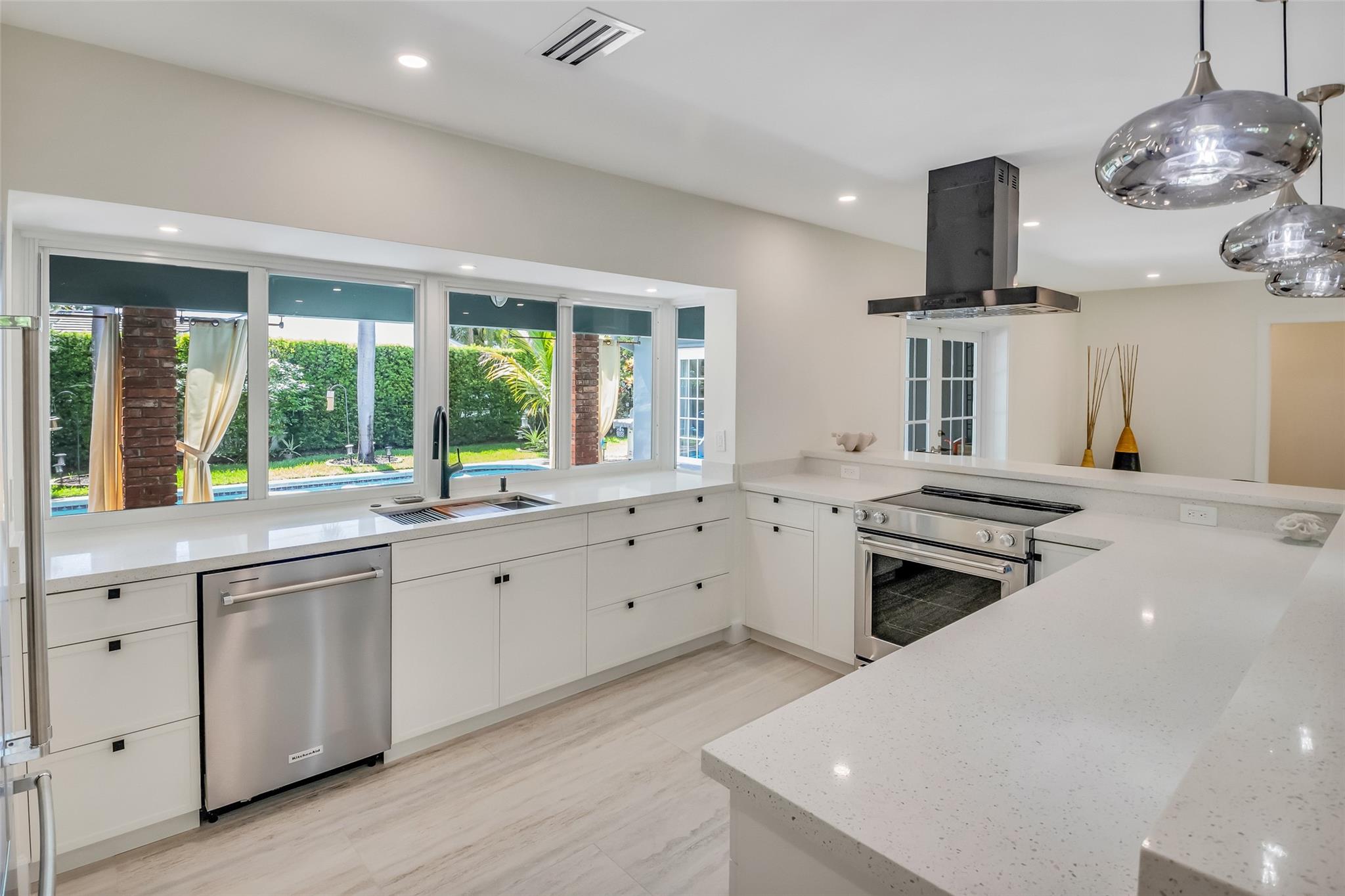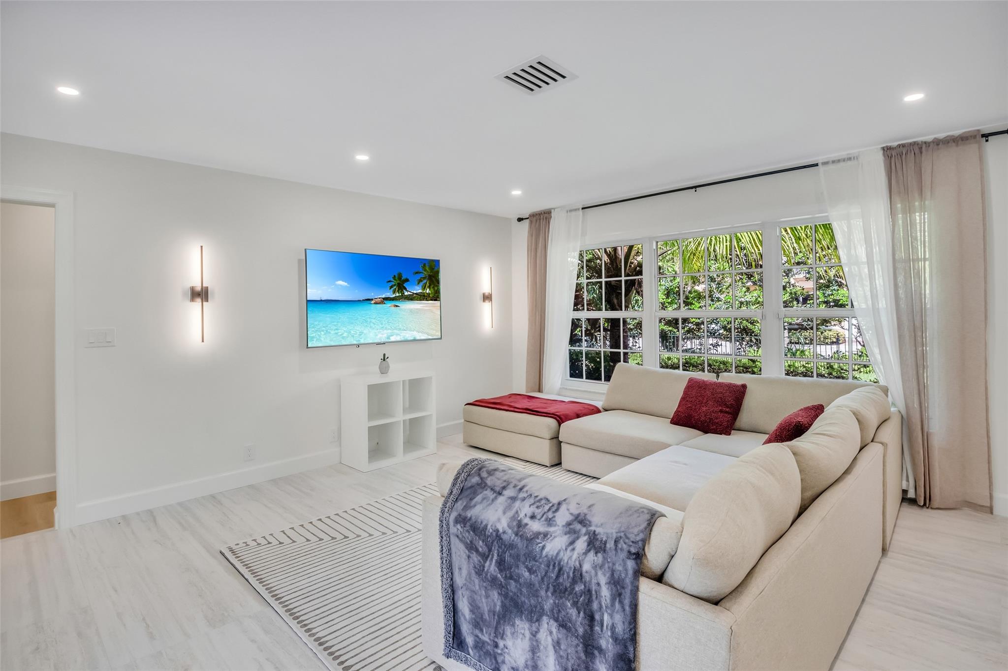 Fully renovated, stunning home in the heart of Fort Lauderdale! Best Priced Home in prestigious Coral Ridge Country Club. Perfect for a family to enjoy the Florida lifestyle near best schools. 4 Bedrooms + Office and 2 Bathrooms. Lush landscaping throughout with pineapples and olive tree. Salt-water Heated Large pool. Fully furnished by West Elm. Custom kitchen top tier appliances and generous cabinetry for plenty of storage. Impact windows and doors. Home is powered by 40 Solar panels that run the entire home & 50 Amp Electric vehicle outlet, full insulation. Electric golf cart is negotiable. All appliances are under warranty. Qualified buyers can get a 4.78% interest rate.