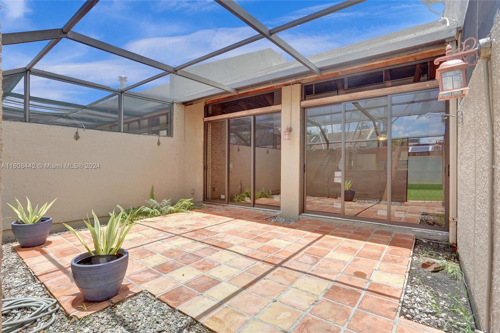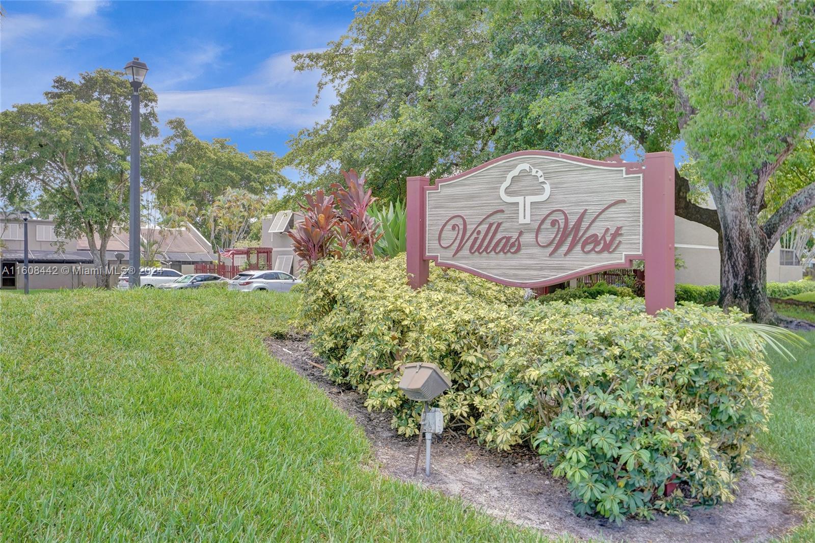 Welcome home to this spacious 3 bedroom 2 bath townhouse located in the desirable community of Villas West. Updated kitchen and baths. Open floor plan with high vaulted ceilings with wood beams. Library shelves from floor to ceiling with a sliding library ladder and a Chicago brick wall. Large master with walk-in closet. Brand new hurricane windows and doors throughout. Sliding glass doors across the entire back of the townhouse that open to your private secluded patio. Low maintenance, amenities which include pool, playground, and tennis courts. Bring your FHA buyers .