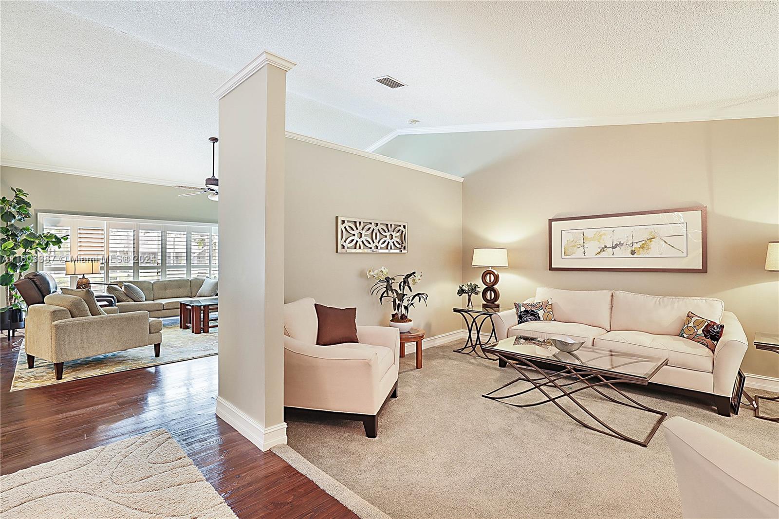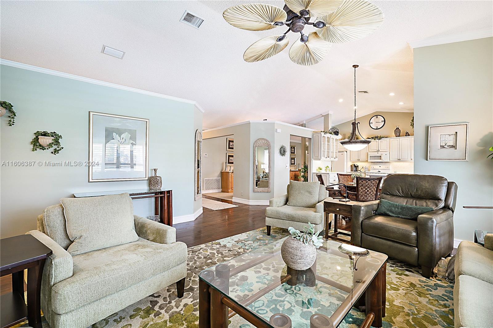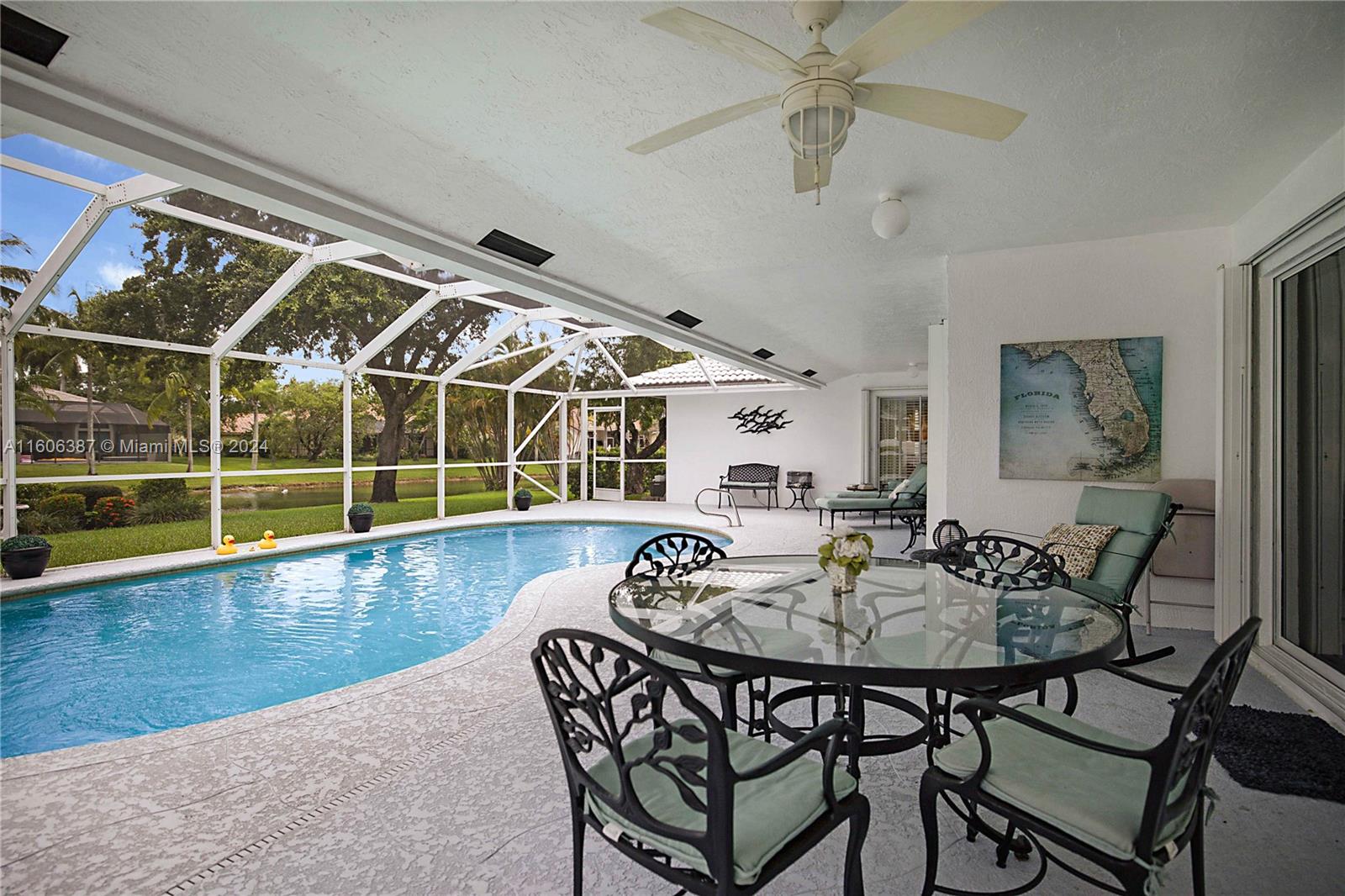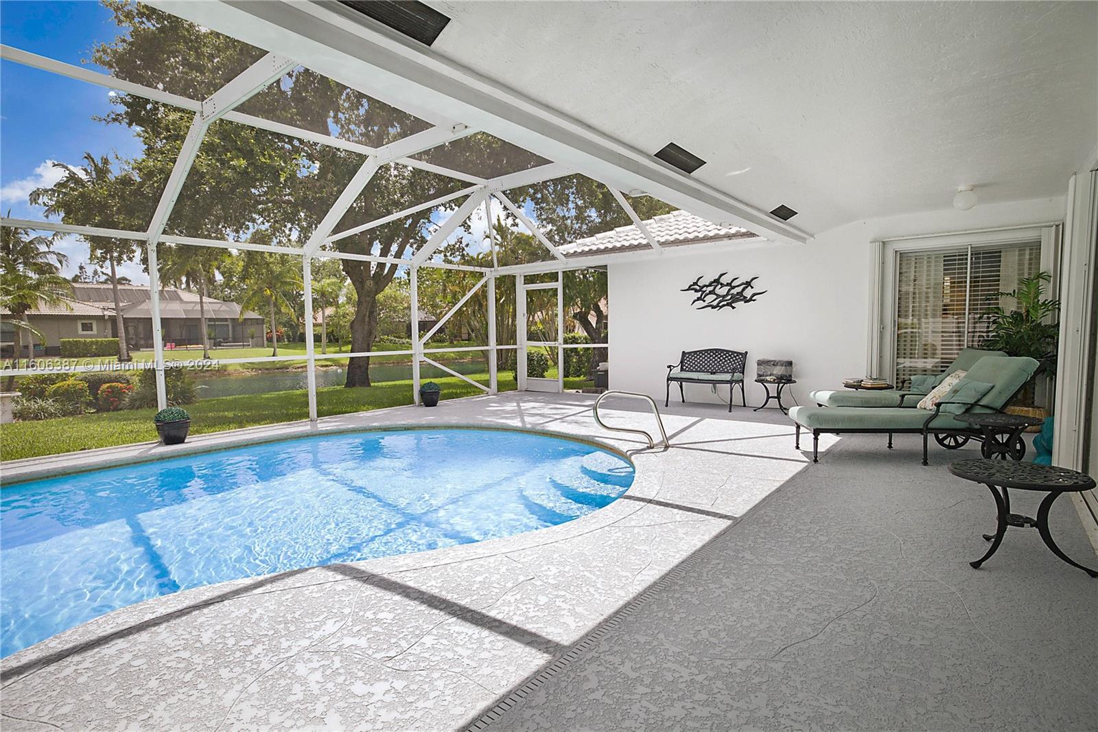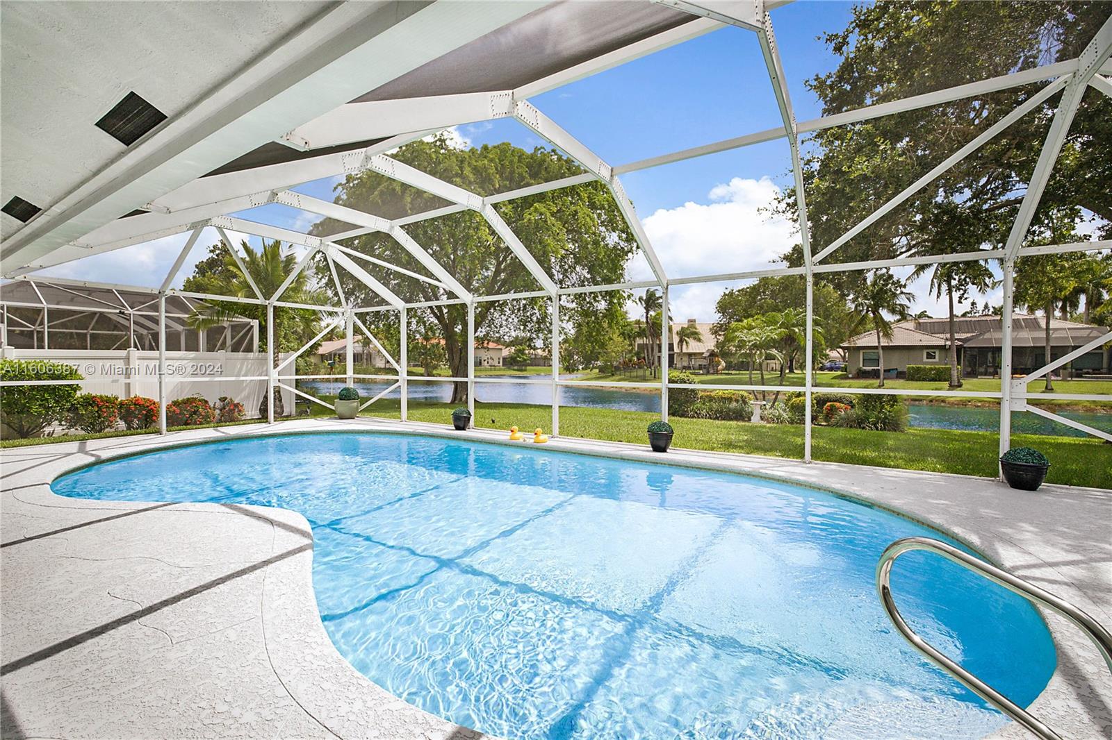 Located in the highly desired community of North Springs. This beautiful upgraded 4/2 pool home is situated on a spacious 10,240 sqft waterfront lot w/ some of the best views, 90 ft of water and 2 car garage. Freshly painted exterior & fresh landscaping line the front entryway & as you enter your double front doors you are immediately greeted by the vaulted ceiling & tranquil views overlooking your pool & captivating wide waterway! Wood vinyl plank floors line the living areas of the home. Upgraded Kitchen w/ snack bar & marble backsplash. Spacious bedrooms. Owner's suite features dual walk in closets & upgraded en-suite bath w/ frameless glass shower & soaking tub. No HOA. Accordion Hurricane Shutters. Generator. Great location, walkable to schools , parks & much more!