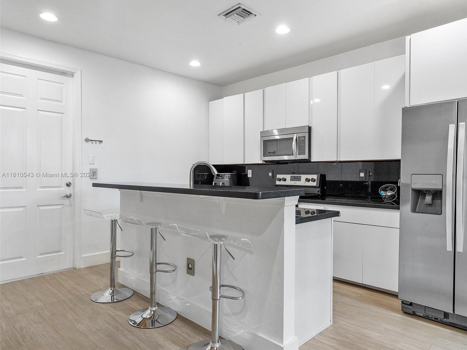 Gorgeous fully renovated townhouse 3 beds / 3 full baths plus loft located in the desirable gated community of Cobblestone. The home boasts a spacious interior layout, high ceilings and modern design. Open kitchen with white cabinets, granite countertop and stainless-steel appliances. One bed and full bath are conveniently located on the 1st floor. Wood like porcelain flooring throughout. Primary Bedroom with 2 walking closets. Primary bathroom w/double sink vanities, shower and tub. Loft easily converted into a 4th bedroom. Spacious courtyard with summer kitchen. Impact windows and doors. 2 car garage. New AC. Gated community w/security 24 hrs. Amenities: pool, gym, playground & clubhouse. A+ Schools. Next to I-75. Close to Whole Foods, Pembroke Gardens, Pembroke Lakes Mall & Restaurants.