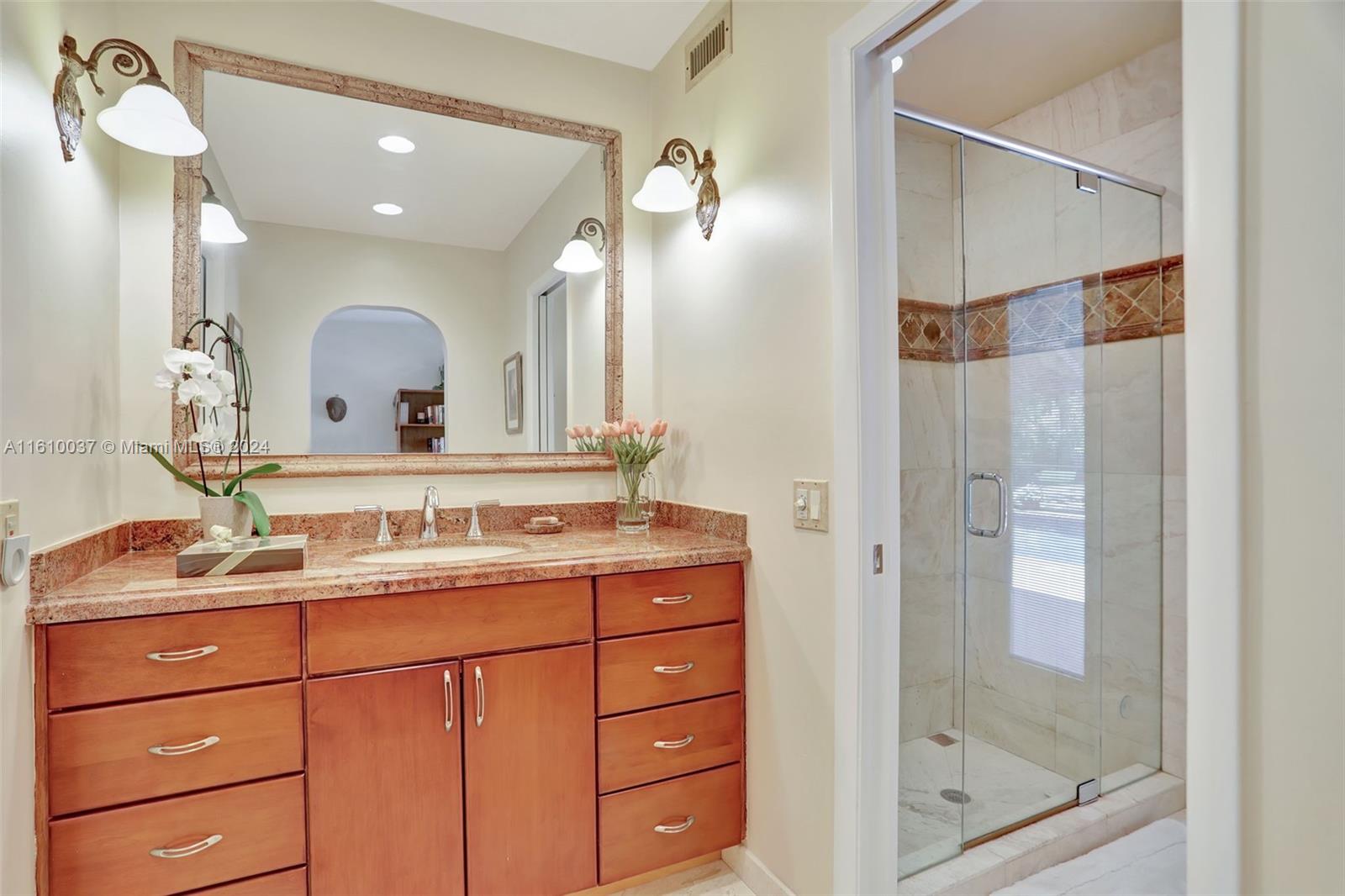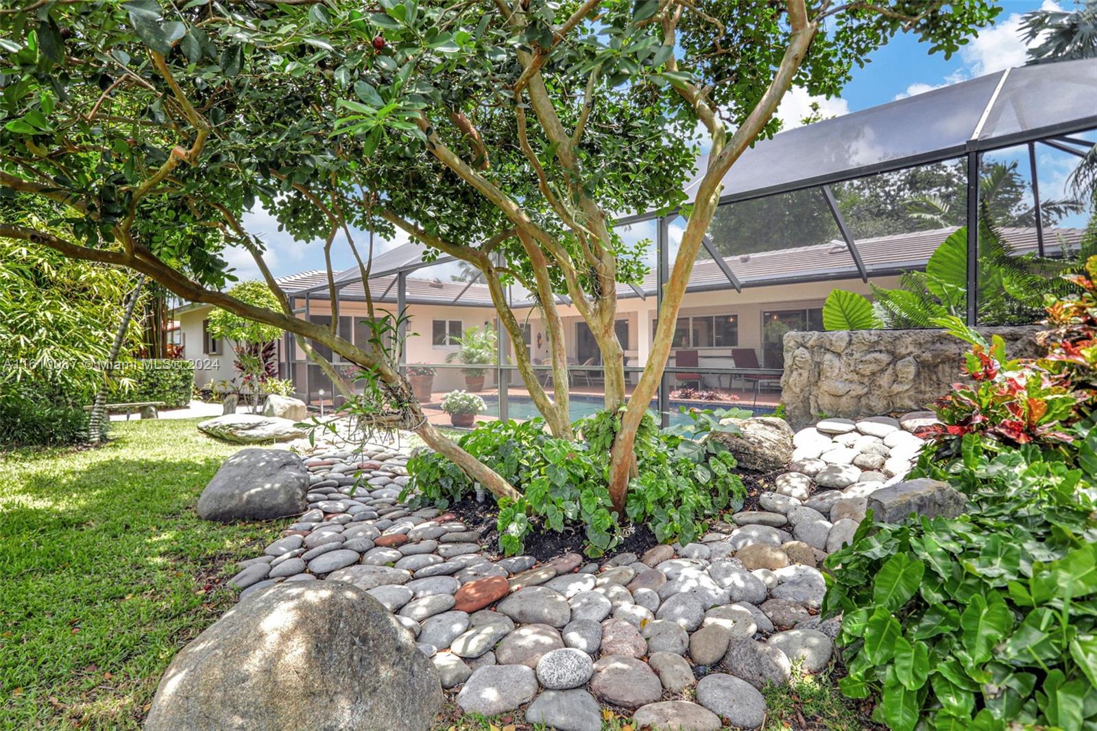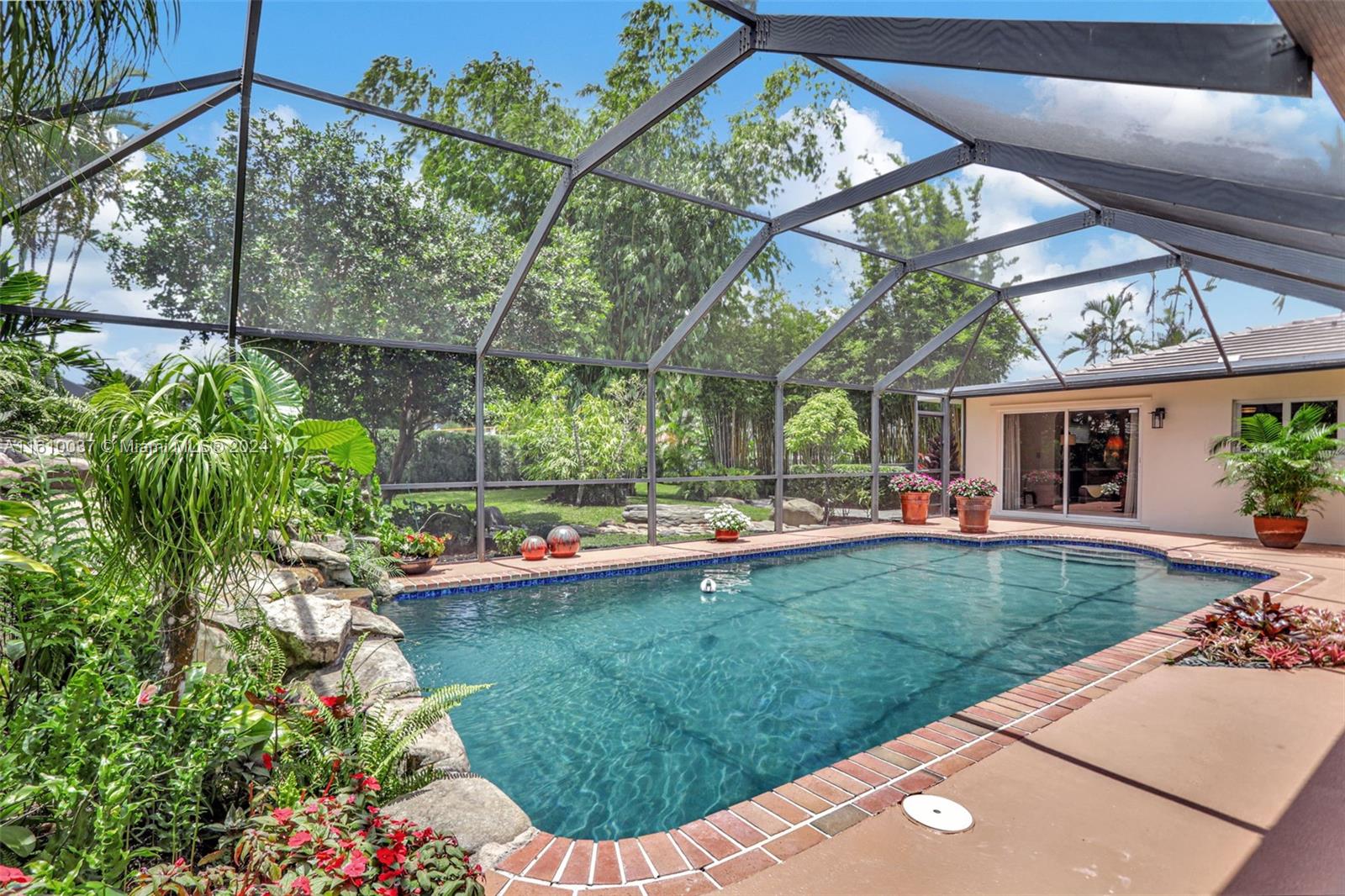 Welcome to your sprawling ranch-style oasis, featuring two master bedrooms with ensuite baths, perfect as in-law quarters. Sporting a NEW ROOF and meticulously maintained, this rare gem sits on a huge 17,156 SF lot inside Maplewood's 37 home Treasure Island community. The breathtaking custom-designed backyard includes a sparkling pool, cascading natural-rock waterfall, lush greenery, vibrant flowers, and a Japanese garden. Culinary enthusiasts will love the 5-burner Thermador gas stove, cook's island, stainless appliances and solid maple cabinetry. Relax in the warm glow of your wood-burning fireplace, surrounded by Crystal Beach granite or in your Far-Infrared sauna. Elegant flooring features large-format Italian porcelain. New AC, water heaters Near Cypress Park for pickleball, sports.
