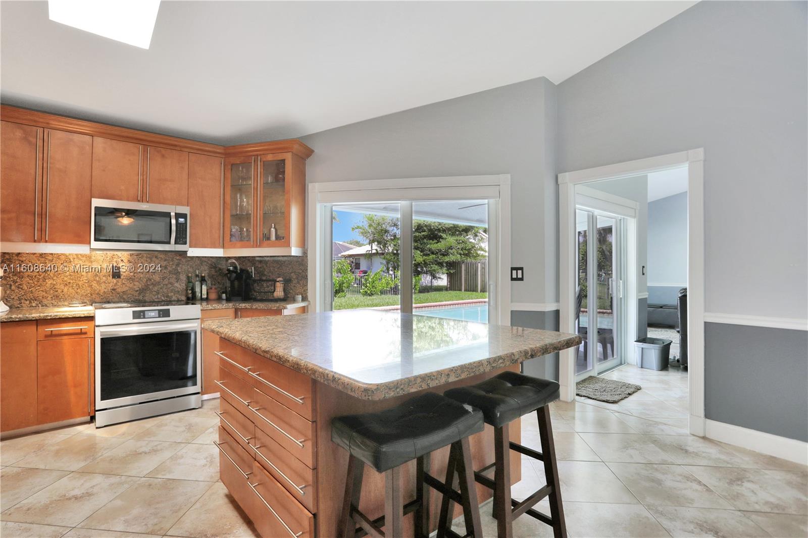 If your heart longs for a gorgeously remodeled move-in ready home, your search ends here. The soaring vaulted ceiling delights in the entryway bringing in natural light in abundance while the Brand New Roof (2023), upgraded electric panel (2023), new water heater (2024) and impact windows & doors (2019) provide energy efficiency. Designer touches throughout create an enchanting ambiance, starting in the generously sized upgraded kitchen featuring a new induction range (2024), kitchen island & skylight to the tastefully remodeled baths. As you step outside, to your fully fenced sanctuary the true magic of this property unfolds and provides the serenity and space you've always envisioned while the pool w/new salt generator (2023) invites you to unwind.