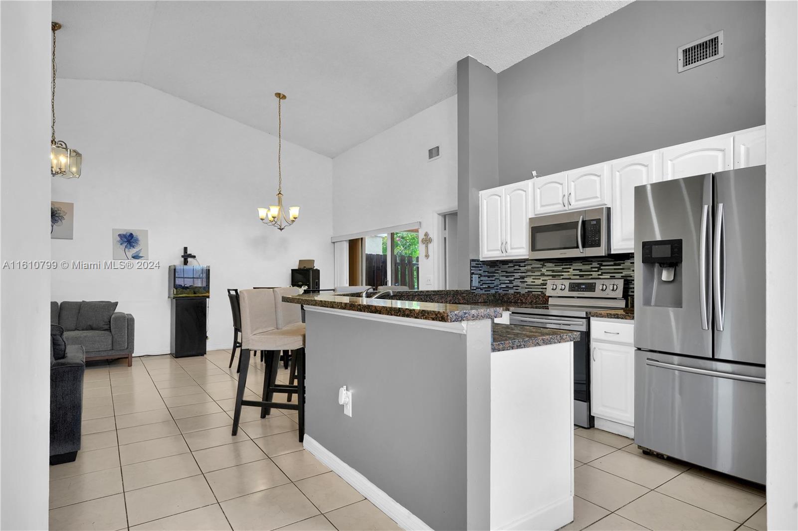 Check out this fantastic opportunity to own a spacious 4-bedroom, 2-bathroom single-family home in the sought-after Hampton Lakes neighborhood! This home features a brand new roof (Nov 2023), recently remodeled guest bathroom (May 2024), and an updated kitchen boasting white cabinets, granite countertops, and stainless steel appliances. You'll love the designer glass impact front door, tile floors throughout, and a practical split-bedroom floor plan. The large master suite includes a walk-in closet and an updated master bathroom. Additional highlights include a new water heater, accordion shutters, a roofed screened-in patio, and a fenced yard. Hampton Lakes offers a prime location near shopping centers, restaurants, Markham Park, and major highways.