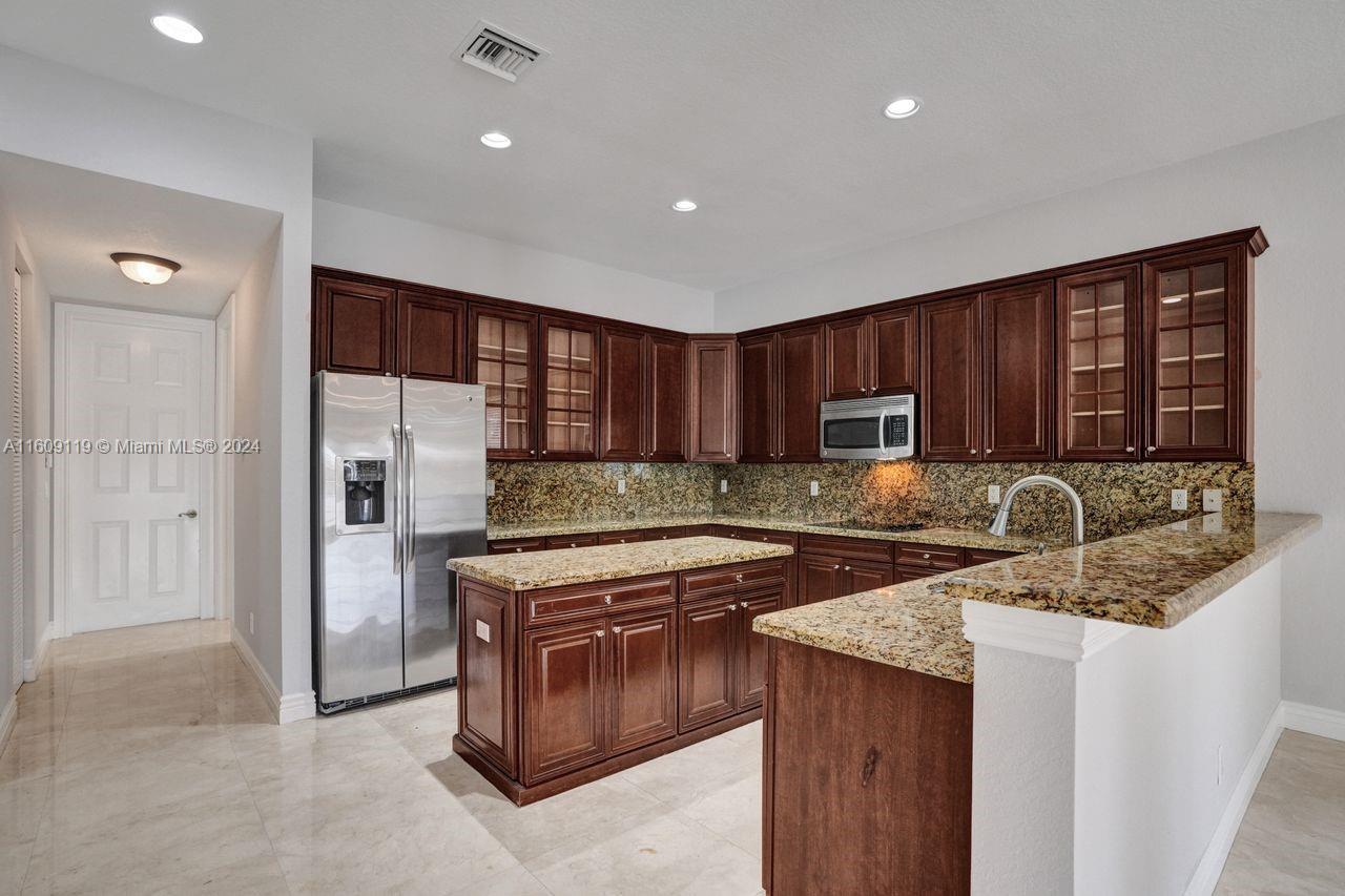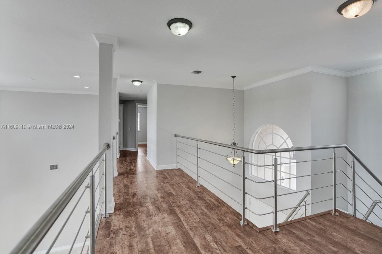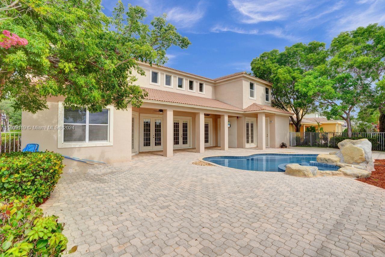 Stunning 4 car garage Montego model in Isles at Weston with over 5200 sf living area. Largest model in community with 6 bedrooms plus office and large upstairs rec room and 5.5 bathrooms. Beautiful marble flooring in main areas and wood flooring upstairs and all bedrooms. Large kitchen with wood cabinnets, granite, stainless steel appliances and walk in pantry.. Gorgeous custom stainless steel railings and french doors. Large master suite with sitting area and huge walk in closets downstairs and second master upstairs. Enjoy the outdoors with big covered patio and tranquil pool and lake views. Great community with remodeled club house, pool and gym. All interior freshly painted and exterior in process to be painted. Won't last!
