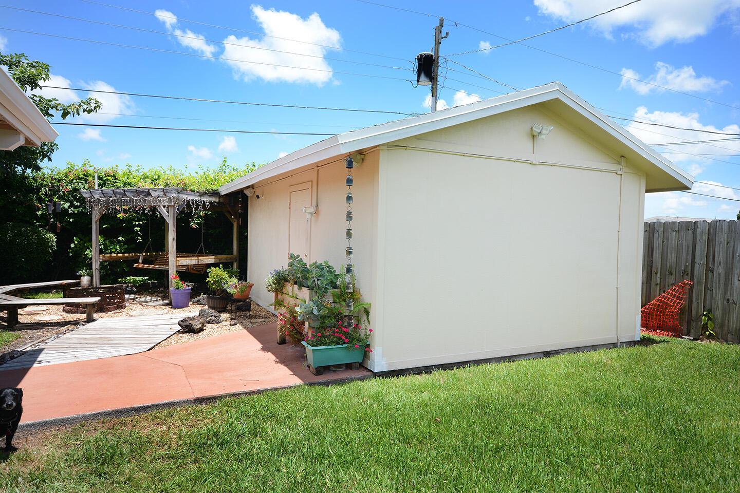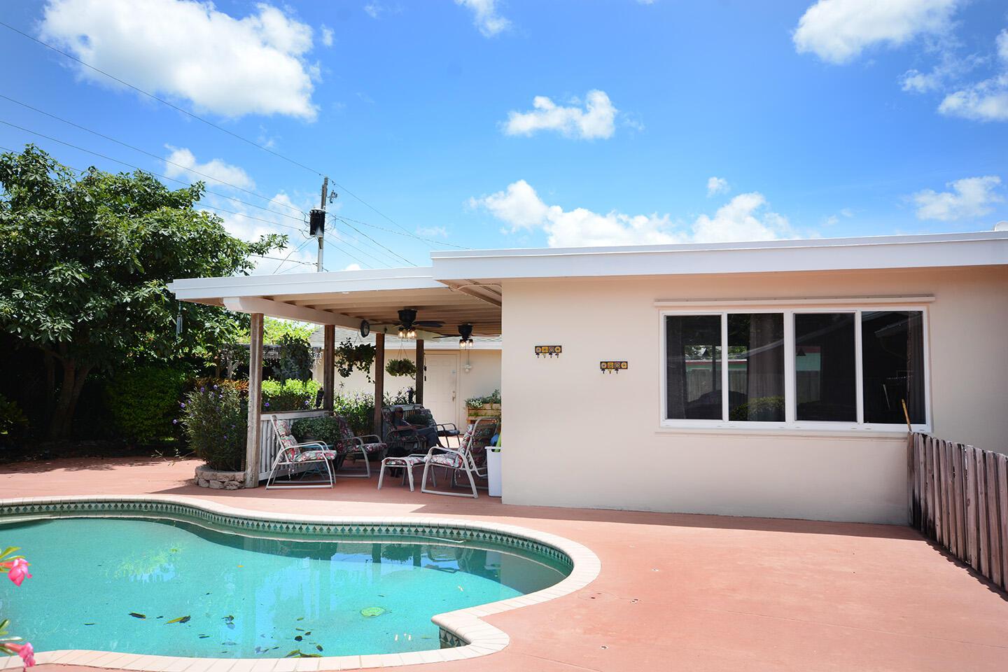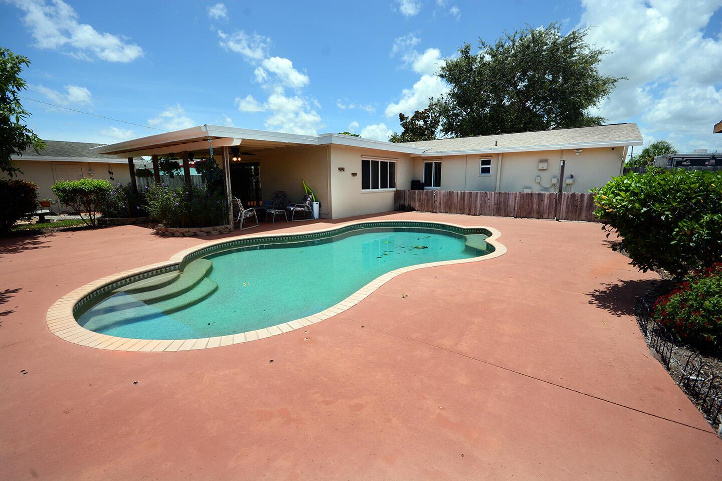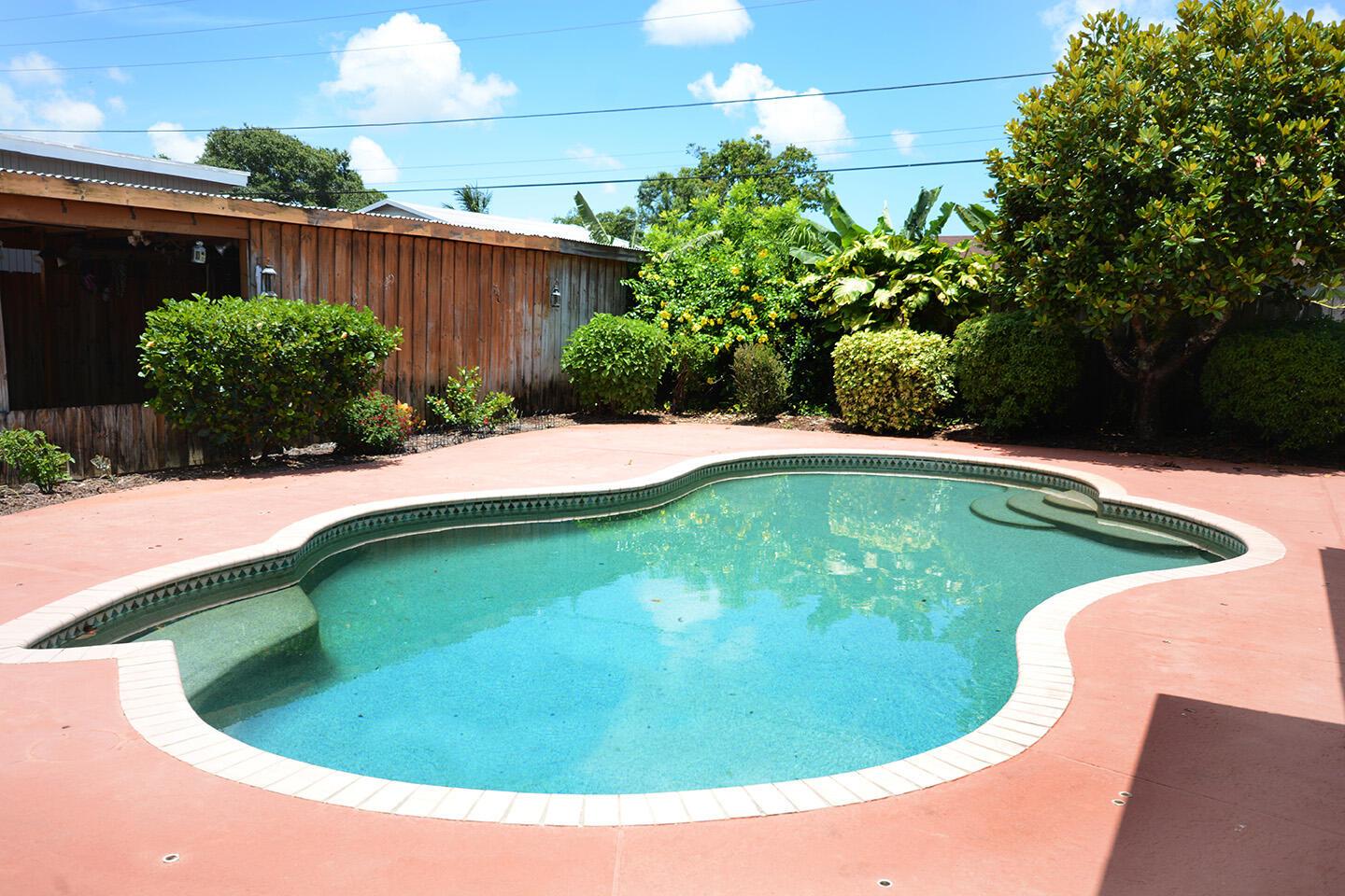 Spacious 4 Bed, 2.5 Bath home with a huge yard, and a beautiful in-ground pool with salt water conversion system. New Roof in 2020, New A/C & Water Heater in 2022. Workshed in backyard. Carport big enough for 2 cars. Concrete driveway long enough to hold 8 cars+. No HOA, perfect for boat and RV owners. Big dog friendly. Ext Lg family room, long kitchen with loads of cabinet space. Generator hookup alrady wired on side of home. Main Electrical panel replaced in 2019. Inground sprinkler system pulls from well. City water inside home. Fiber Optic Cable. Smoke detectors, fire alarm and security ADT alarm system. Windows replaced 10 years ago. Partially furnished. Palm Beach Central High School. Centrally located and close to schools, shopping and dining. Well-maintained by owners.