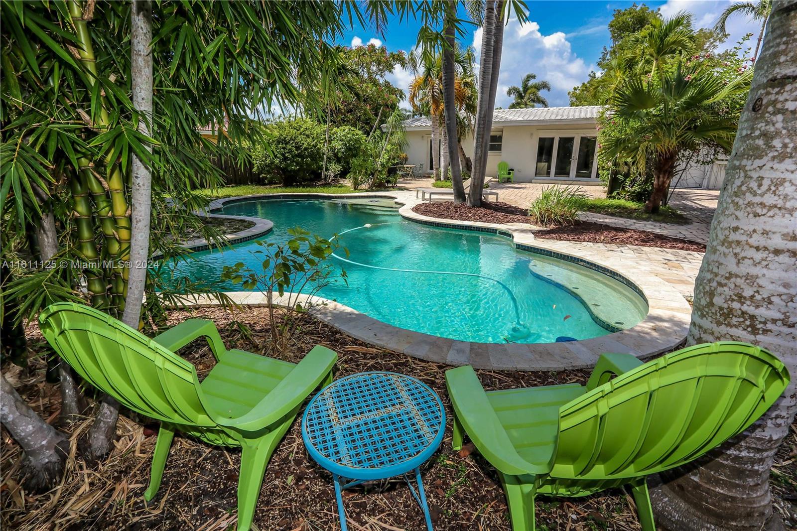 This charming 2/2.5 home offers the perfect blend of comfort, style, and convenience. Enjoy the open-concept living, family, and dining rooms, complete with large windows that flood the space with natural light. The updated kitchen features quartz countertops, stainless steel appliances, and ample cabinet space. Luxurious Primary Suite: Relax in your private suite with a spacious closet and an updated en-suite bathroom. Outdoor Oasis: Step outside to your private backyard retreat, complete with a beautiful pool, spacious pavered patio, lush landscaping, and a fenced yard perfect for entertaining. Enjoy the convenience of a one-car garage with laundry. Located in a sought-after community just 3/4 of a mile to intracoastal, 1 mile to beach, Jefferson Park, shopping, dining, and more.