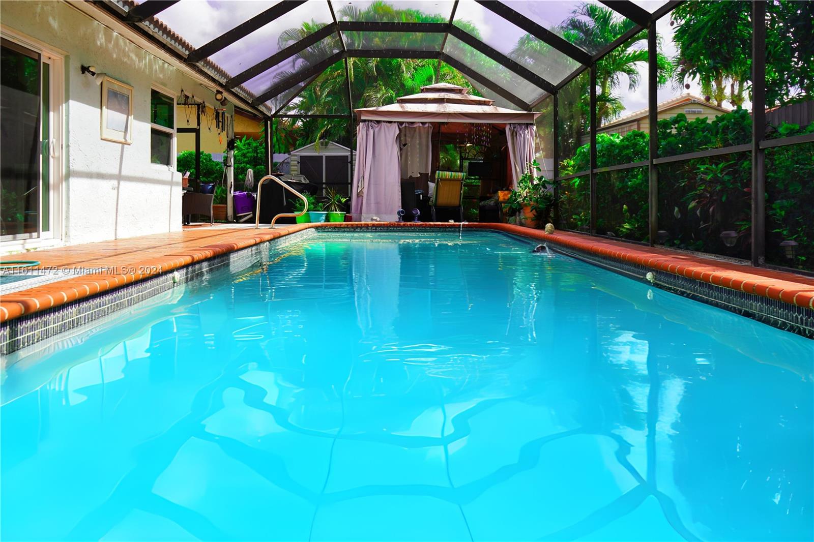 IMMACULATE AND WELL-KEPT HOME CAN BE YOURS. NESTLED ON 8500 SQ FT LOT WITH BEAUTIFUL LANDSCAPING, FENCED BACKYARD. MOVE IN READY. ELEGANT AND LUXURIOUS 3 BEDROOM, 2 BATH, CORNER LOT WITH TWO CAR GARAGE, FEATURING A SWIMMING POOL AND GAZEBO, IMPACT WINDOWS AND DOORS. PROPERTY IS IN THE WELL-ESTABLISHED COMMUNITY OF COUNTRY LAKE MANOR. BEAUTIFUL KITCHEN WITH GRANITE COUNTERTOPS AND STAINLESS-STEEL APPLIANCES, TILE FLOORS WITH AND SPACIOUS MASTER BEDROOM SUITE COMMUNITY WITH TOP RATED SCHOOLS, NEAR MAJOR HIGHWAYS, TURNPIKE AND PALMETTO EXPRESSWAY. LOW HOA.