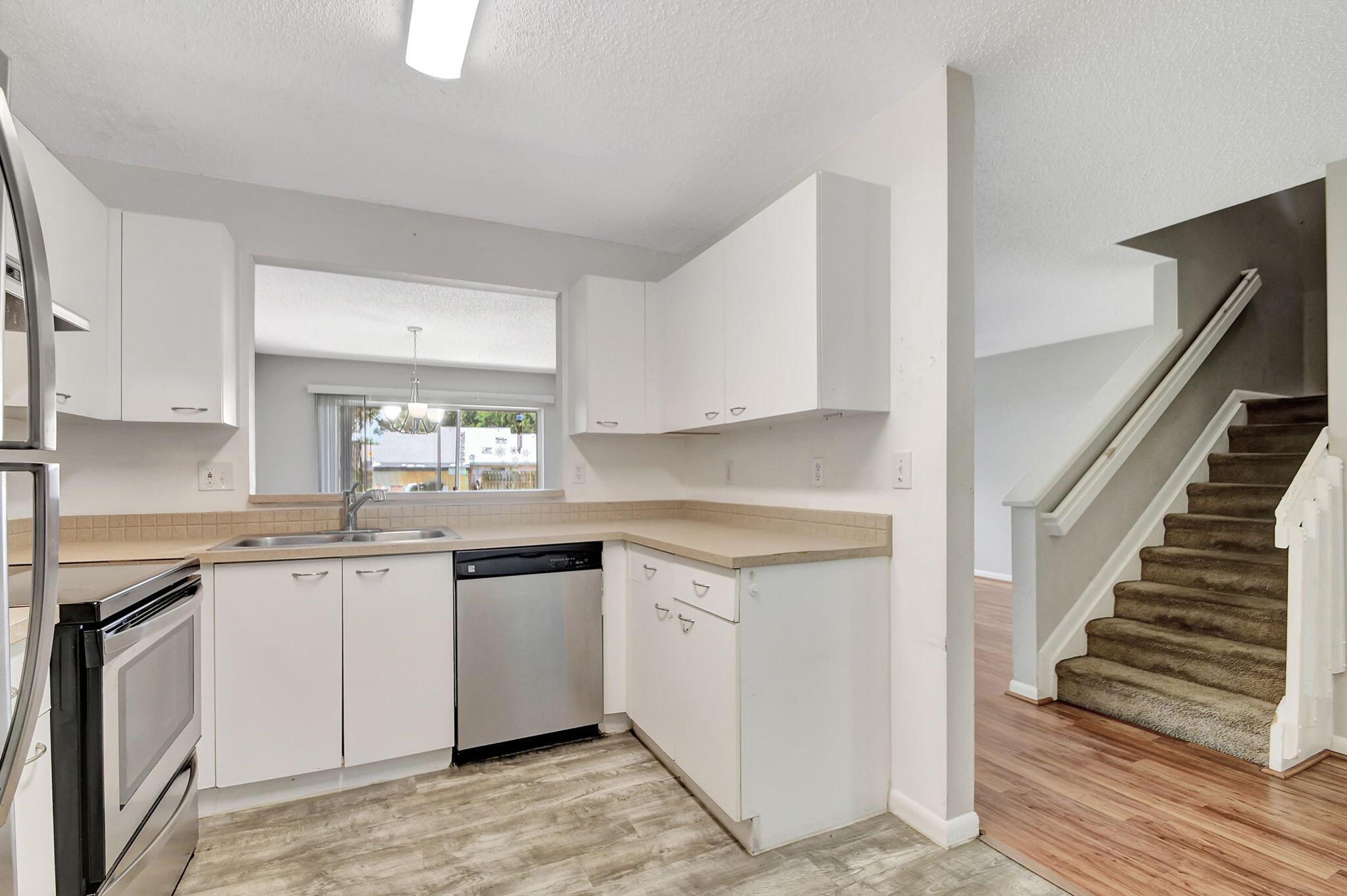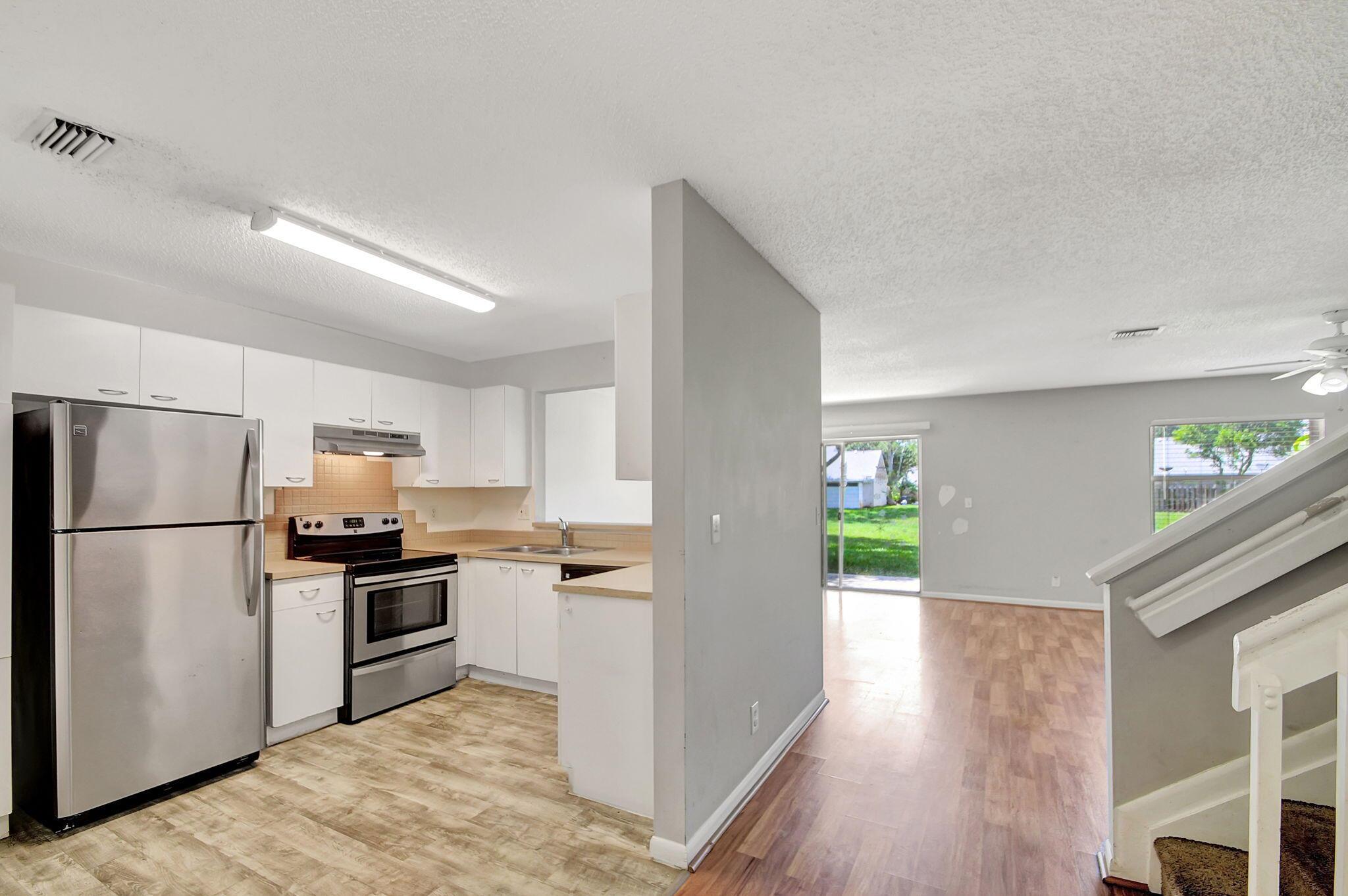 Discover this beautiful two-story townhome in central West Palm Beach, perfectly located near shopping, dining, entertainment, highways, and excellent schools. With a charming exterior, this home features three bedrooms and three full bathrooms, including a convenient first-floor bedroom and bathroom. The primary suite offers a walk-in closet. Upstairs, a versatile open area can serve as a playroom, office, or cozy den. The kitchen boasts sleek stainless steel appliances, ideal for cooking enthusiasts. Complete with a one-car attached garage Enjoy the added bonus of a porch and patio. Only 5.5 miles from the beach.