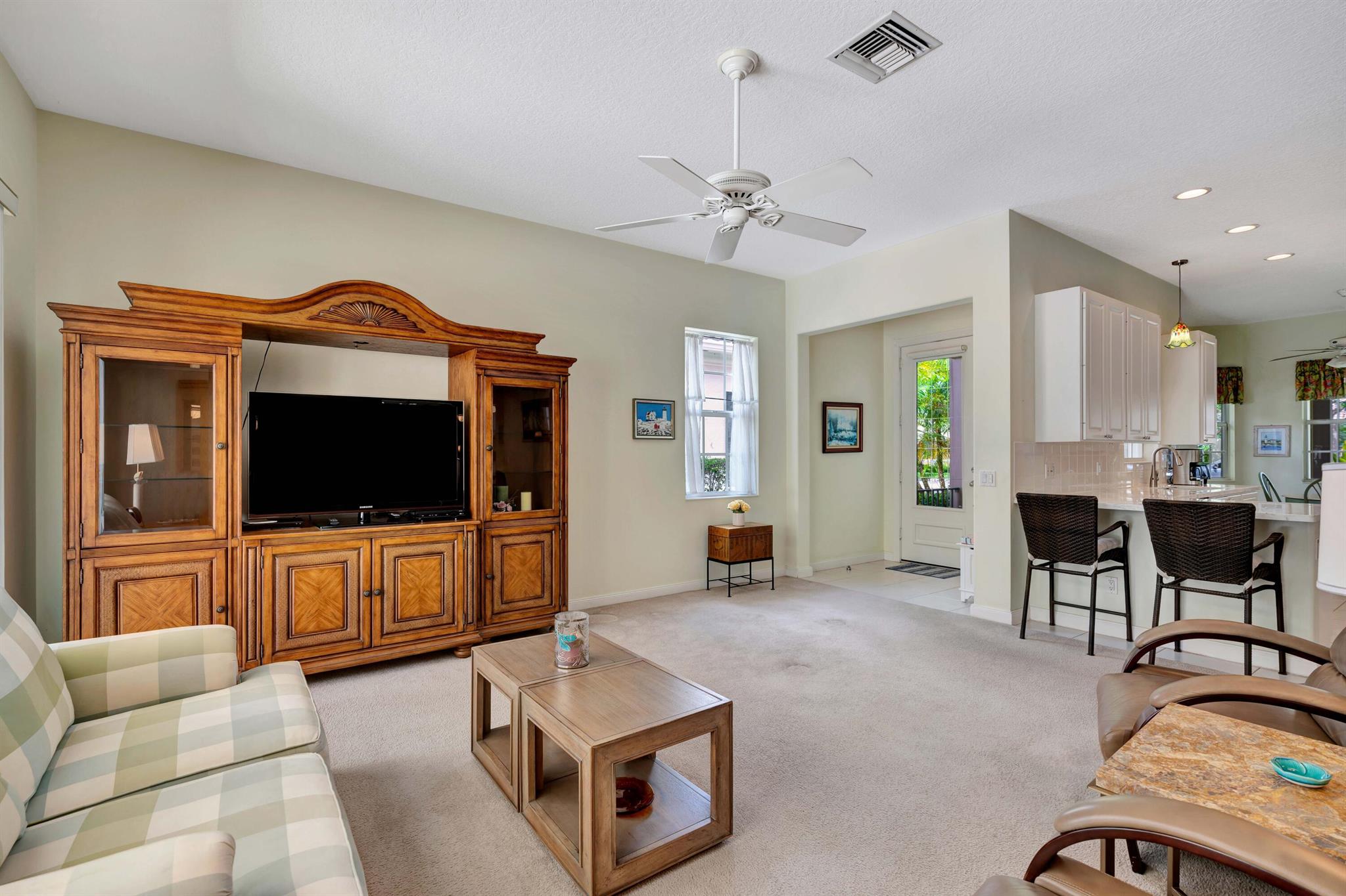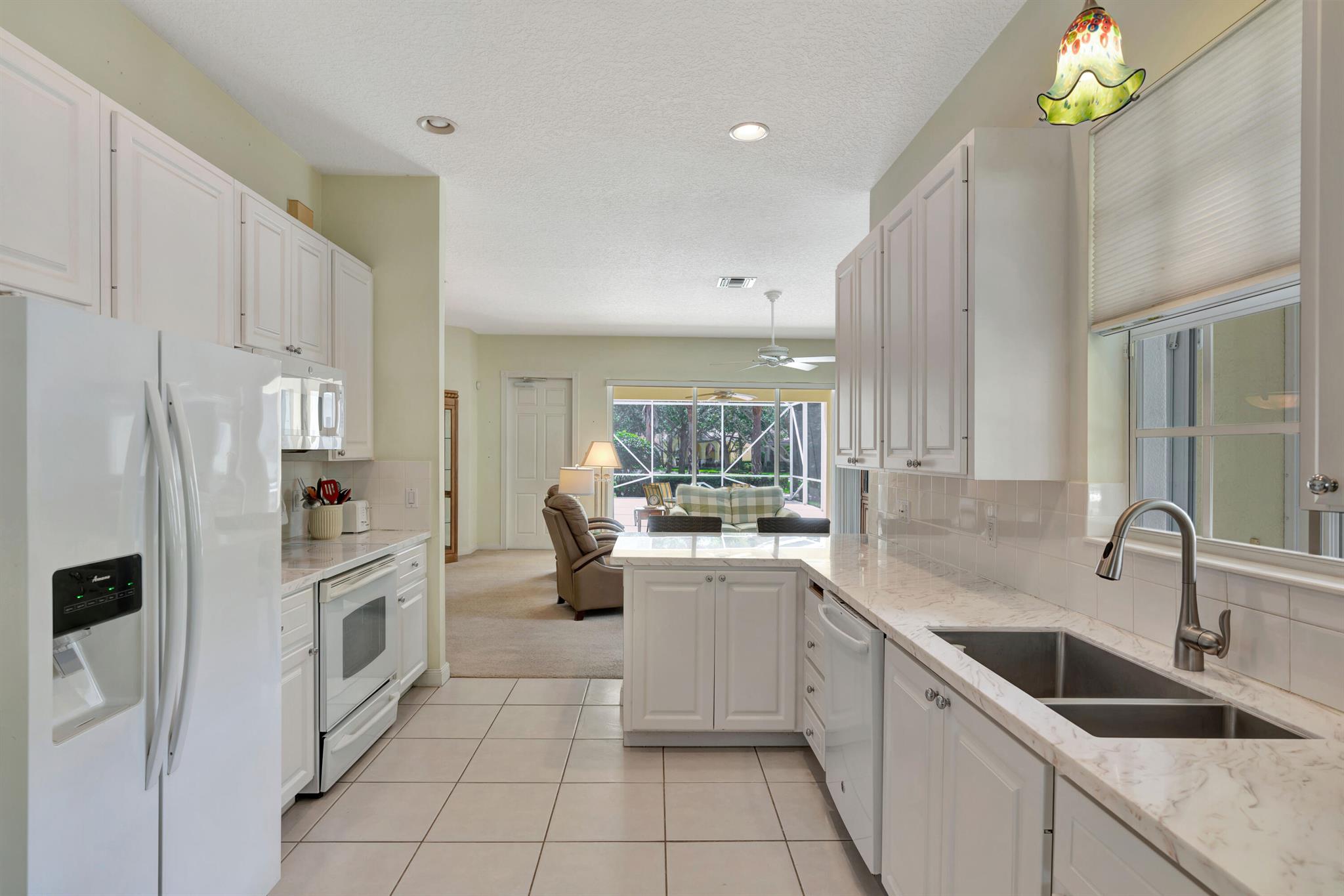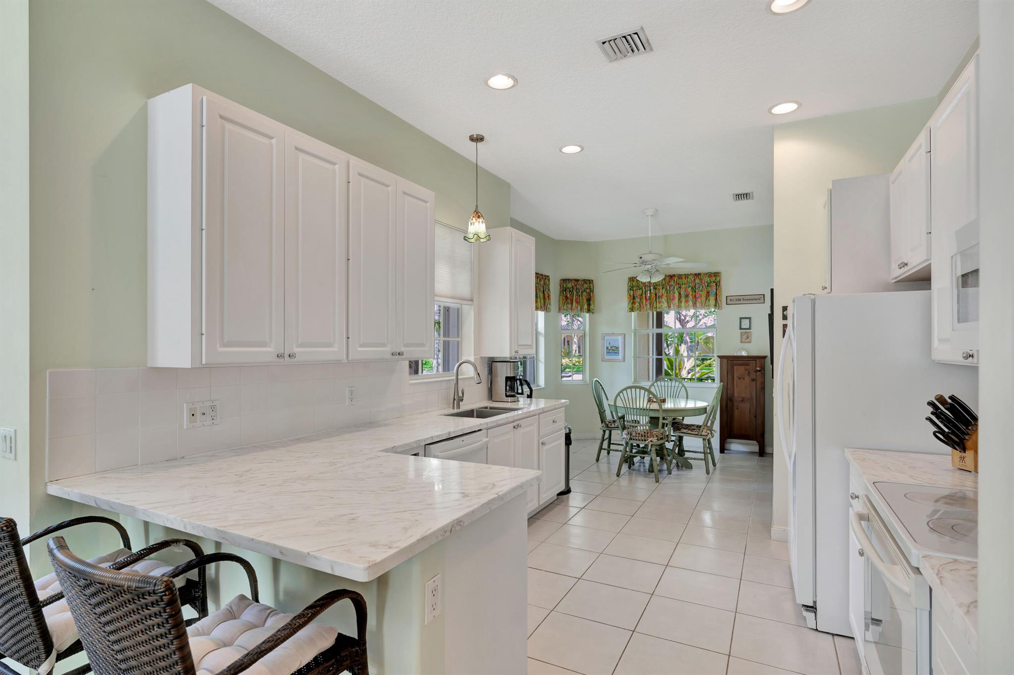 NEW 2025 Roof AND Major Price Reduction!! Located in desirable Tuscany at Abacoa, this 3BR/2BA pool home welcomes you with an open floor plan blending the eat-in kitchen (boasting new quartz countertops) and the living and dining spaces. Enjoy meeting neighbors as you sit on the wrap-around front porch or, for more privacy, the covered patio with a screened pool is the perfect backdrop to relax and entertain.The primary suite also opens to the patio/pool and includes a walk-in closet. Primary bathroom has double sinks, a large tub and separate shower. HOA fee includes lawn maintenance, basic cable, internet, a community pool, fitness center and 2 playgrounds. This lovely home is within a block of the community center & only minutes to Abacoa's Town Center,