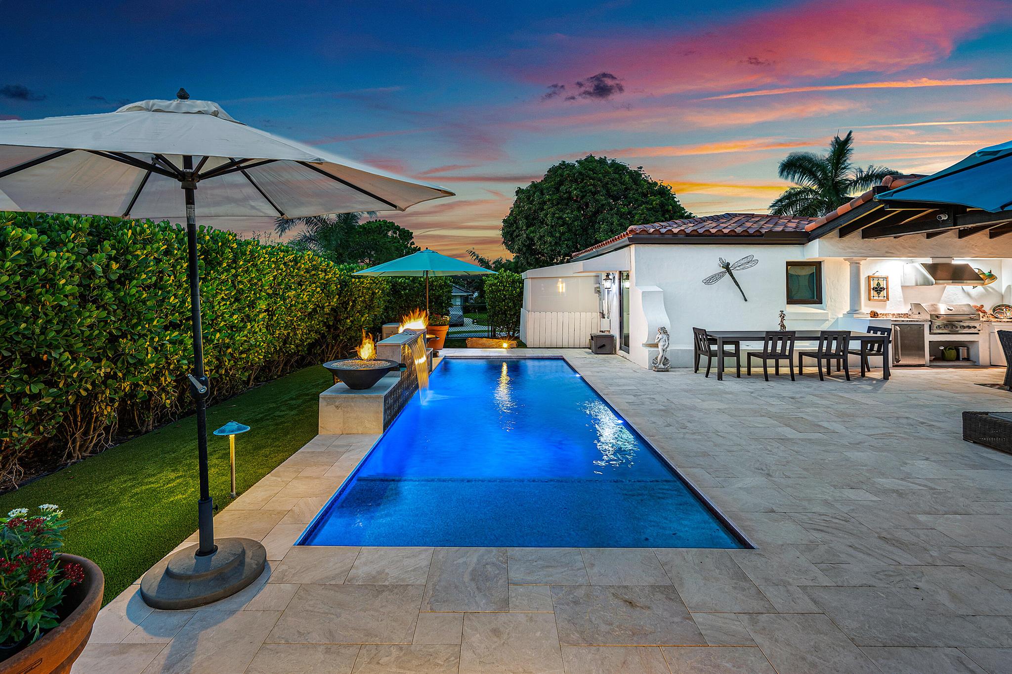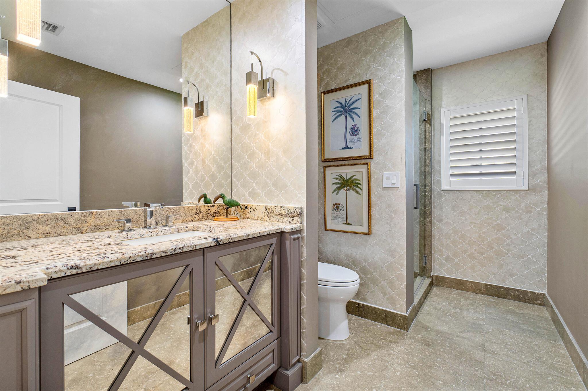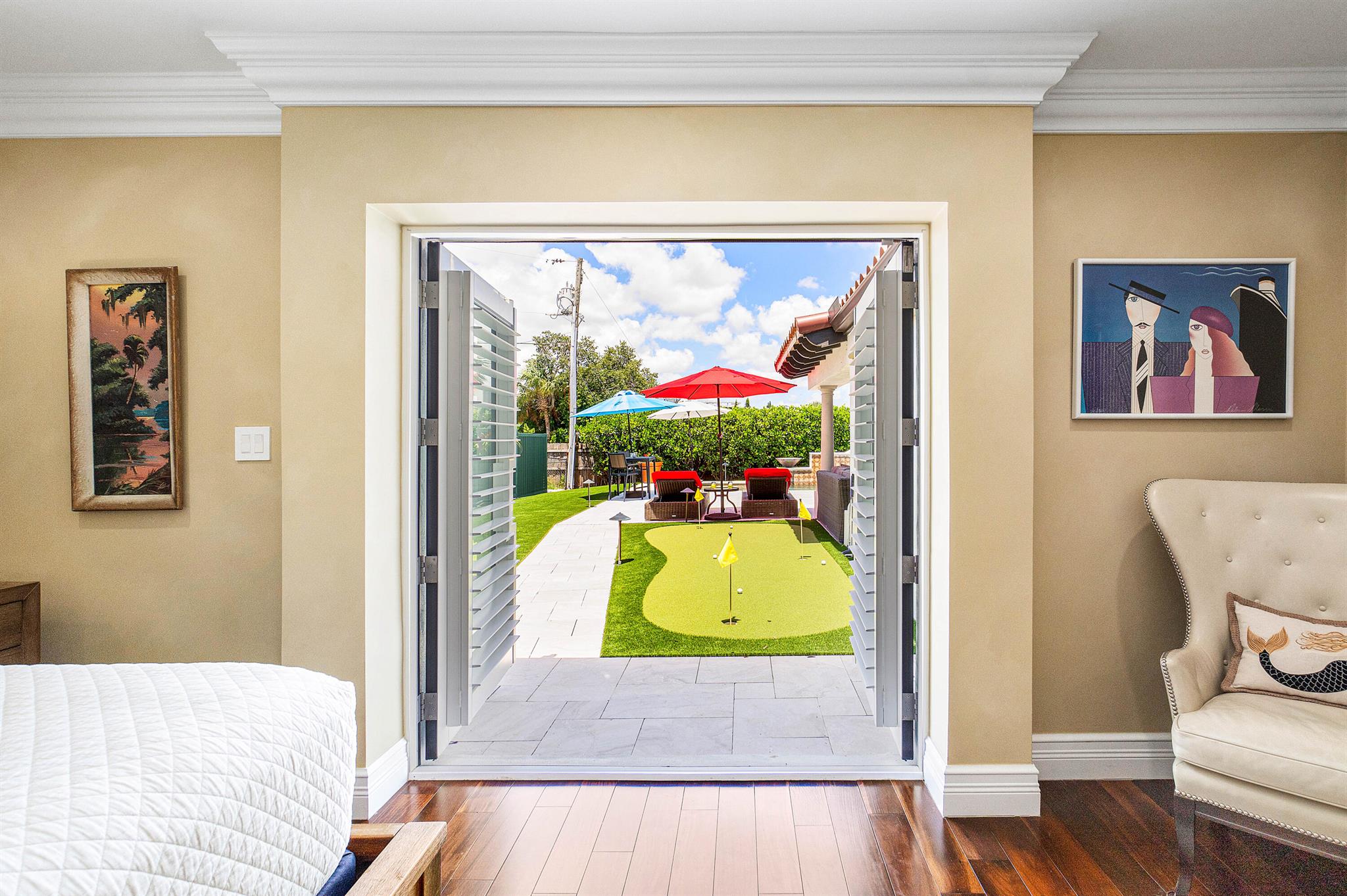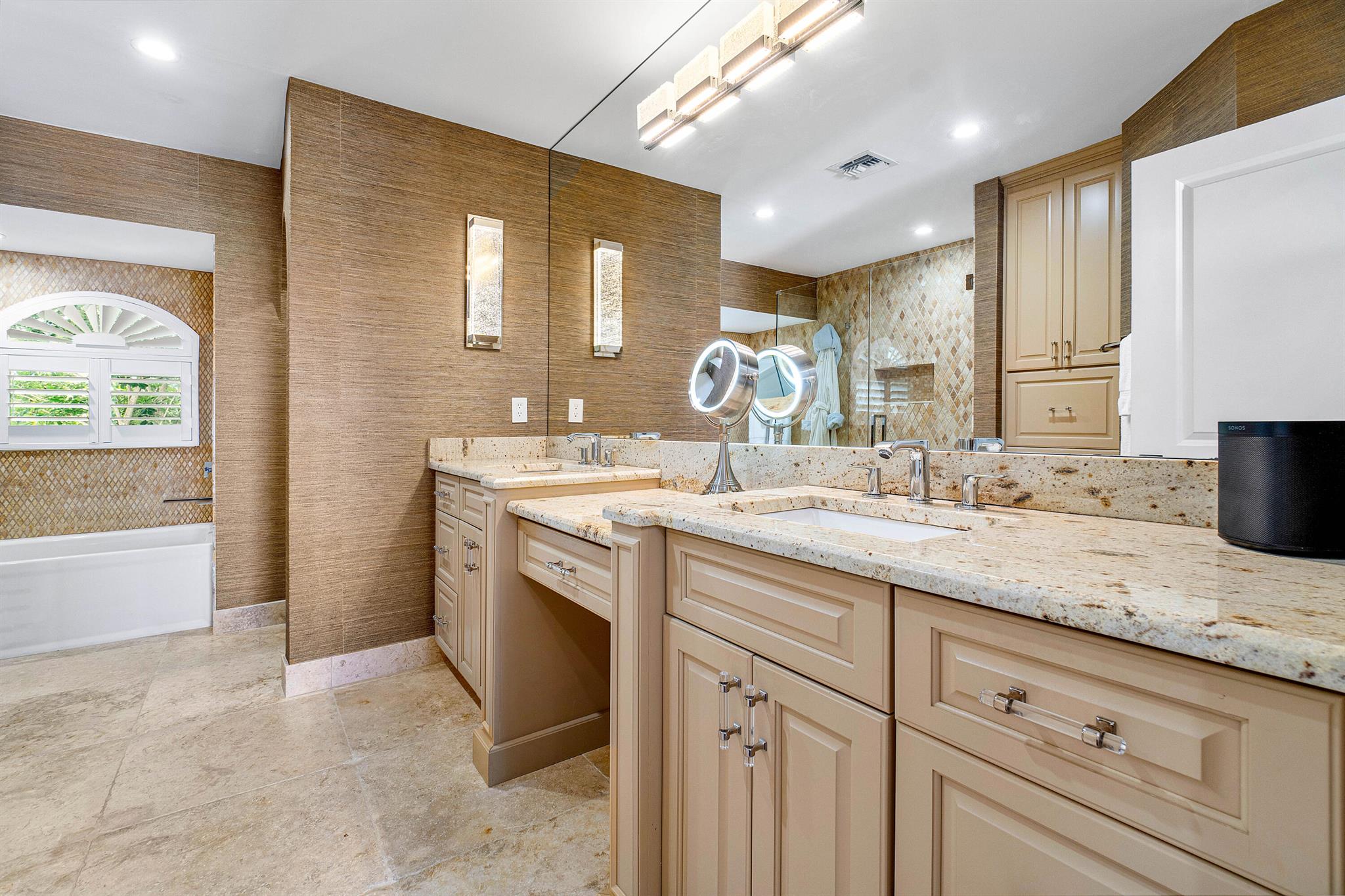 Step into a completely reimagined (from the studs out and up) slice of paradise nestled on a prestigious corner lot, in the Conference Ridge section of E Boca Raton, where impeccable landscaping frames a stunning 3 bedroom & bath retreat. Each bedroom is a sanctuary unto itself, boasting closets adorned with built-in cabinetry, ceiling fans for comfort, and opulent designer bathrooms. Throughout the home, Plantation Shutters offer both privacy and timeless elegance.The primary bedroom stands as a testament to luxury, featuring both spacious step-in shower & a sumptuous tub, alongside a fully outfitted closet complete w/bespoke cabinetry. French doors beckon you to the backyard oasis, where a sparkling gas heated salt water pool awaits beneath the sun-kissed skies