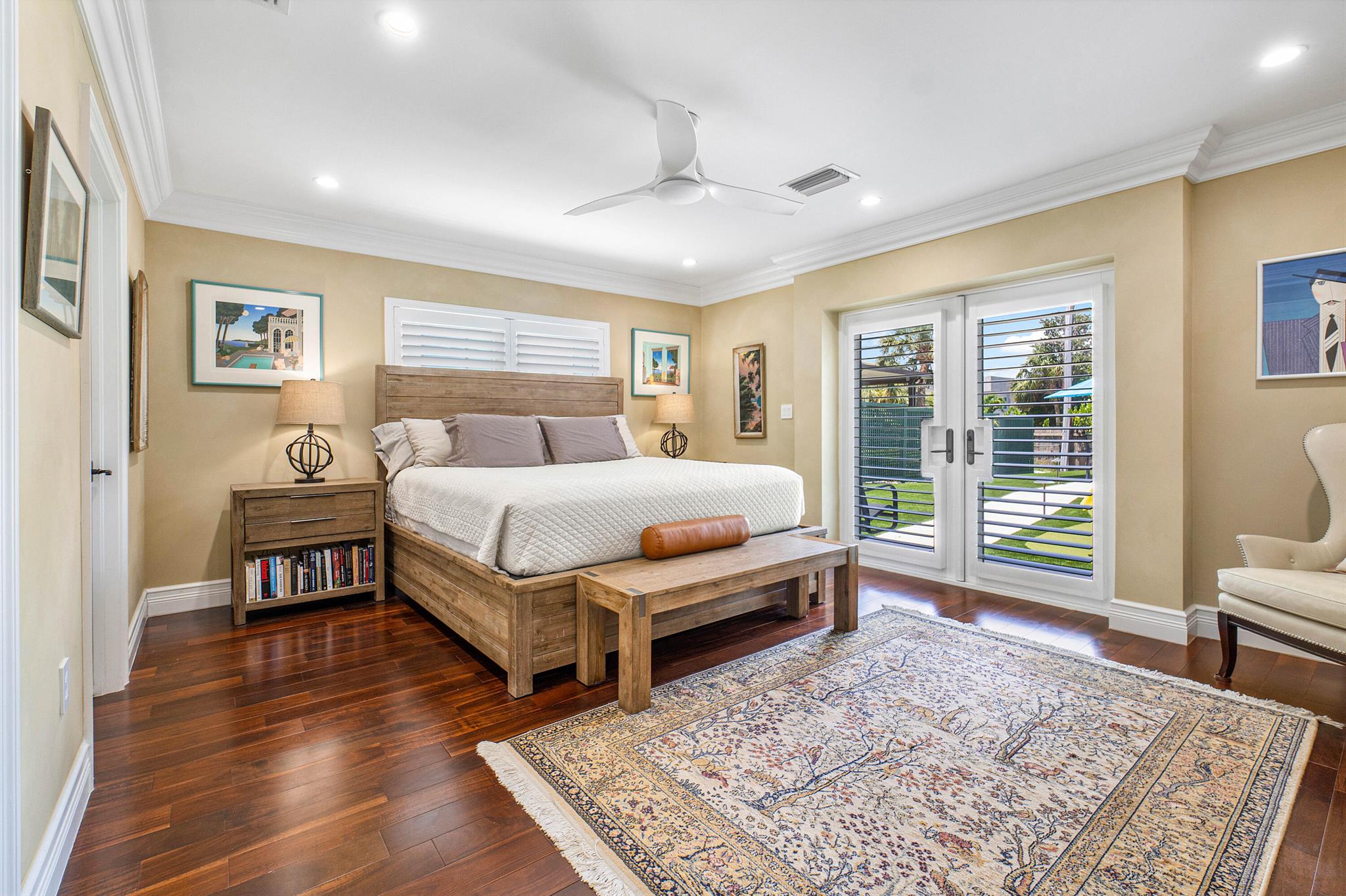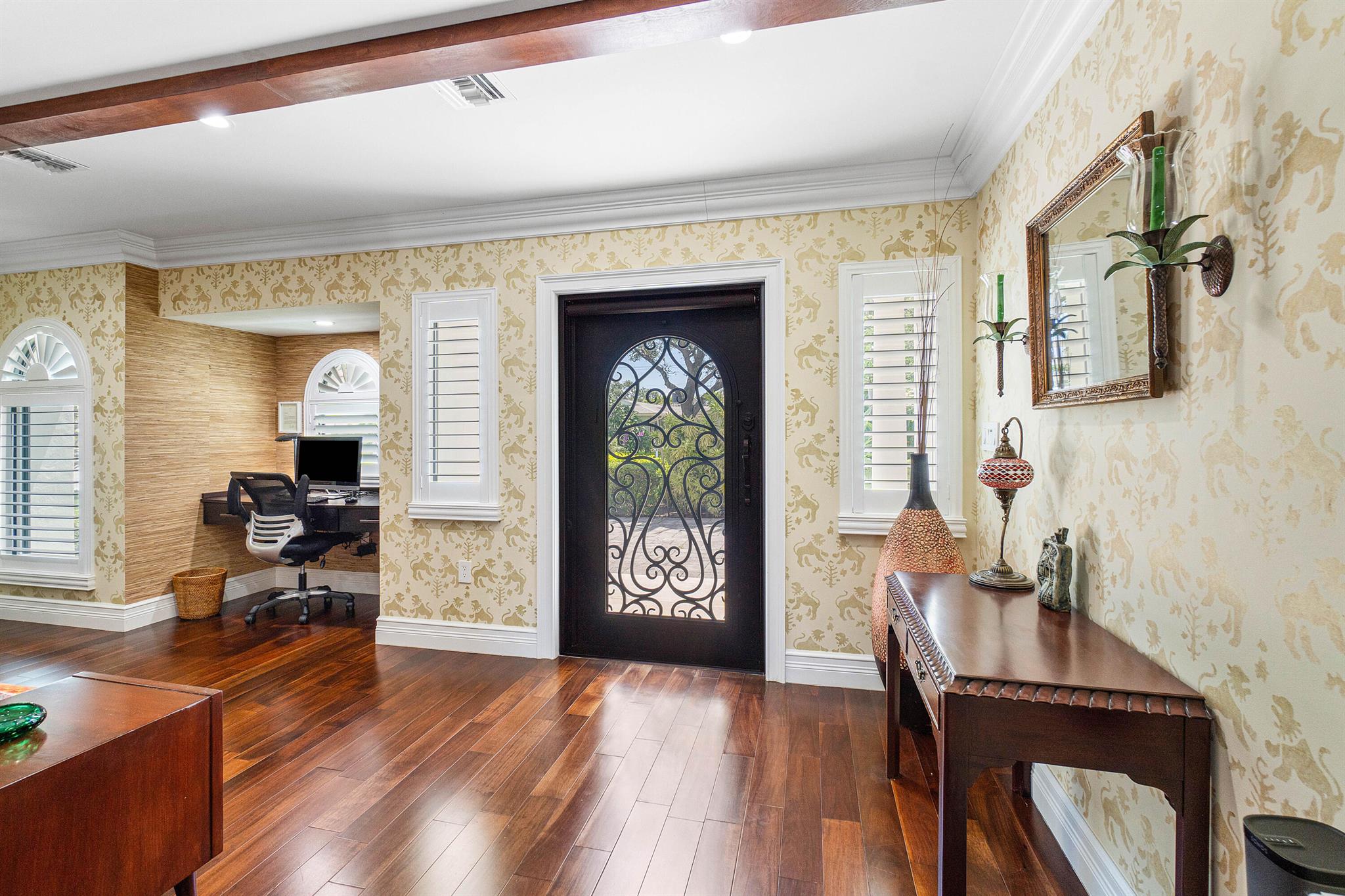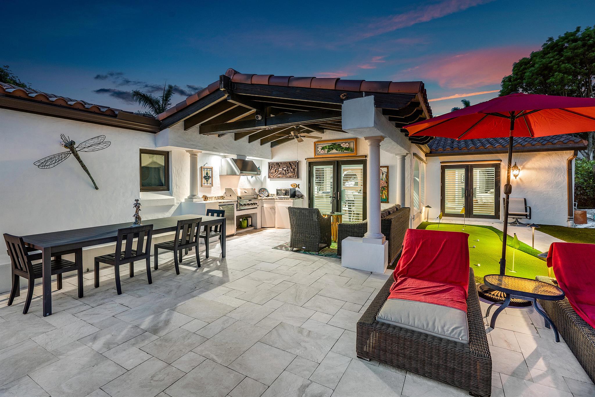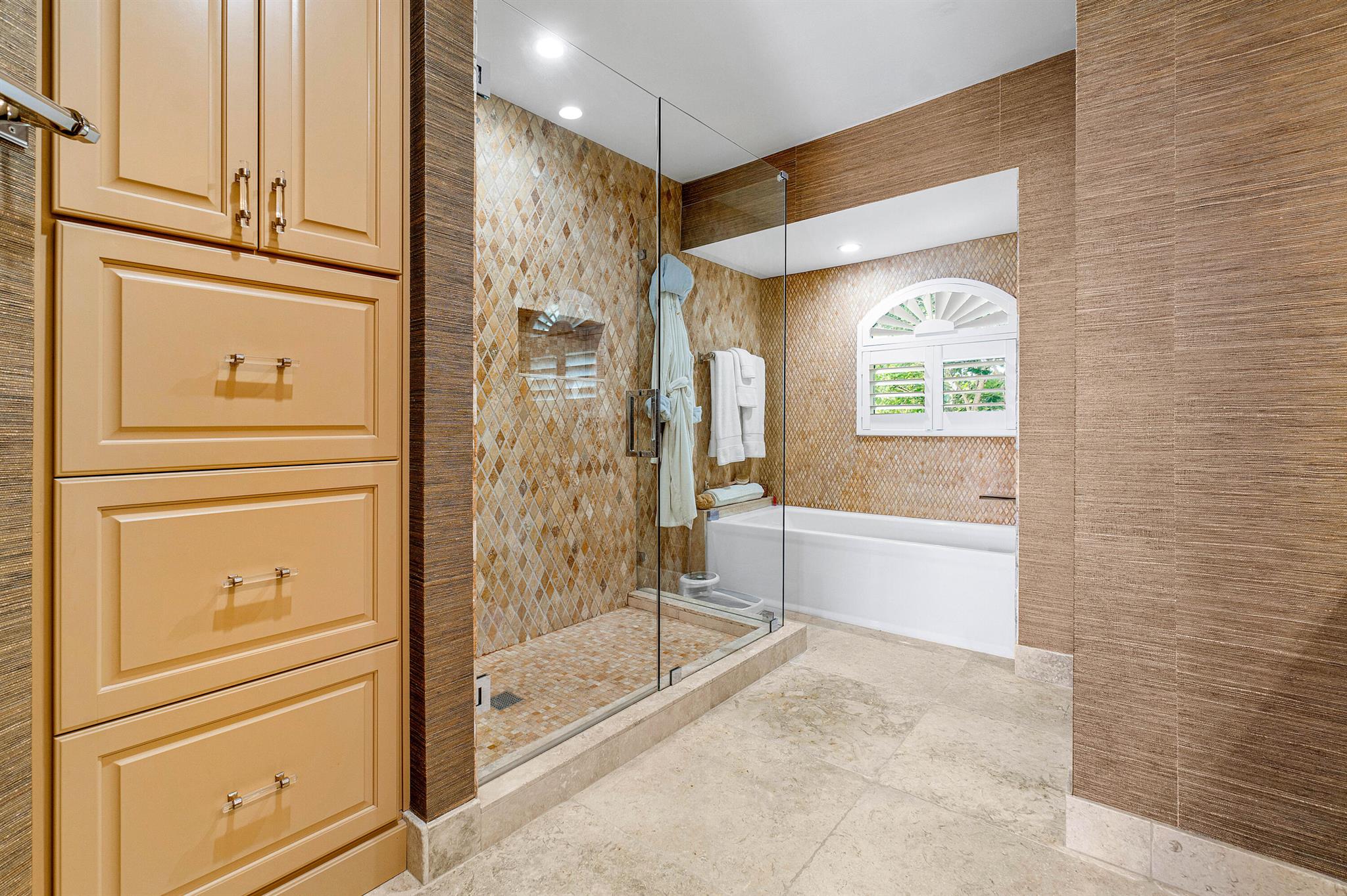 Step into a completely reimagined (from the studs out and up) slice of paradise nestled on a prestigious corner lot, in the Conference Ridge section of E Boca Raton, where impeccable landscaping frames a stunning 3 bedroom & bath retreat. Each bedroom is a sanctuary unto itself, boasting closets adorned with built-in cabinetry, ceiling fans for comfort, and opulent designer bathrooms. Throughout the home, Plantation Shutters offer both privacy and timeless elegance.The primary bedroom stands as a testament to luxury, featuring both spacious step-in shower & a sumptuous tub, alongside a fully outfitted closet complete w/bespoke cabinetry. French doors beckon you to the backyard oasis, where a sparkling gas heated salt water pool awaits beneath the sun-kissed skies