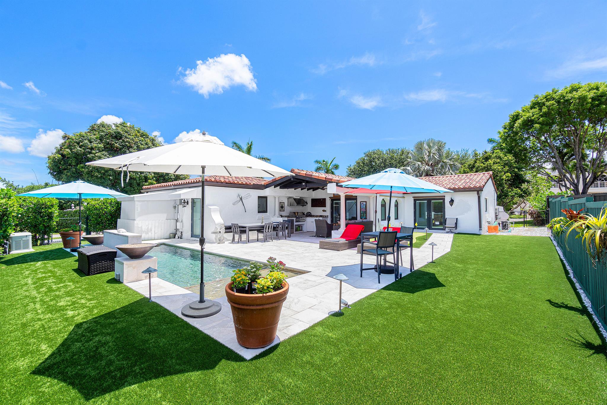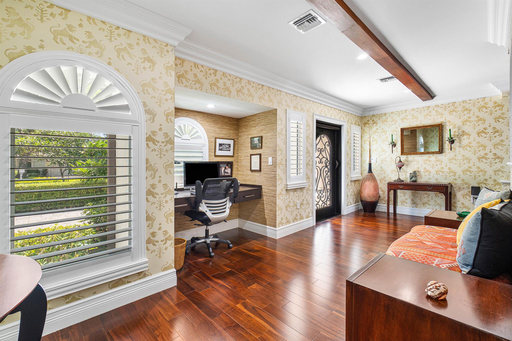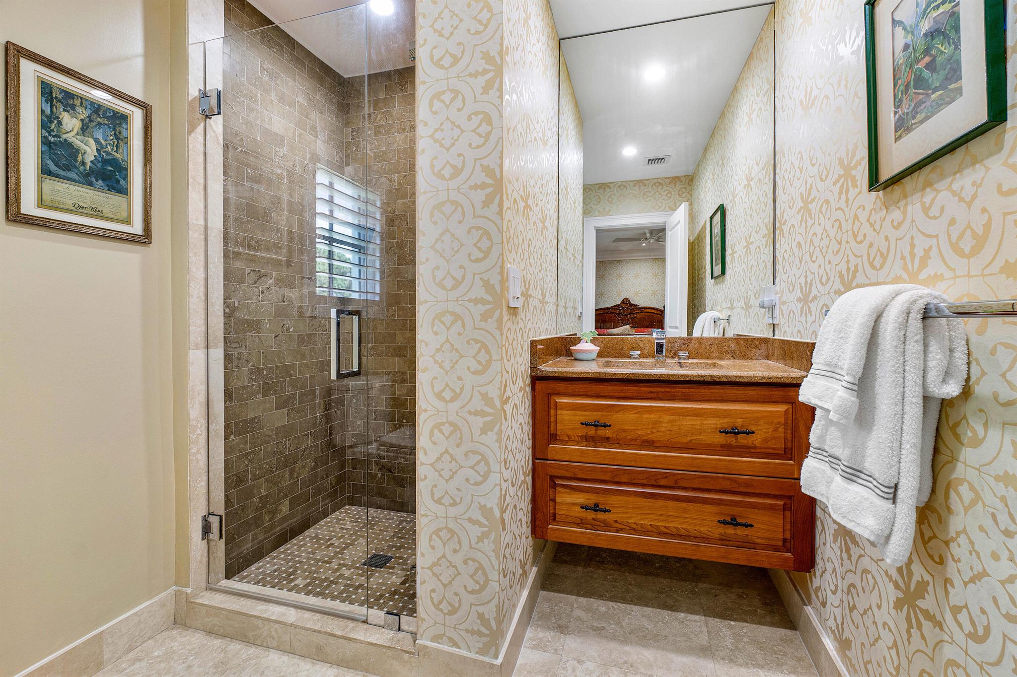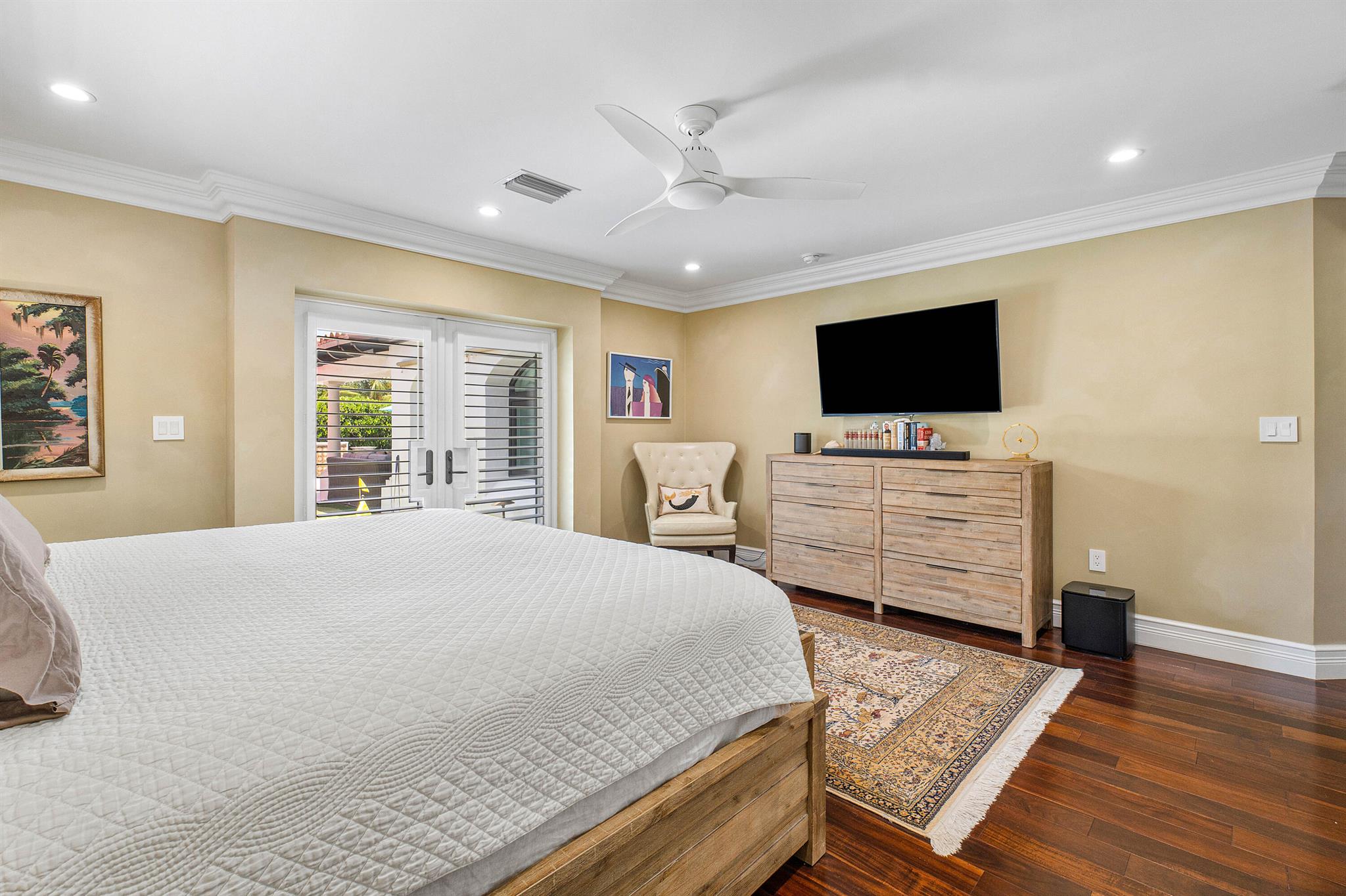 Step into a completely reimagined (from the studs out and up) slice of paradise nestled on a prestigious corner lot, in the Conference Ridge section of E Boca Raton, where impeccable landscaping frames a stunning 3 bedroom & bath retreat. Each bedroom is a sanctuary unto itself, boasting closets adorned with built-in cabinetry, ceiling fans for comfort, and opulent designer bathrooms. Throughout the home, Plantation Shutters offer both privacy and timeless elegance.The primary bedroom stands as a testament to luxury, featuring both spacious step-in shower & a sumptuous tub, alongside a fully outfitted closet complete w/bespoke cabinetry. French doors beckon you to the backyard oasis, where a sparkling gas heated salt water pool awaits beneath the sun-kissed skies