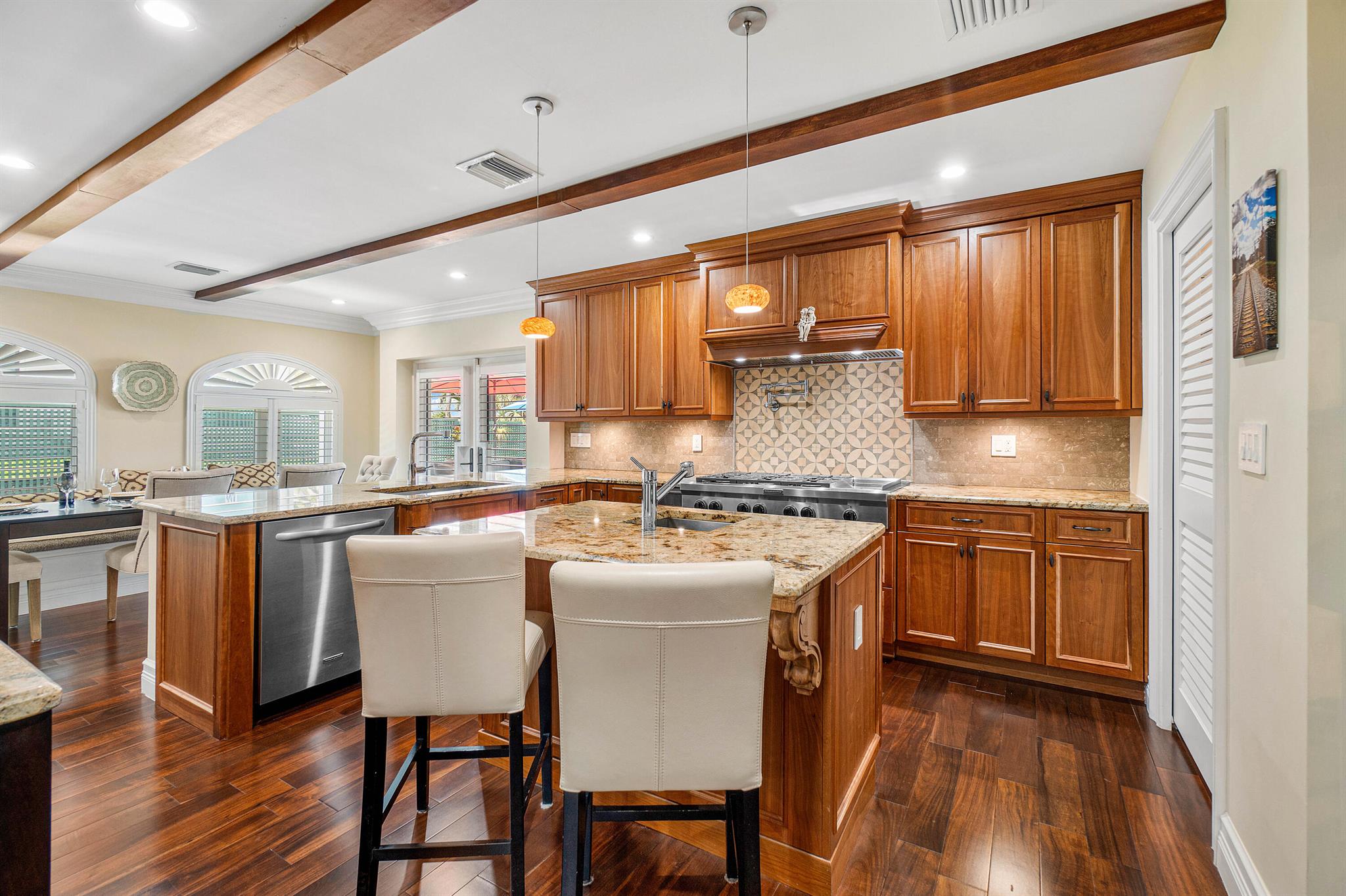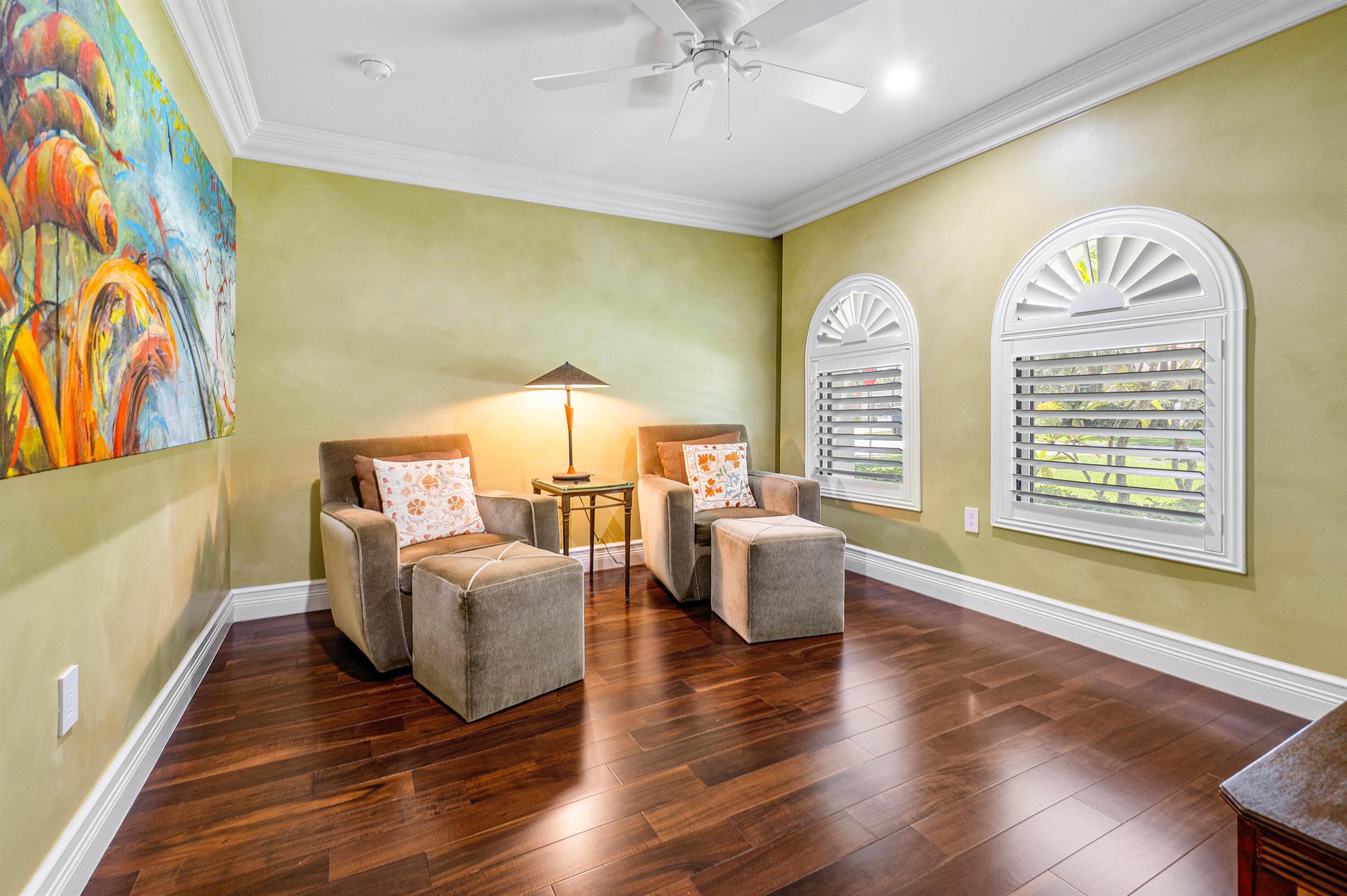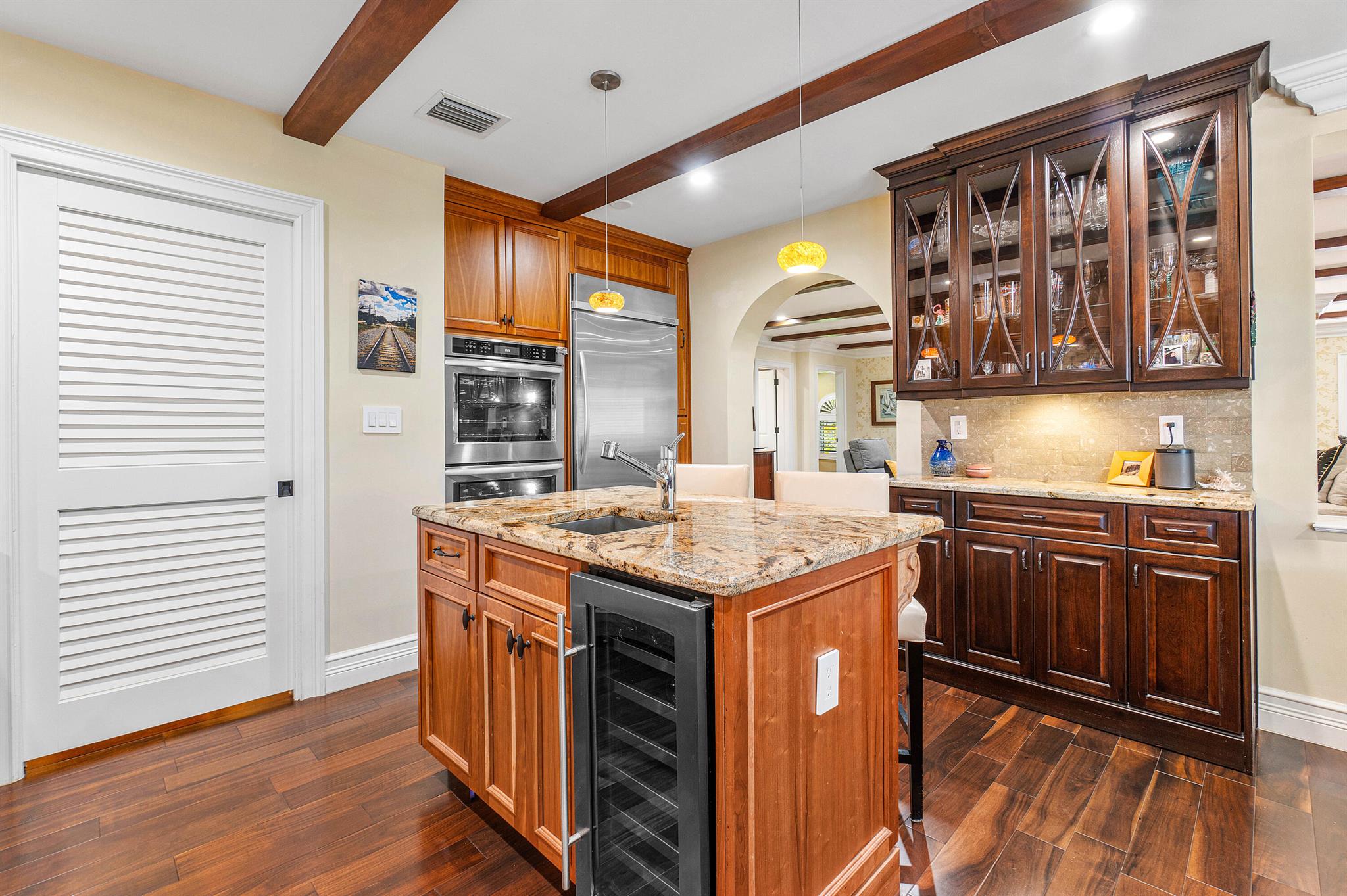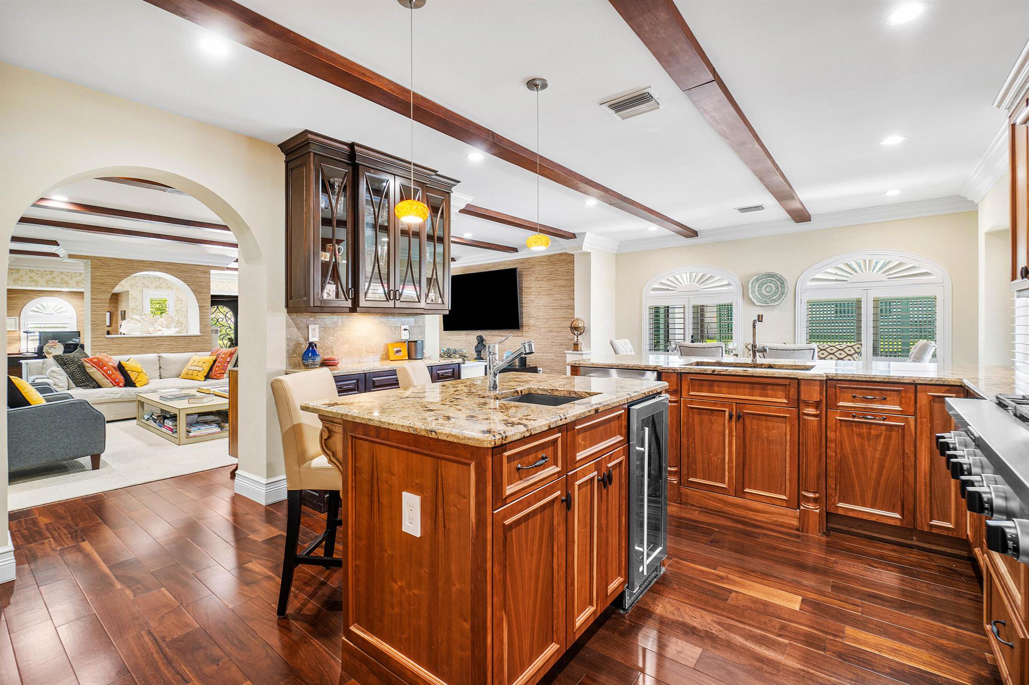 Step into a completely reimagined (from the studs out and up) slice of paradise nestled on a prestigious corner lot, in the Conference Ridge section of E Boca Raton, where impeccable landscaping frames a stunning 3 bedroom & bath retreat. Each bedroom is a sanctuary unto itself, boasting closets adorned with built-in cabinetry, ceiling fans for comfort, and opulent designer bathrooms. Throughout the home, Plantation Shutters offer both privacy and timeless elegance.The primary bedroom stands as a testament to luxury, featuring both spacious step-in shower & a sumptuous tub, alongside a fully outfitted closet complete w/bespoke cabinetry. French doors beckon you to the backyard oasis, where a sparkling gas heated salt water pool awaits beneath the sun-kissed skies