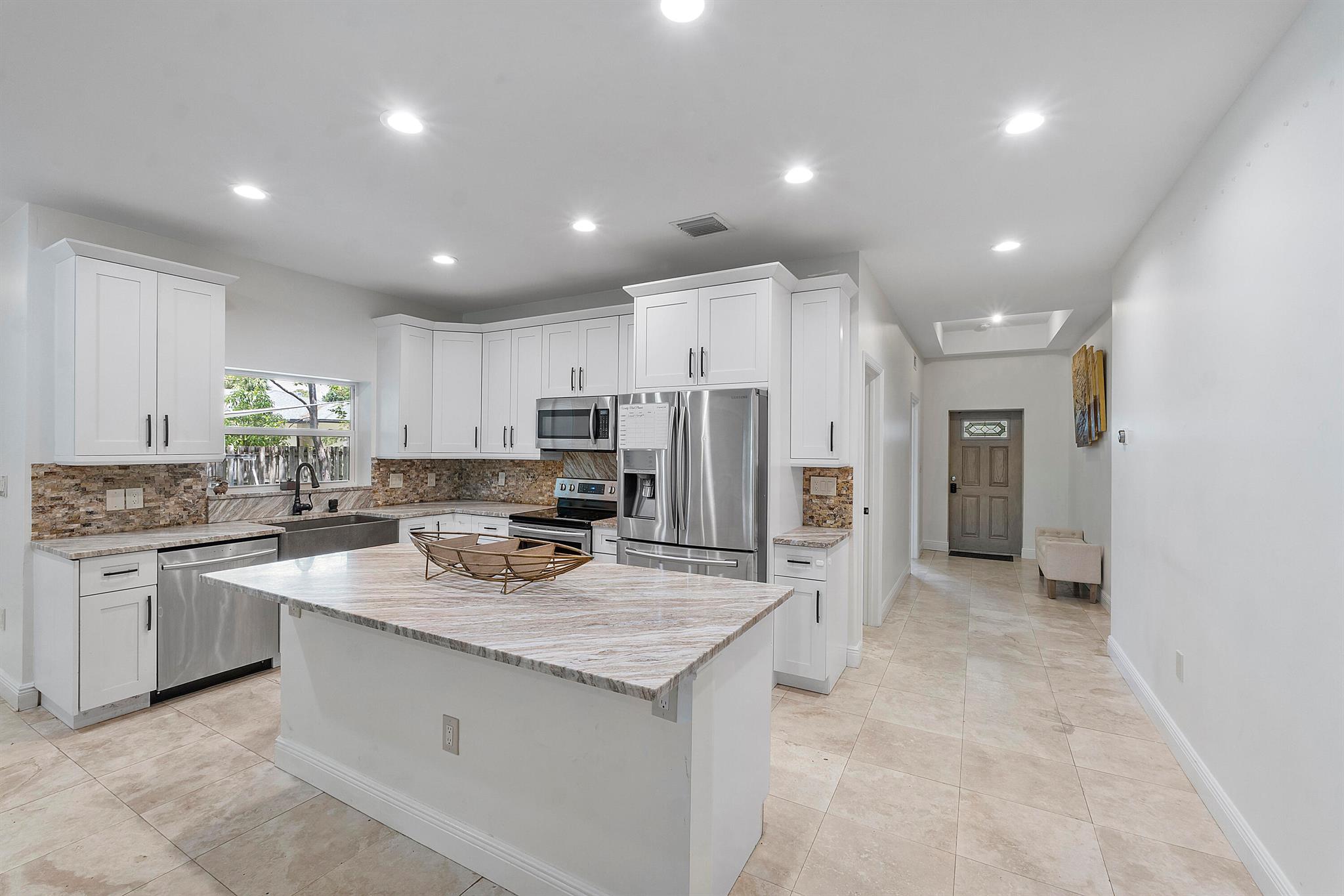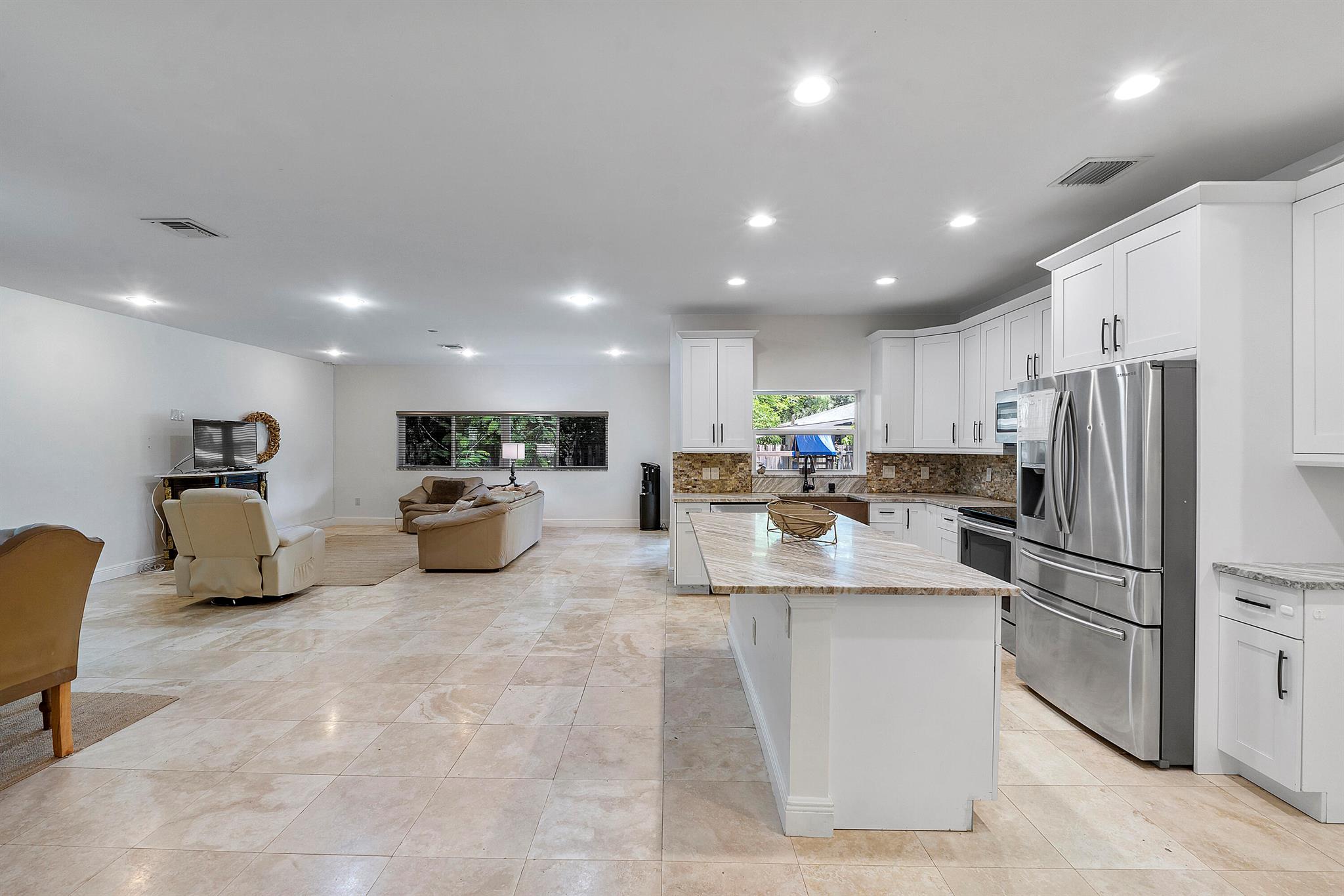 Fantastic private retreat built less than 10 years ago within beautiful Rohan Acres Community located in Fort Lauderdale. This split-bedroom floor plan boasts three spacious living suites, vaulted ceilings, and tasteful upgrades throughout. Gorgeous kitchen layout is perfect for entertaining and looks out into the large fenced yard - enjoy cool winter evenings dining on the patio, warm summers grilling for guests, or a quiet place to relax and unwind near the fire pit all year round. Main bedroom features three-person jacuzzi tub, 24in waterfall shower head, and upgraded vanities. Travertine flooring though out entire interior. Home located on private road with almost no traffic, no heavily traveled routes nearby. An easy commute to downtown, major shopping, and more - Schedule today!
