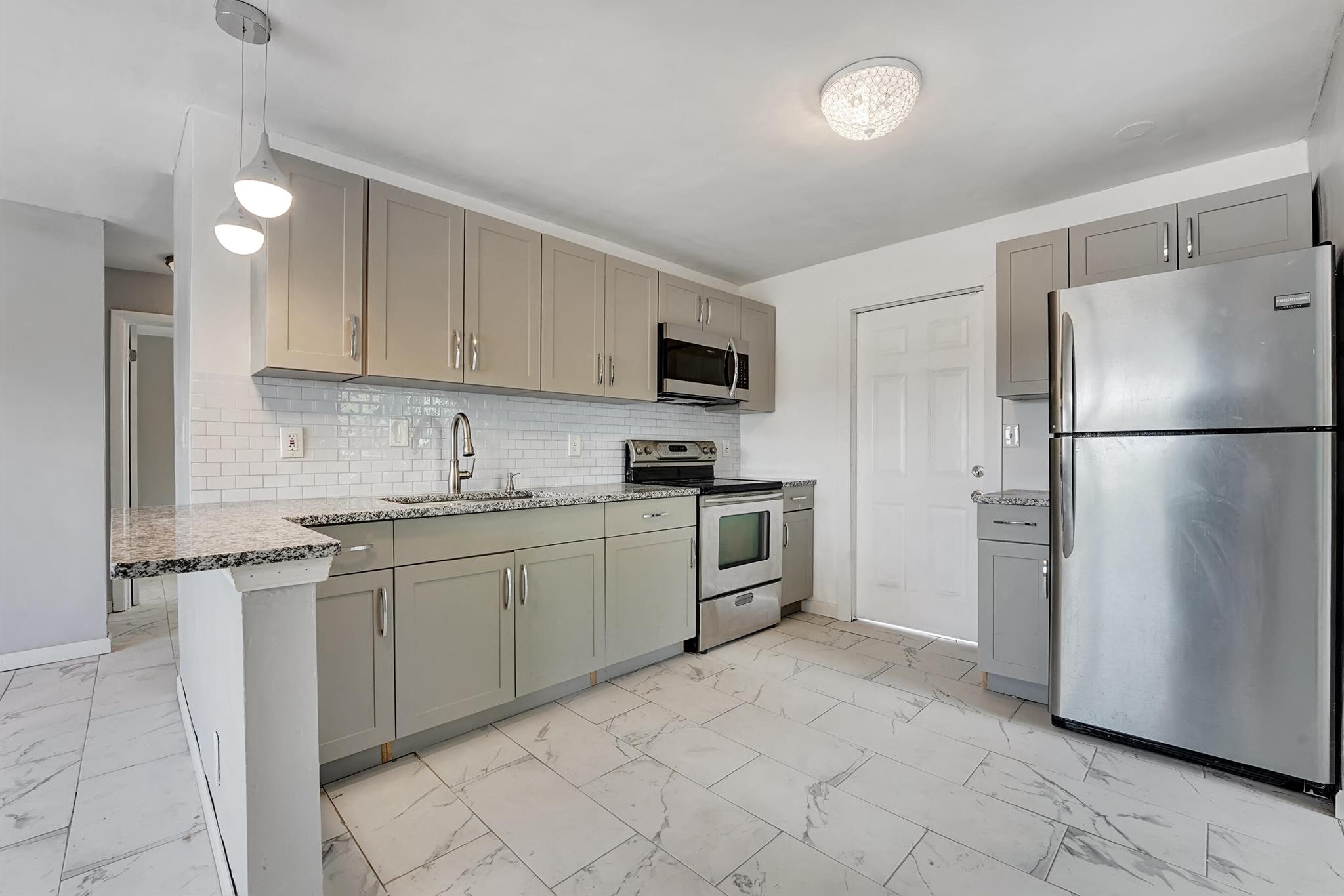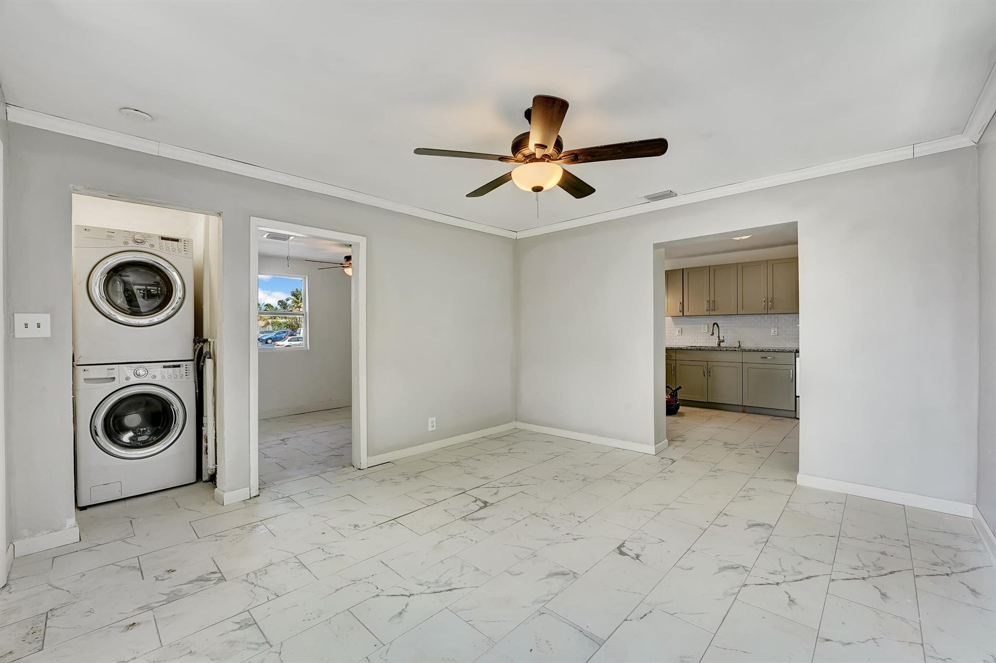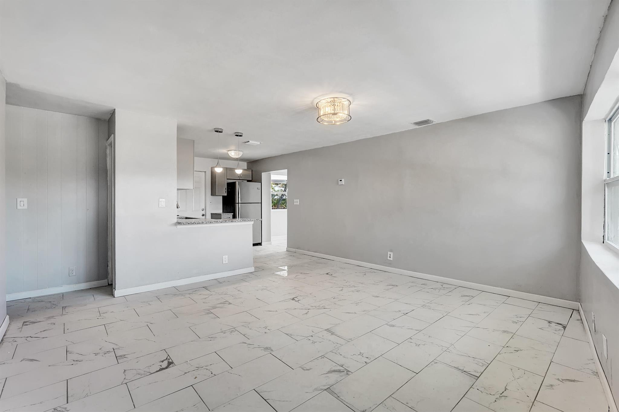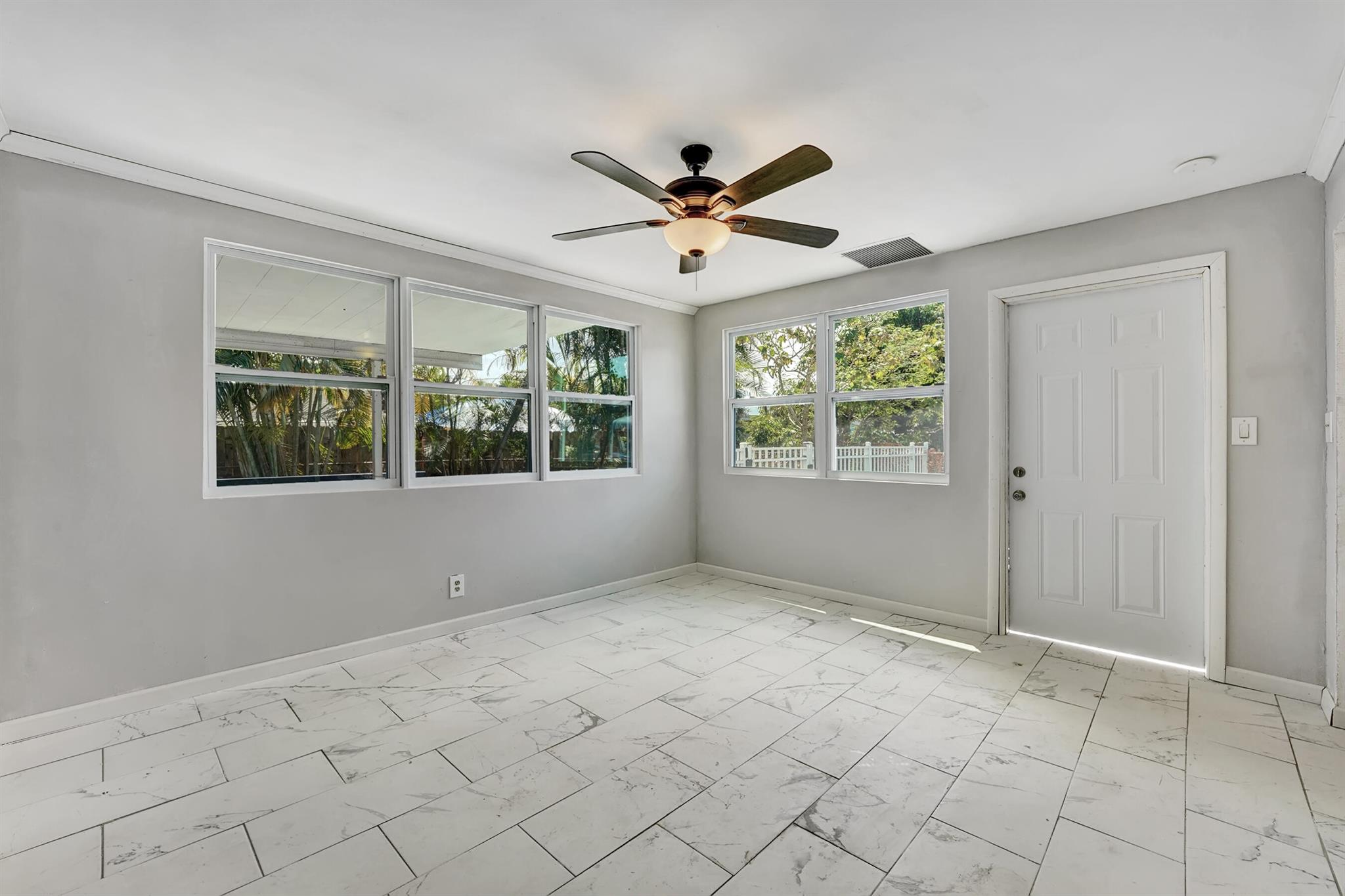Discover the charm of this renovated home in a no-HOA neighborhood of Pompano Beach. The property features extensive upgrades, including porcelain tile flooring, new baseboards, a new roof (2022), updated AC and ductwork, and a tankless water heater. With impact glass on all but one window, you can enjoy added storm protection and peace of mind. The spacious kitchen boasts gray Shaker-style cabinetry, a subway tile backsplash, an under-counter sink, granite countertops, and stainless steel appliances. The owner's suite offers ample closet space and an en suite bath. Step outside to a fenced backyard featuring both open and covered terraces, ideal for outdoor seating, grilling, dining, and more. The expansive driveway provides plenty of room for boat or RV.