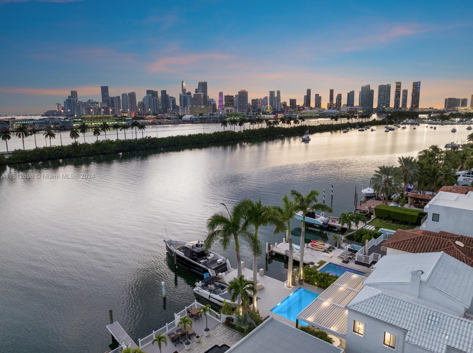 Welcome to Villa Bianca, a completely renovated waterfront residence thoughtfully curated by Artefacto. Located in the prestigious community of Palm Island, this turnkey, modern home is delivered with furniture and interior design by Fabio Morozini and Artefacto. The gourmet Italkraft kitchen features Wolf and Subzero appliances and Bronze Crystallo Countertops. Meticulously designed with a focus on modern aesthetics, this home has sleek lines, floor-to-ceiling windows, and an open floor plan with Nana sliding glass doors that invite you to the exterior. The backyard features an entertaining deck, saltwater negative-edge pool, two vessel dock on 50 ft of waterfrontage, and picturesque views of Downtown Miami.