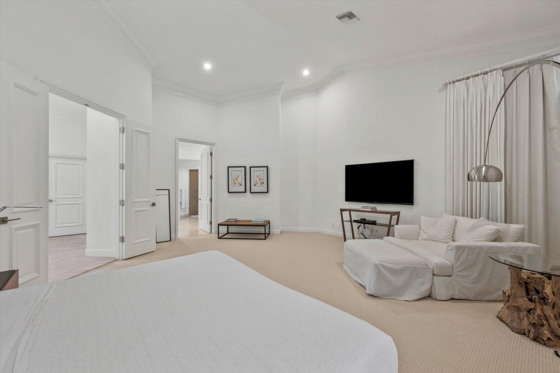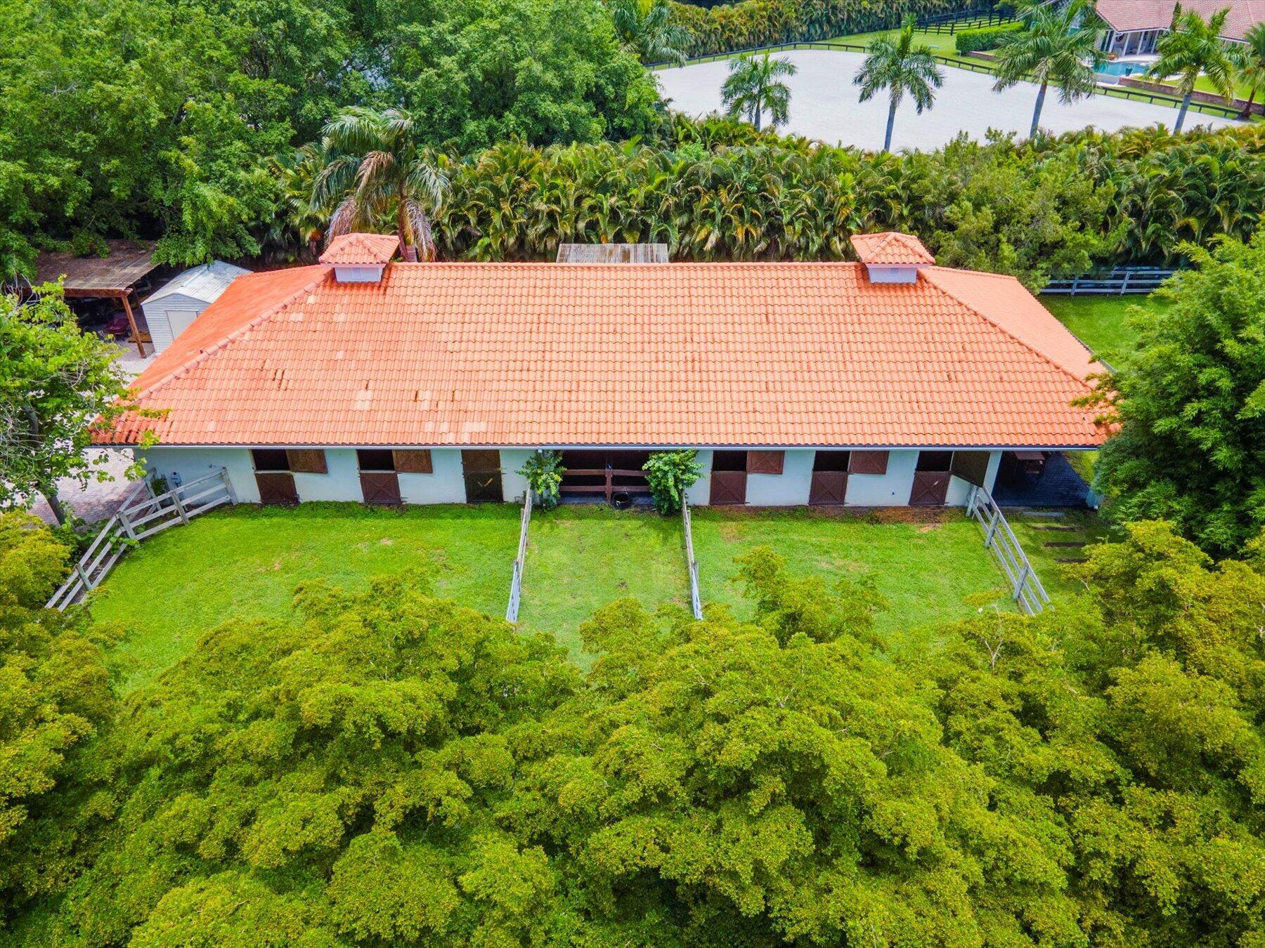 Nestled just a 5-minute stroll from Wellington International, this Saddle Trail Equestrian Estate epitomizes luxury and convenience for horse enthusiasts. Featuring a 5-bedroom, 5-bathroom primary residence surrounded by premier equestrian amenities. Step inside the home to discover multiple living areas, complemented by a sprawling screened-in patio that overlooks a heated saltwater pool and spa--an oasis for relaxation after a day in the saddle. For the equine residents, an immaculate 8-stall center aisle barn awaits, complete with a tack room, full bathroom, washer & dryer, and convenient in-aisle wash racks. Each 12 x 12 stall is outfitted with built-in waterspouts and the stable is complete with a fly spray system and security cameras.