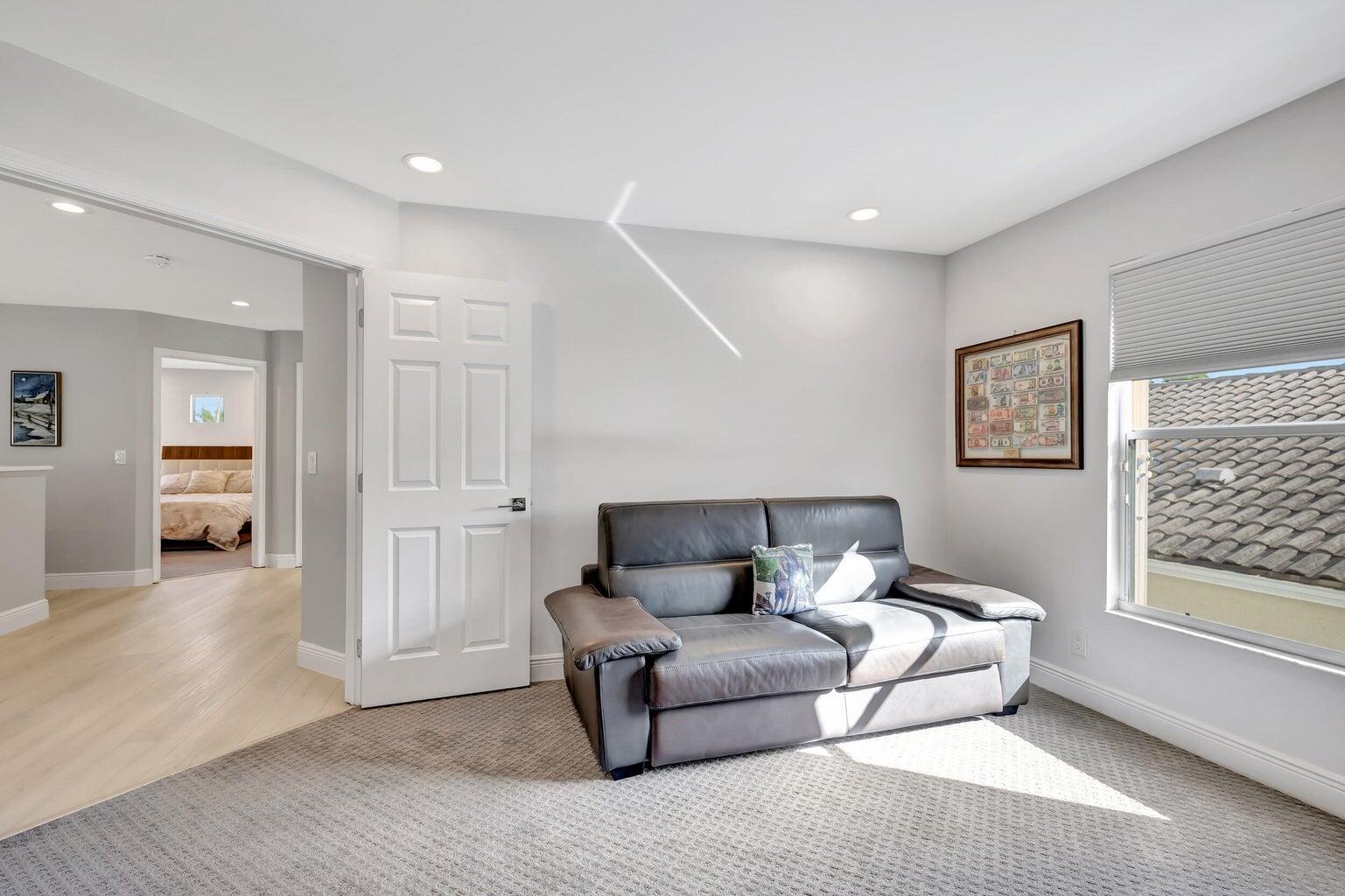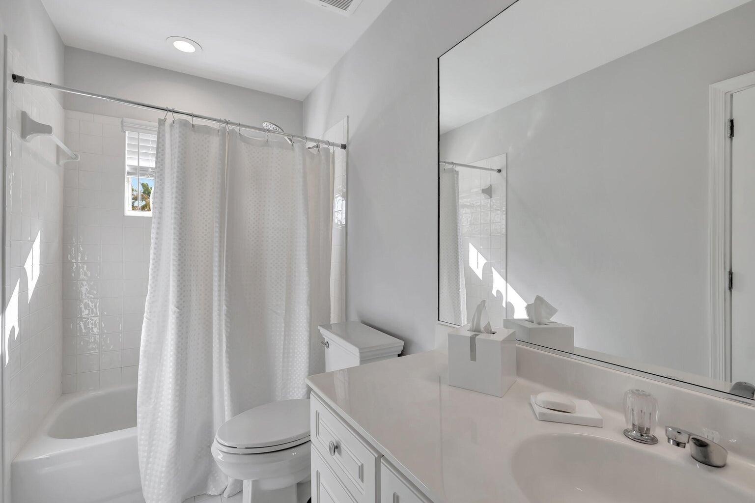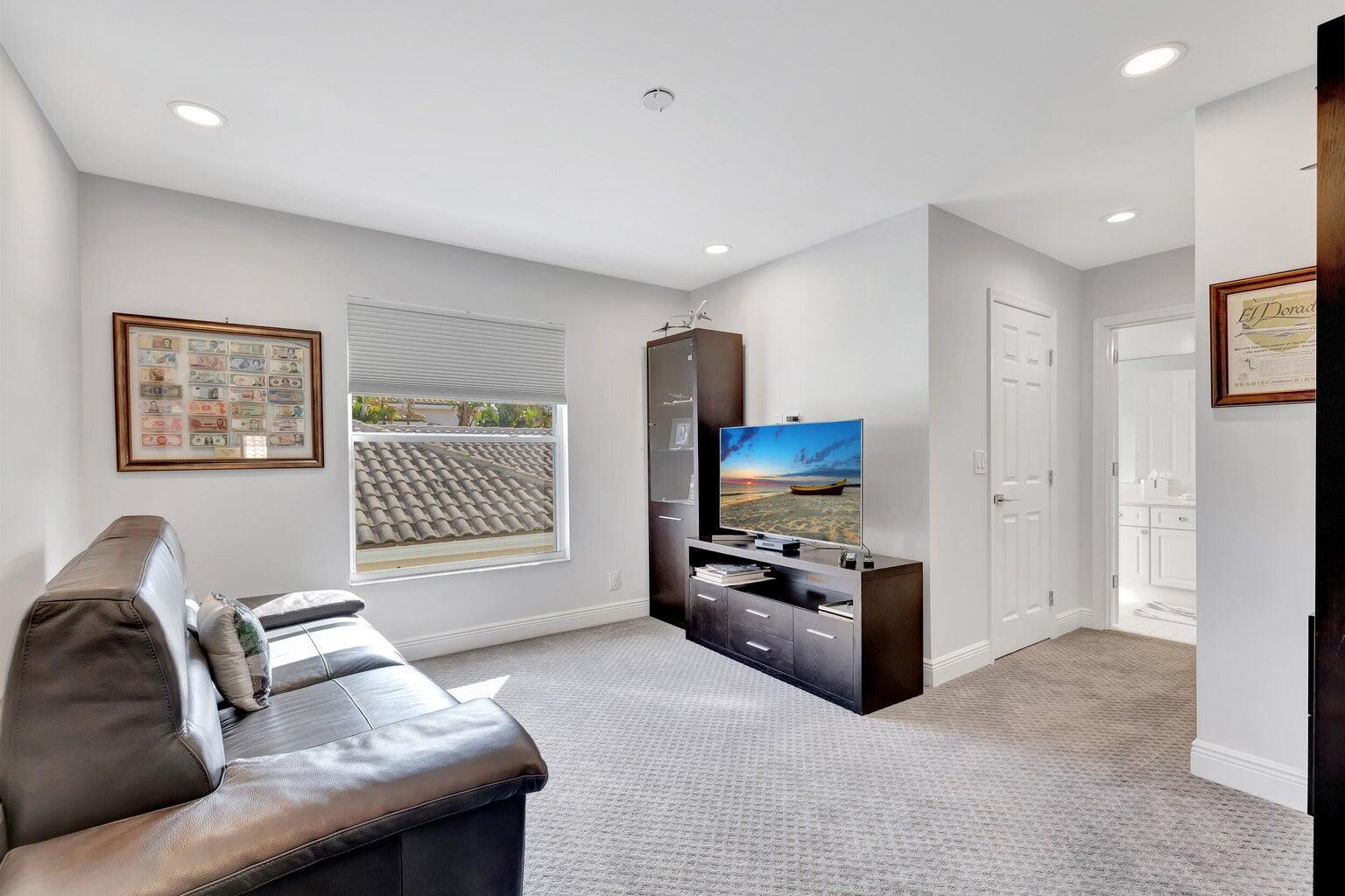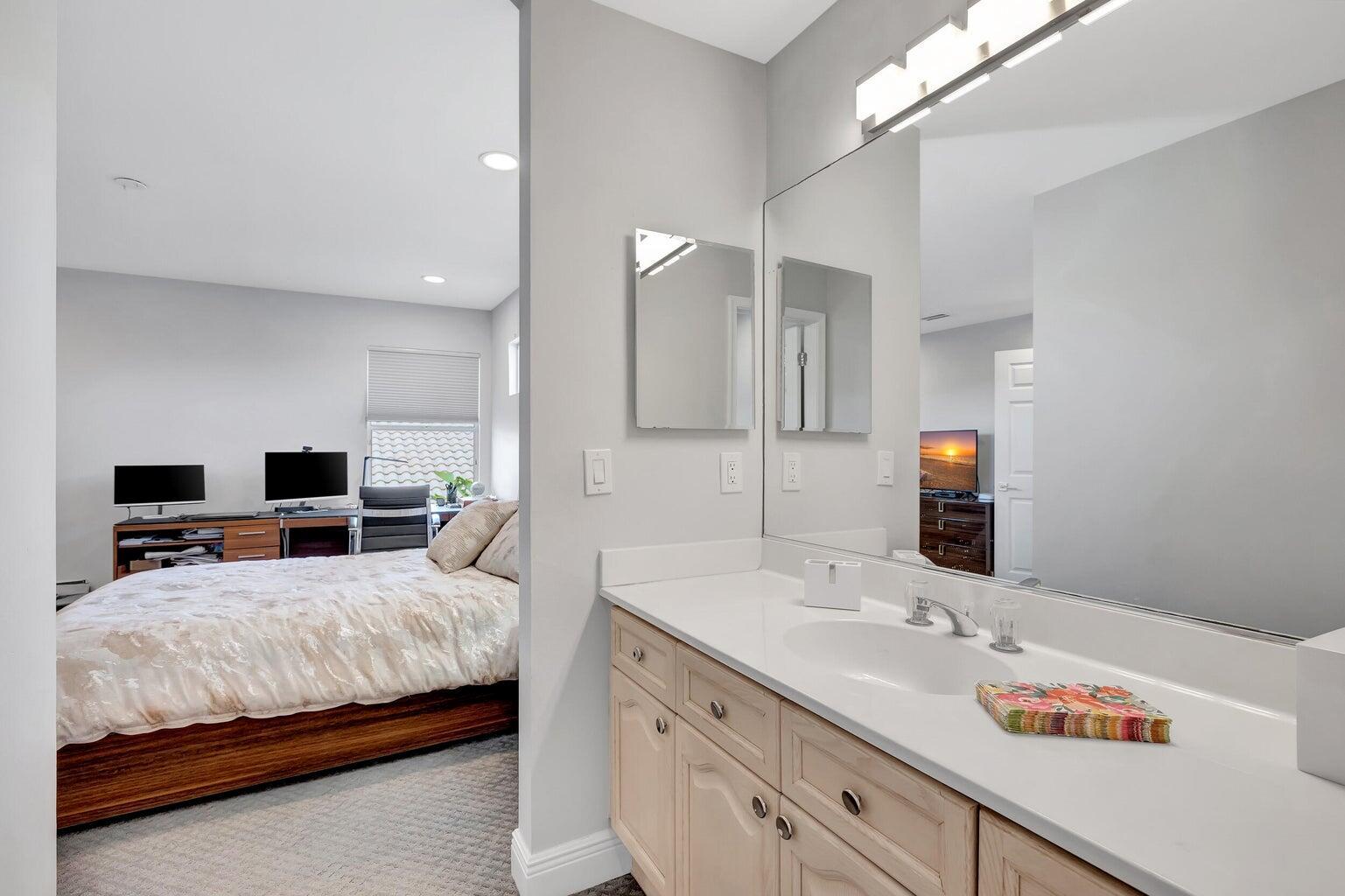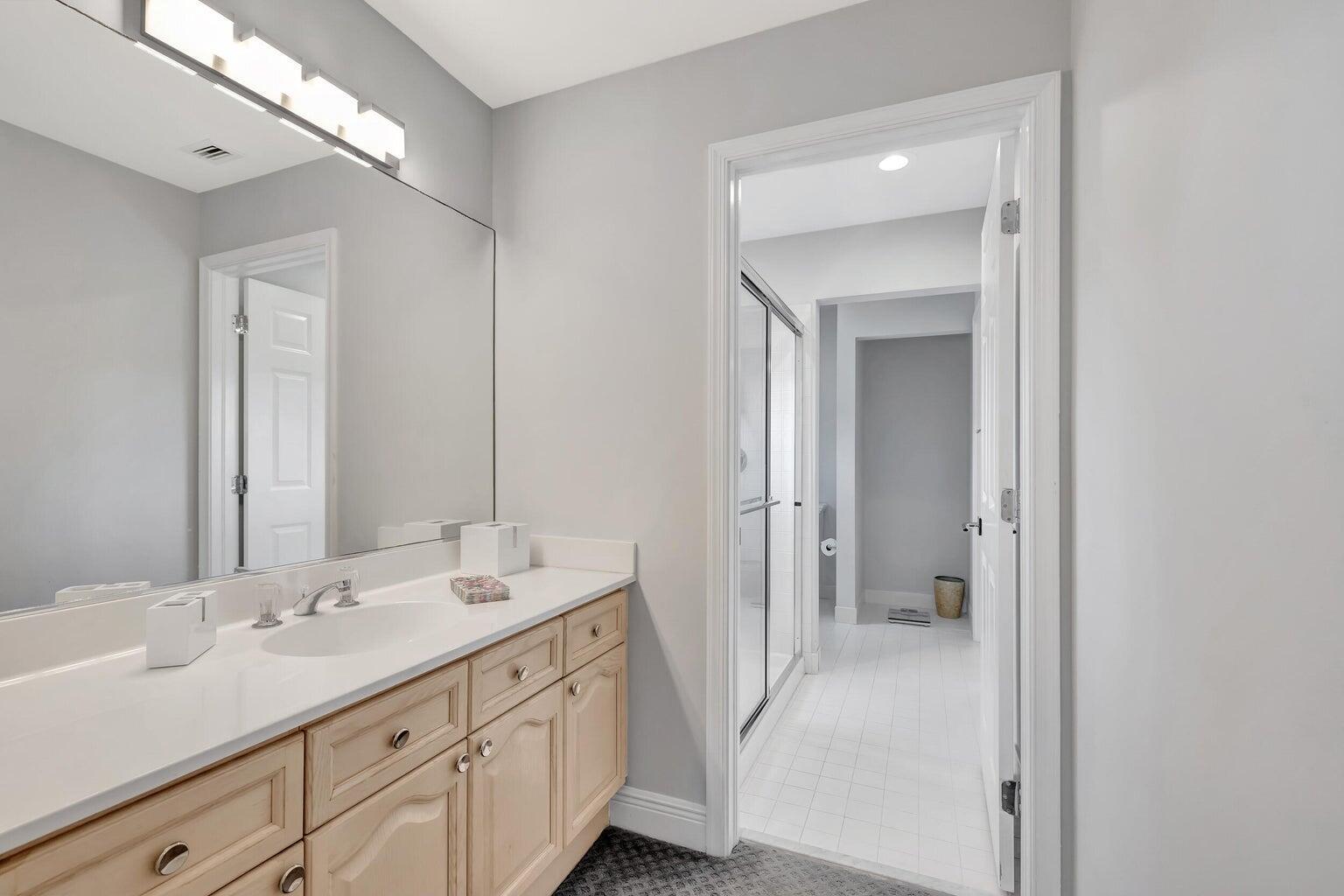 Welcome to this exquisite, renovated contemporary two-story home in the prestigious Broken Sound Club. Encompassing over 3,000 square feet, this residence epitomizes modern luxury and sophistication. The primary bedroom is thoughtfully located on the ground floor, offering convenience and privacy. Inside, you'll find stunning porcelain tile floors and soaring volume ceilings that enhance the home's spacious and airy feel. The gourmet kitchen is a chef's dream, featuring a waterfall center island and elegant marble countertops. The screened-in patio is perfect for outdoor living, complete with a private pool and picturesque lake views, creating a serene retreat for relaxation and entertainment. This home beautifully combines stylish design with functional living spaces, making it an