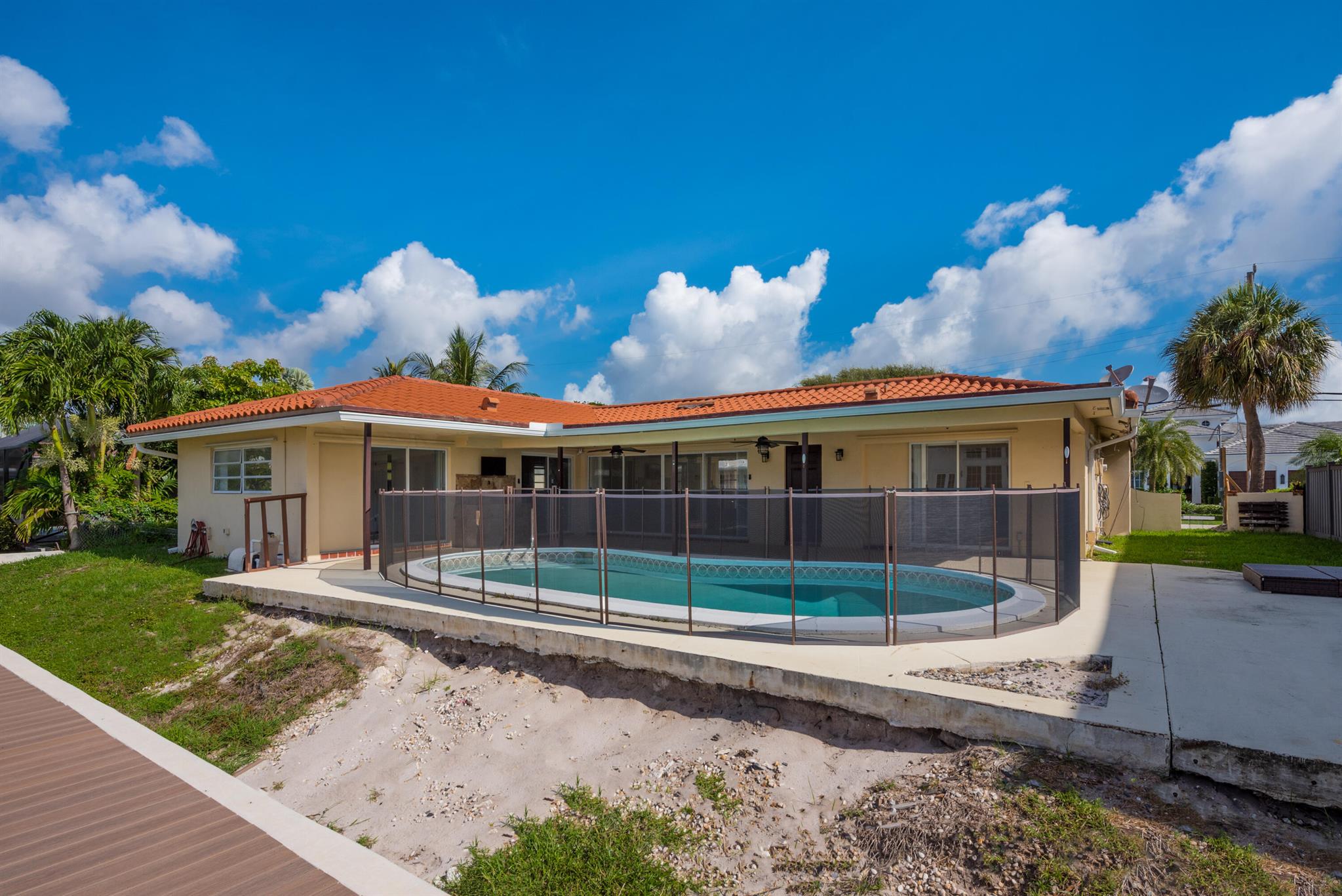 Amazing three bedroom two bathroom waterfront home located in one of the most desired areas of east Boca Raton. This beautiful unit boasts a 100' dock to accommodate a boat up to 80 feet as well as a renovated new 2024 sea wall. Lovely porcelain floors as well as stainless steel appliances and pool in the backyard. Approved plans for a newly constructed home is available upon request