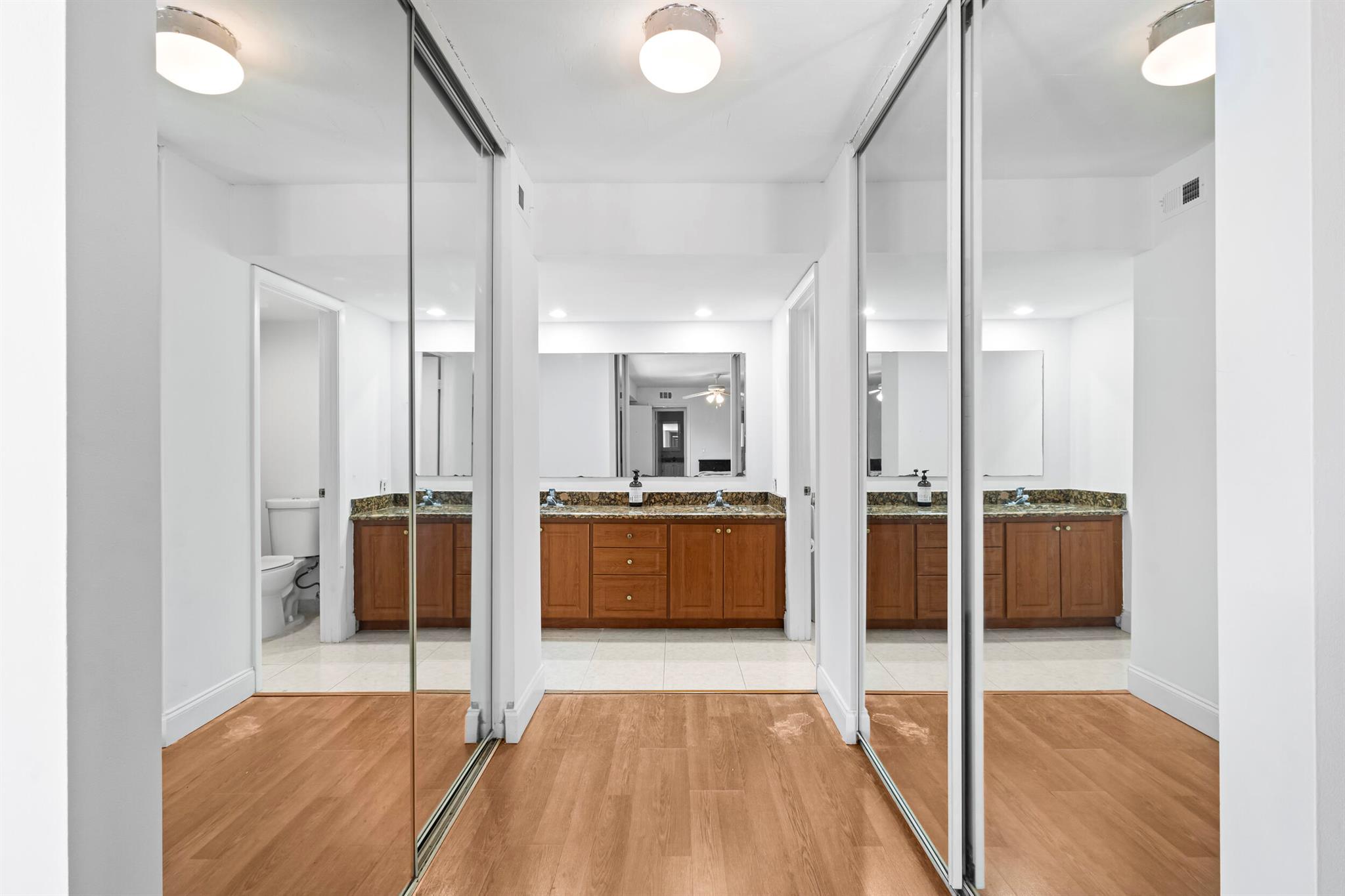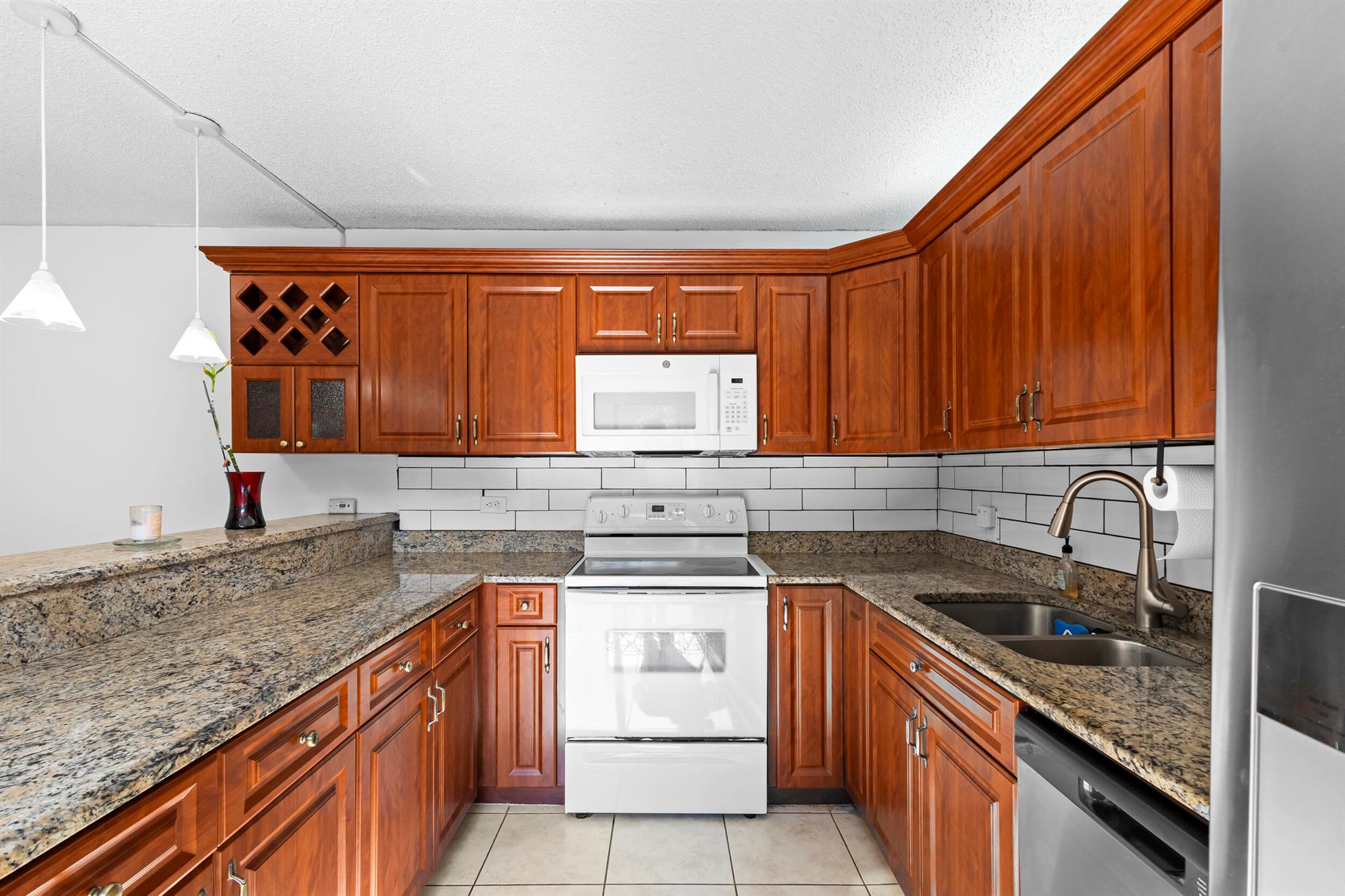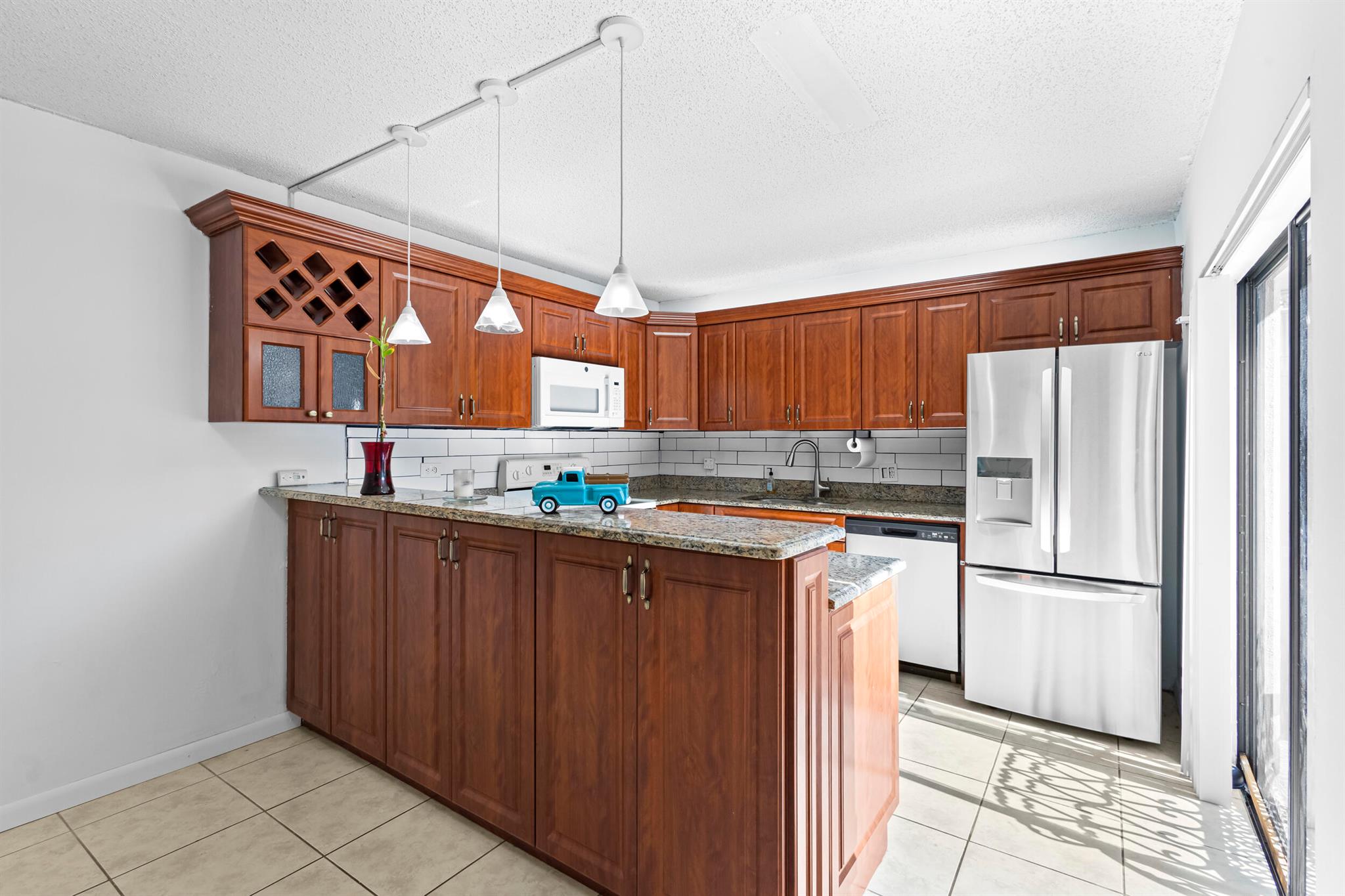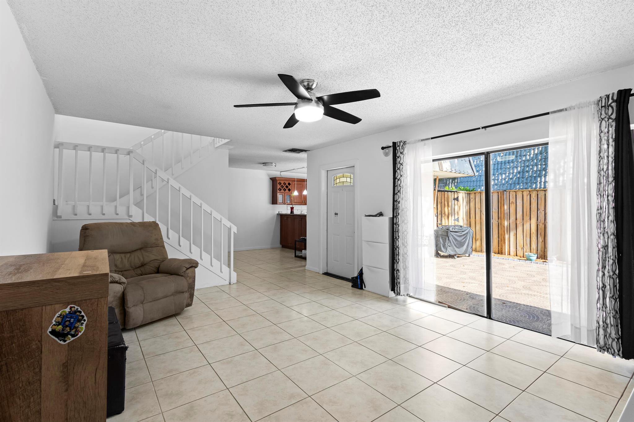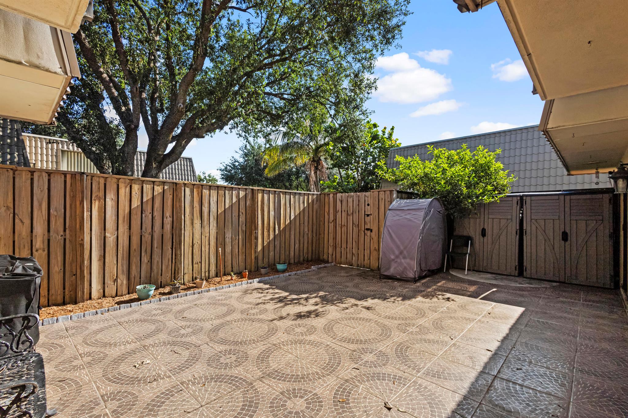 Welcome home to this quiet, tree lined, gated community. Enjoy the serenity of this spacious 3 bedroom, 2.5 bath townhouse, the largest of this style you will find in the area. Ready to move in or can be rented immediately. Plenty of storage space, large private patio area. Shopping, dining, and entertainment are all outside your door. Close to I95 and the airport with a short drive to downtown West Palm Beach. HOA Fee is $640 per month includes exterior maintenance, water, trash, community pool, Comcast basic cable, and exterior roof insurance. Includes two assigned parking spaces. New roof was installed 2022. All measurements are approximate.