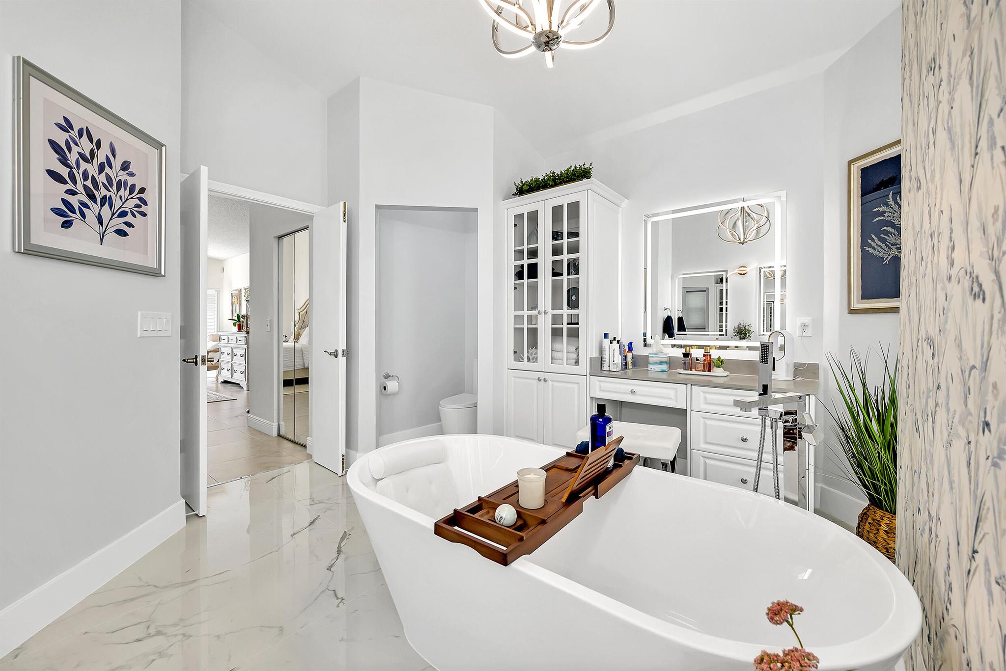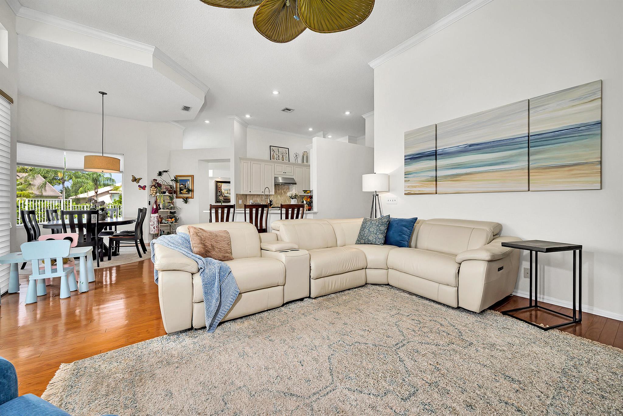 This upgraded home sits on .26 acres fulfilling every pool and water enthusiasts fantasy. Step through grand oversized entry doors into a realm of opulence across an open floor plan. Gaze through a large bay window to behold your dream water vista beyond the pool and lake view.This home is over 3100 sqft, featuring four bedrooms and 3.5 baths which includes a cabana half bath, two car garage, atrium, chefs kitchen, split floor plan and a GRAND owners suite.New roof in 2012, newer AC & hot water heater. Low HOA A+ rated schoolsClose to shopping, turnpike and I95.