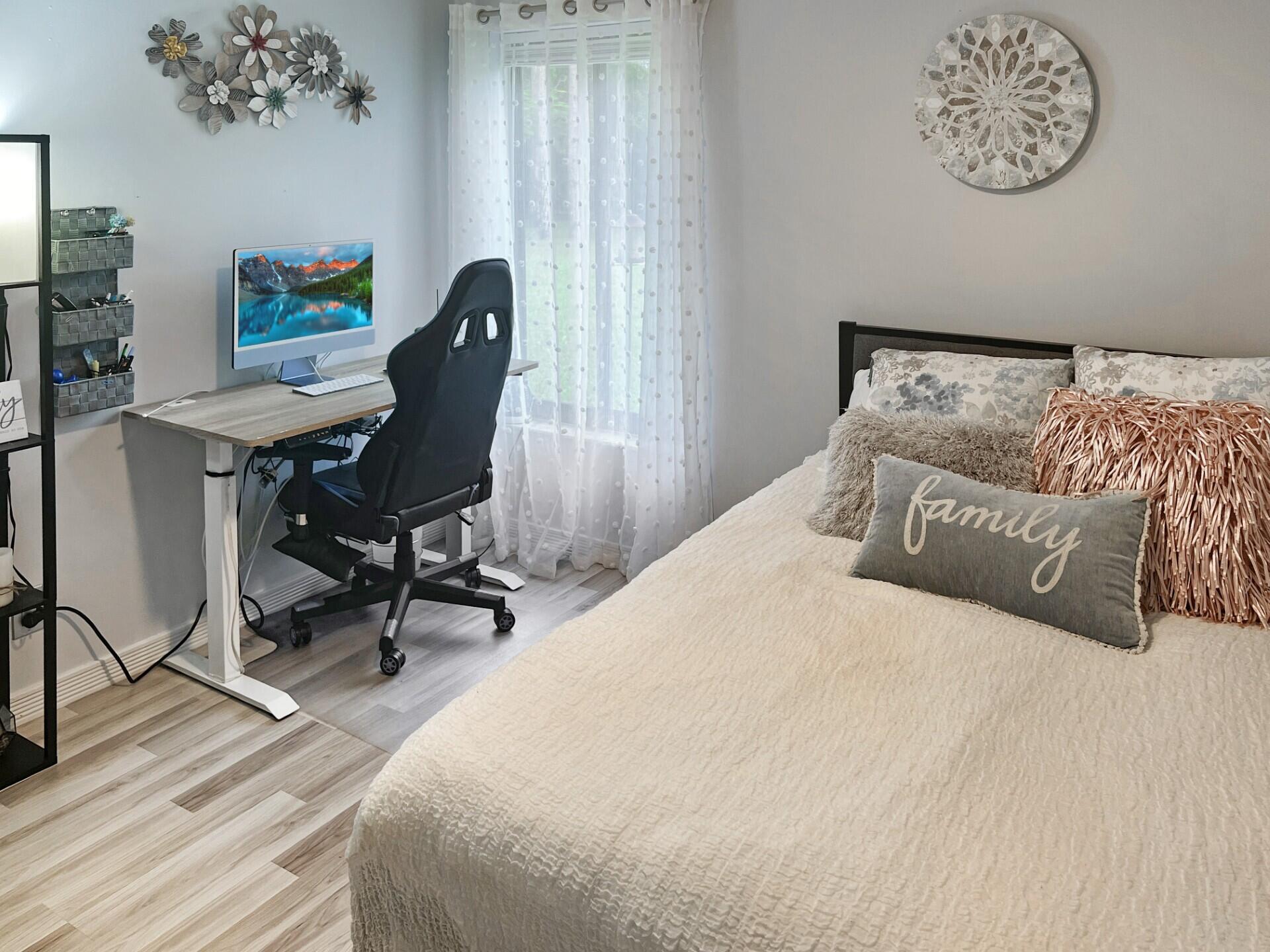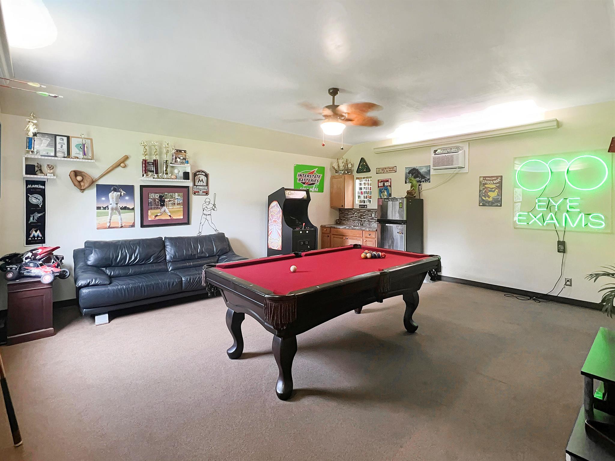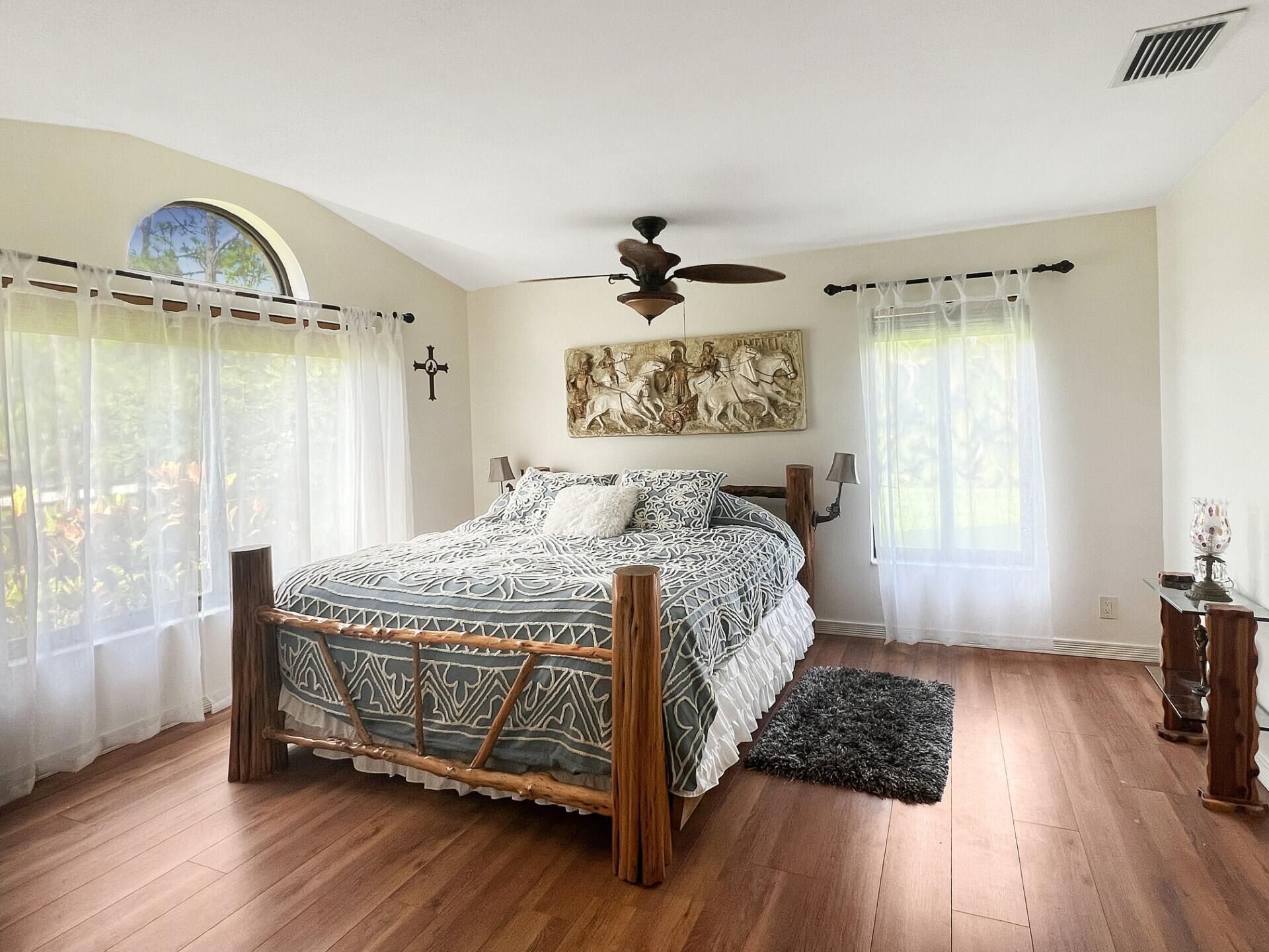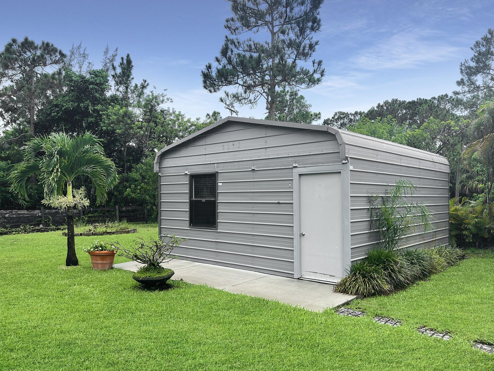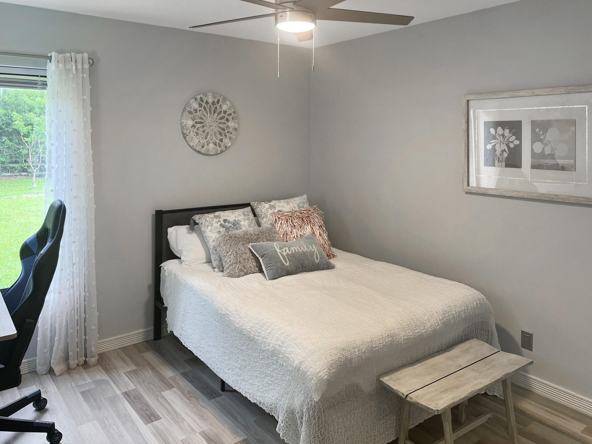 Nestled in the sought-after most eastern community of the Acreage, this meticulously landscaped 3-bedroom, 2-bathroom home with 3 car detached garage and detached game room/man cave spans a generous 1.31-acre lot. NEW in 2021: roof and blown-in insulation, hurricane impact windows throughout and water softener system. New laminate floor throughout. Updated bathrooms. His and her main custom closets. House generator hook up. Wood burning fireplace. Irrigation, fully fenced with electric gate. Huge fully paved driveway, perfect for hobbyists or small business owners. An attached two-car garage offers additional parking and storage solutions. Inside, enjoy a spacious formal living room flowing into an open-concept kitchen, breakfast nook. Outside, a screened-in covered patio.
