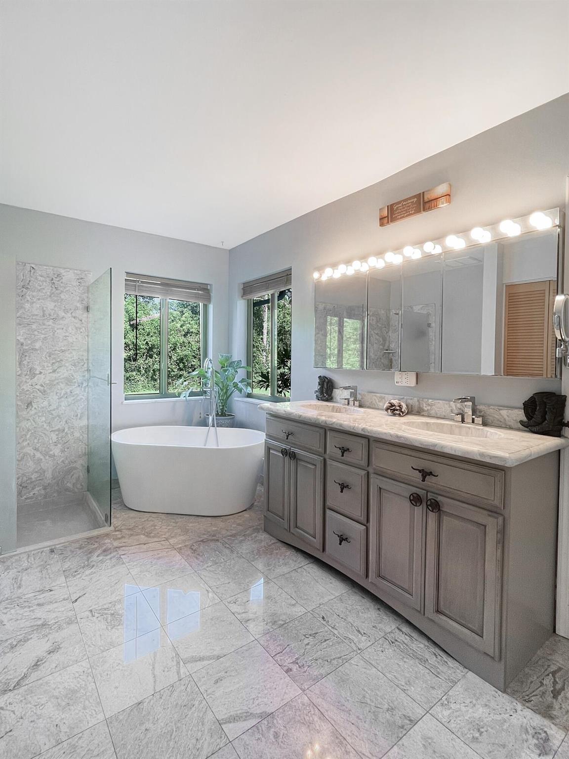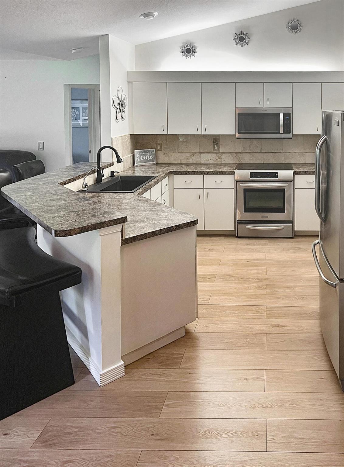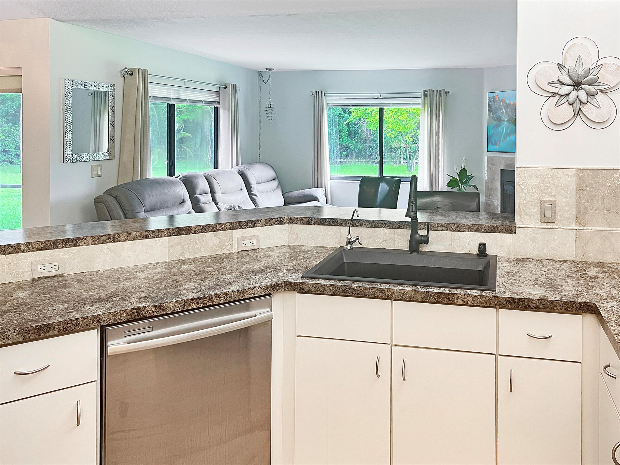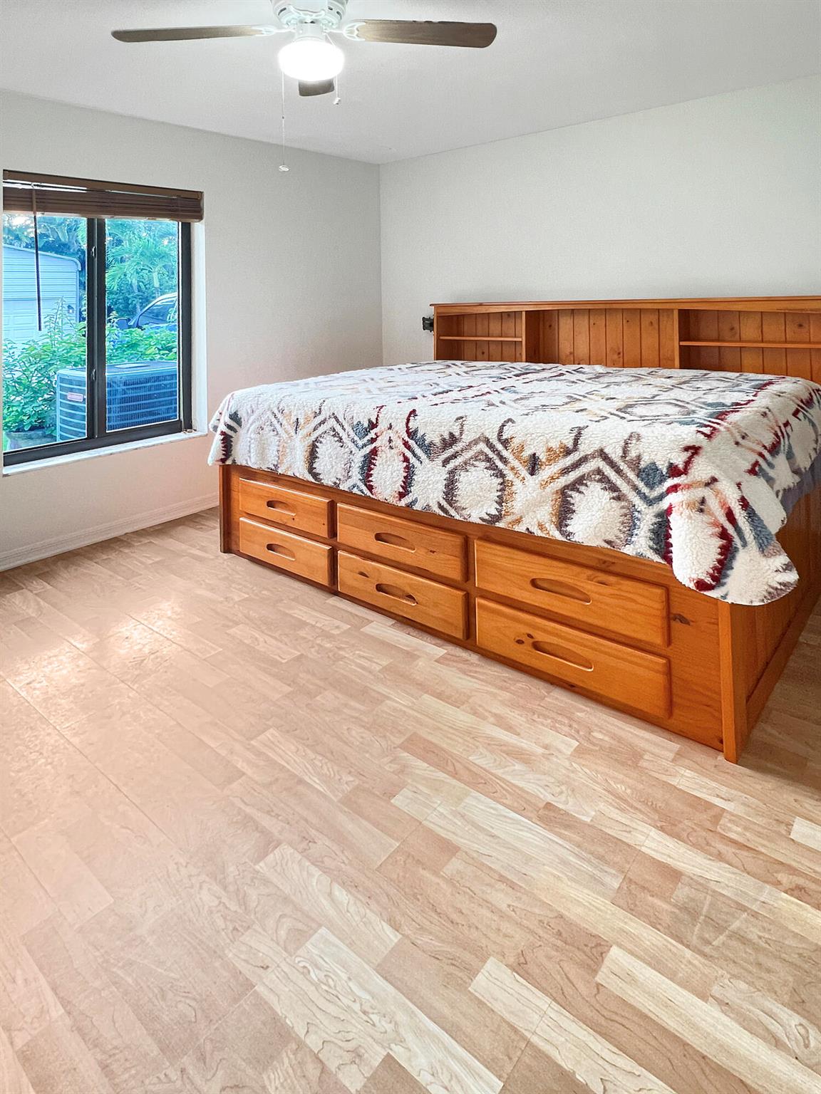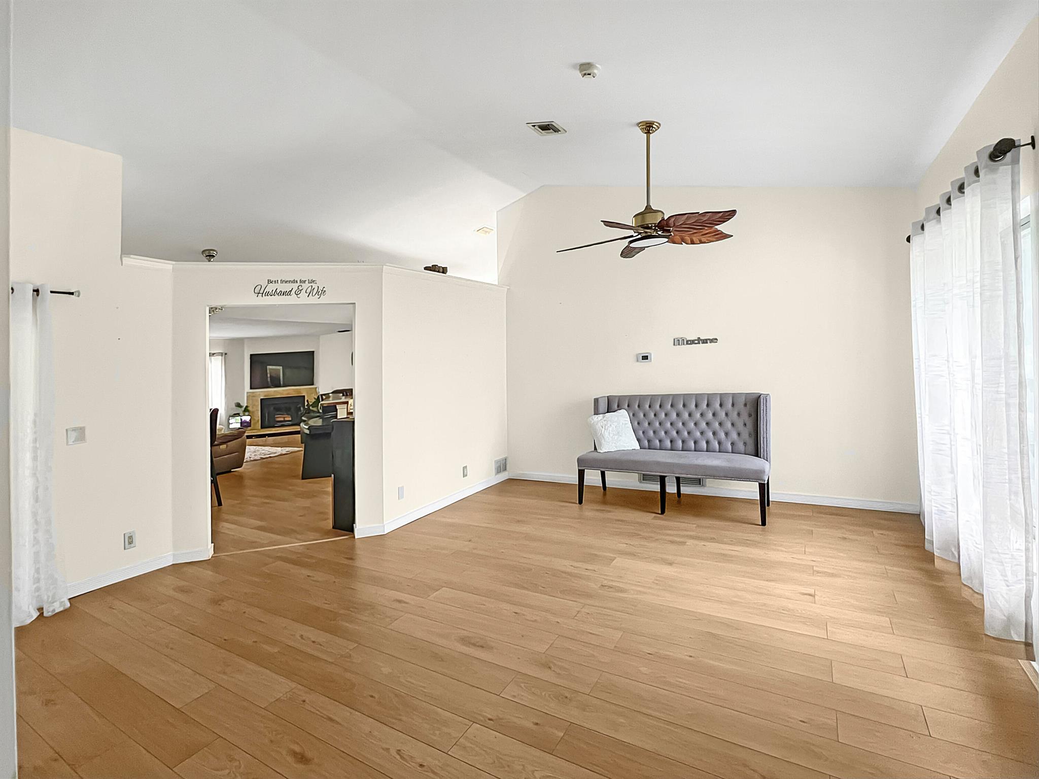 Nestled in the sought-after most eastern community of the Acreage, this meticulously landscaped 3-bedroom, 2-bathroom home with 3 car detached garage and detached game room/man cave spans a generous 1.31-acre lot. NEW in 2021: roof and blown-in insulation, hurricane impact windows throughout and water softener system. New laminate floor throughout. Updated bathrooms. His and her main custom closets. House generator hook up. Wood burning fireplace. Irrigation, fully fenced with electric gate. Huge fully paved driveway, perfect for hobbyists or small business owners. An attached two-car garage offers additional parking and storage solutions. Inside, enjoy a spacious formal living room flowing into an open-concept kitchen, breakfast nook. Outside, a screened-in covered patio.