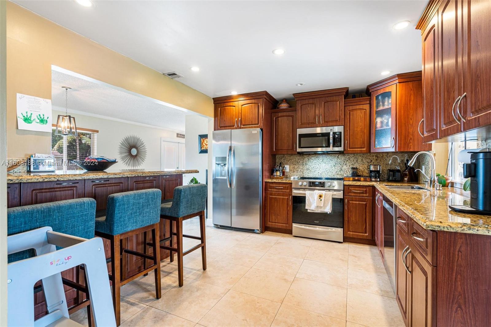 Beautiful family retreat in the sought out community of Pembroke Lakes offers 4 bedrooms & 2 baths with a converted garage space. Upon entering, you are greeted with a huge formal living room. This home features a functional floor plan with plenty of space and storage throughout, tile and laminate flooring,large family room and a spacious covered patio terrace. The backyard is a a true oasis for relaxing, enjoying the pool or entertaining. Master bedroom bath was tastefully remodeled recently. Newer A/C unit in 2021. NO HOA. Near major highways, dining and retail.Priced to sell! ( Note:storage space was left and garage can be converted back)
