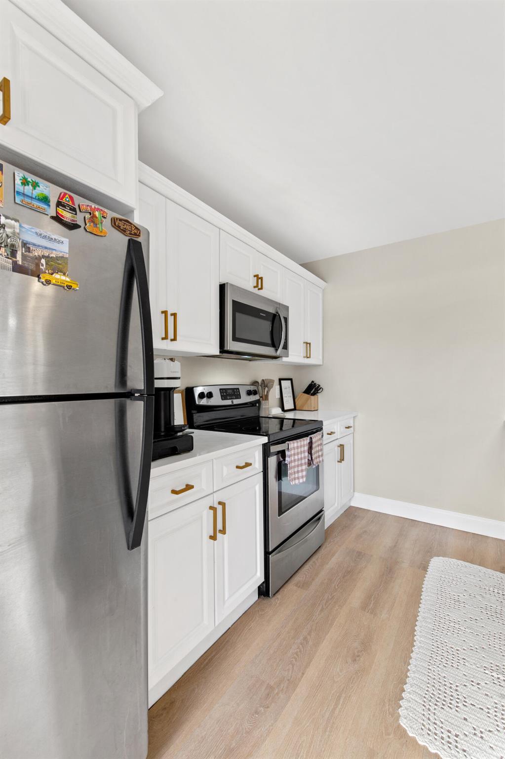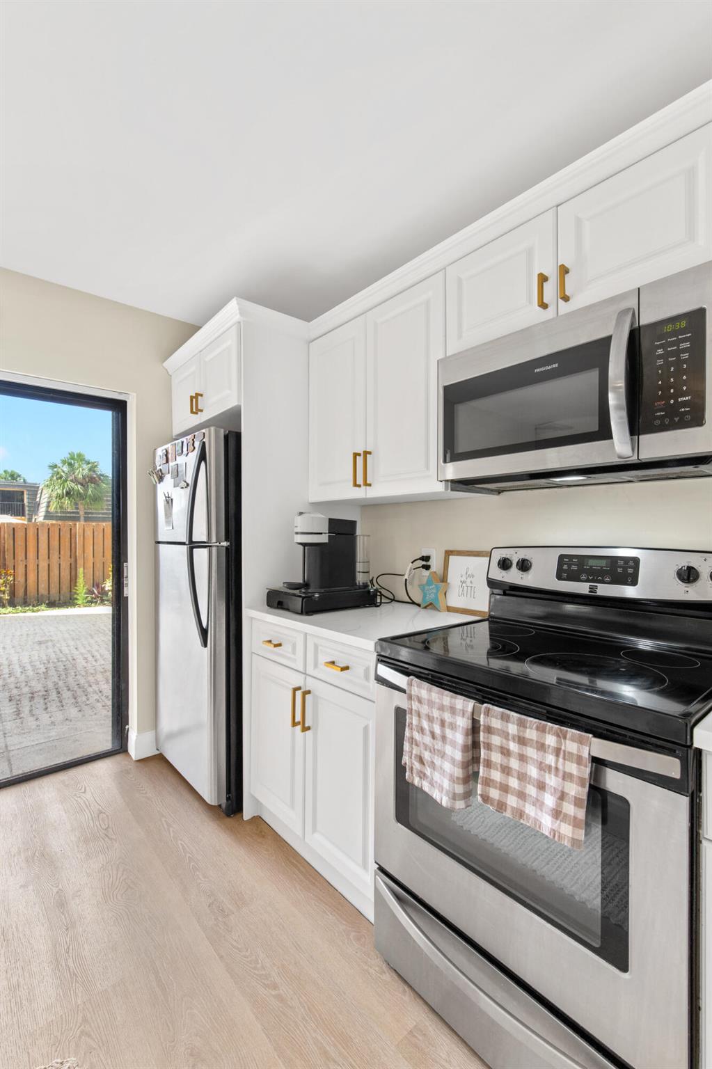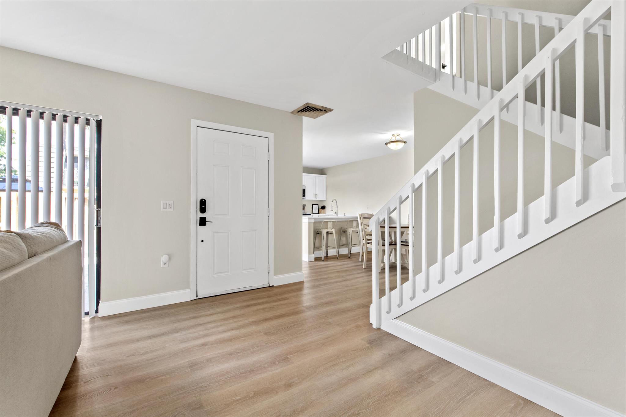Step into this meticulously maintained, renovated to the nine's, two-story townhouse! Inside, the home boasts a sleek kitchen adorned with stainless steel appliances, wood cabinetry, and granite countertops, creating a perfect blend of style and functionality. The entire residence has been treated to new vinyl plank floors and fresh paint, and quartz countertops, showcasing a contemporary aesthetic throughout. Two and a half revamped bathrooms feature the same high-quality finishes and are complemented by stylish light fixtures.The attention to detail in this full renovation is evident, reflecting the work of a perfectionist who prioritizes quality craftsmanship.