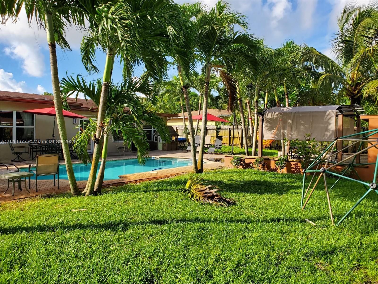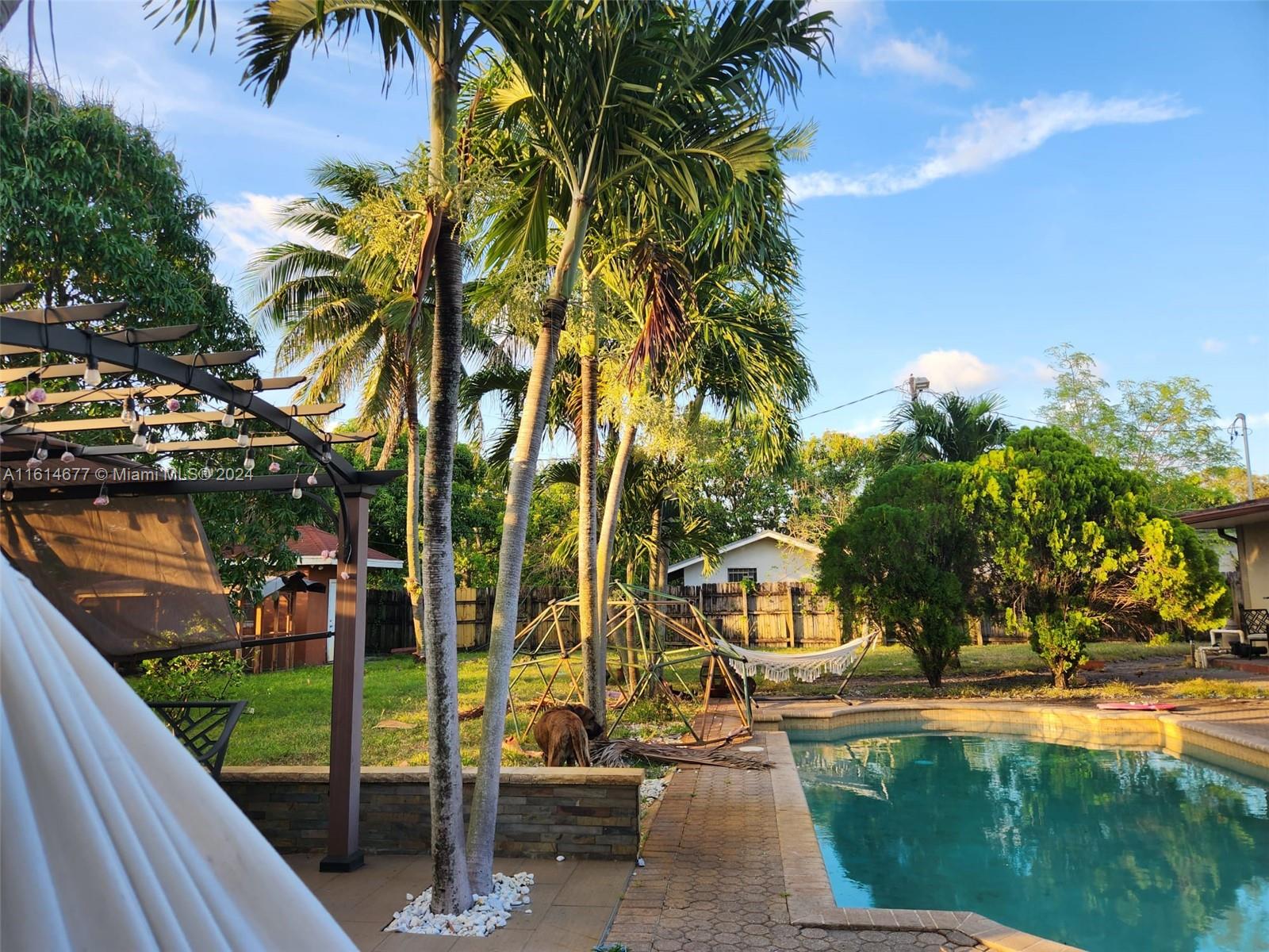 Spacious Pool Home with In-Law Suite - Perfect for Entertaining! This stunning 4/3 (or 3/2 + in-law suite) home offers everything you need for comfortable living and grand entertaining. The home boasts beautiful travertine marble floors throughout the living areas and newer laminate floors in the bedrooms. Unwind in the eat-in kitchen featuring granite countertops, adjacent to the office. The impact windows provide peace of mind and energy efficiency. Step outside to your private oasis! The fenced-in yard features a refreshing swimming pool and mature citrus trees like mango, coconut & moringa. The home sits on a .36 acre lot! The open floor plan and built-in outdoor kitchen with a firewood pizza oven make hosting unforgettable gatherings a breeze. A rare find in Melrose Park! NO HOA!!!