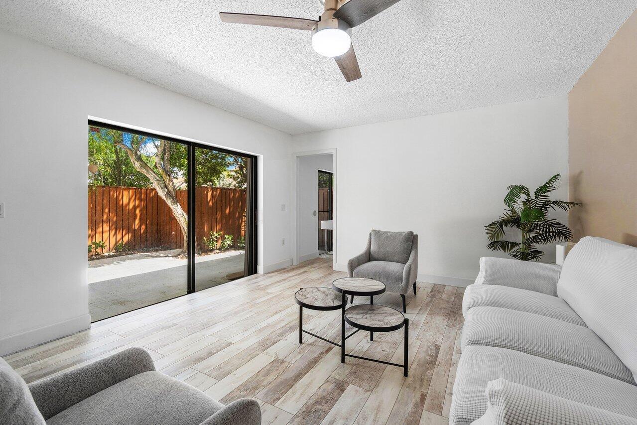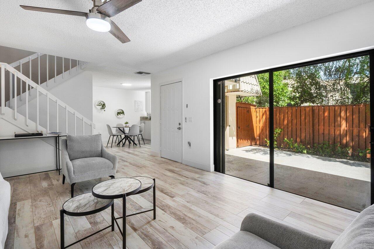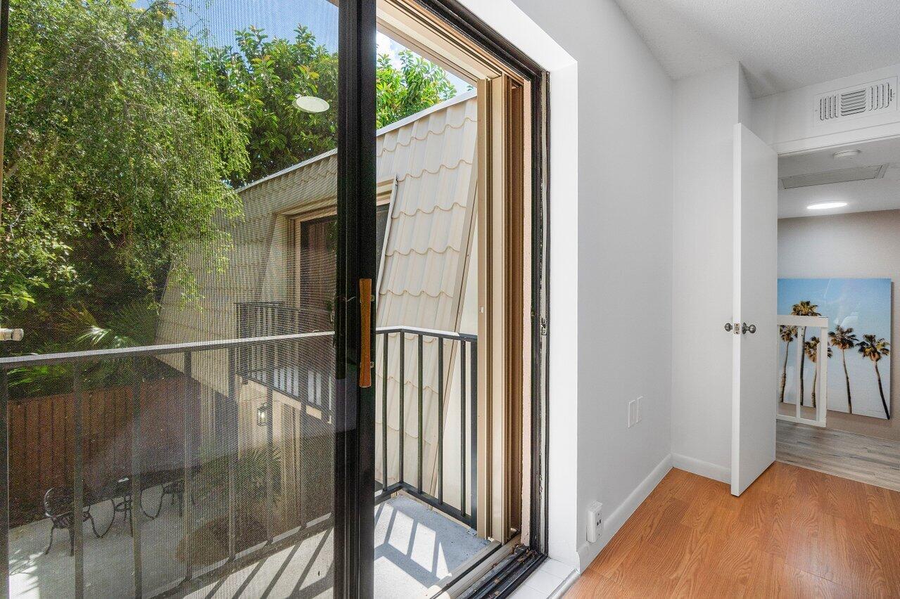 Spacious 3 Bedrooms, 2 and Half Bathrooms, private courtyard, gated community. Bright & Breezy corner unit. New Stainless Steel kitchen appliances, New Air Conditioner, New lighting and freshly painted. Tile & laminate flooring. One Bedroom located on the 1st floor, sliding door leads to Courtyard. Master Bedroom & 2nd Bedroom upstairs with Balconies. Association fee includes cable, water, exterior maintenance, exterior building insurance, community pool. NEWER ROOF 2021. No trucks, no motorcycles, 2 cars MAX, 1 pet. INVESTORS CAN RENT immediately, no more than 3 leases per 12-months consecutive period permitted. Location close to Palm Beach Outlets shopping center, City Place downtown, Kravis Performing Arts Center.