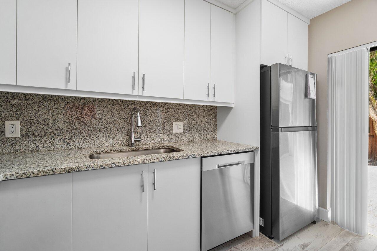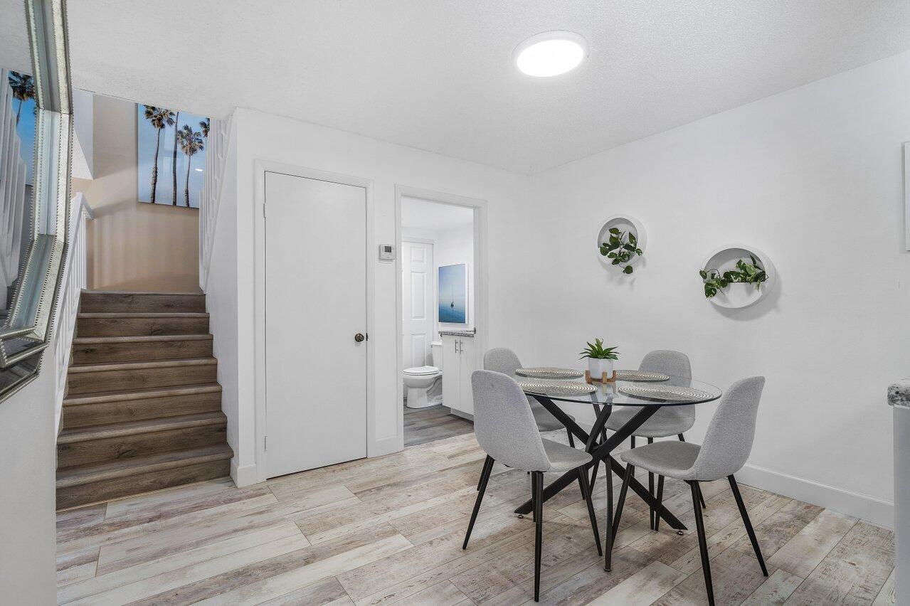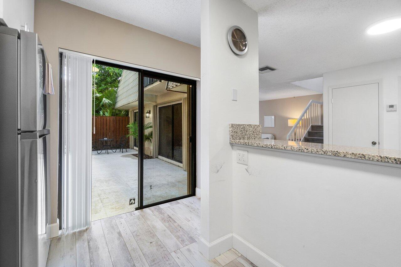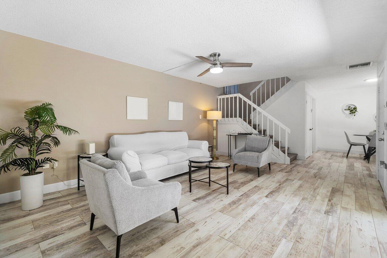 Spacious 3 Bedrooms, 2 and Half Bathrooms, private courtyard, gated community. Bright & Breezy corner unit. New Stainless Steel kitchen appliances, New Air Conditioner, New lighting and freshly painted. Tile & laminate flooring. One Bedroom located on the 1st floor, sliding door leads to Courtyard. Master Bedroom & 2nd Bedroom upstairs with Balconies. Association fee includes cable, water, exterior maintenance, exterior building insurance, community pool. NEWER ROOF 2021. No trucks, no motorcycles, 2 cars MAX, 1 pet. INVESTORS CAN RENT immediately, no more than 3 leases per 12-months consecutive period permitted. Location close to Palm Beach Outlets shopping center, City Place downtown, Kravis Performing Arts Center.