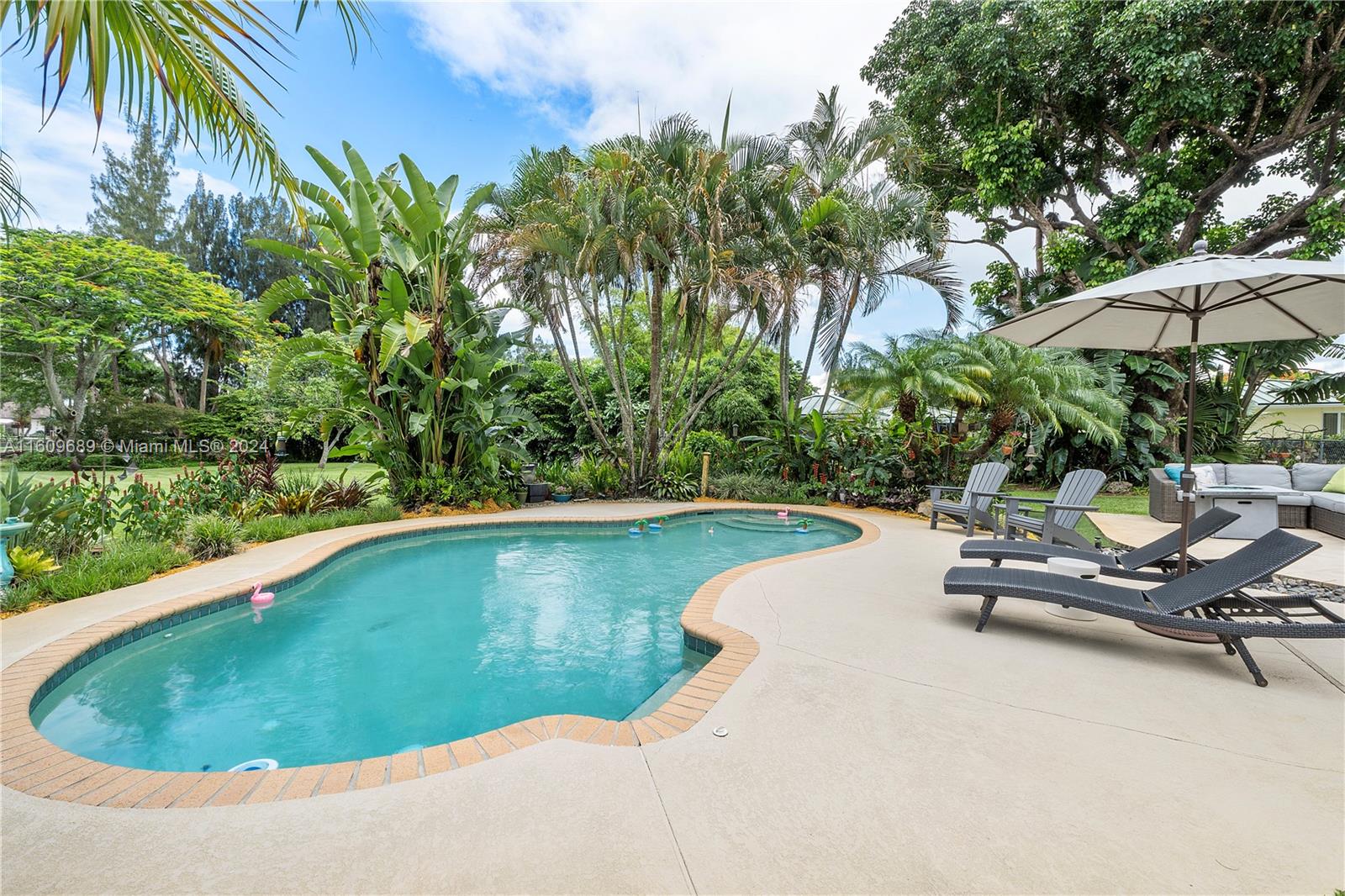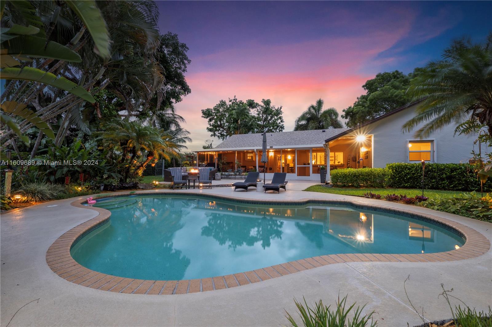 Welcome to your waterfront oasis in Southwest Ranches! This 3 bed, 2 bath home is beautifully nestled on just under an acre of land, featuring complete impact windows + doors, walk-in closets in each bedroom, brand new roof Jan. 2024, a sparkling pool enclosed by a lush gardenscape, & an oversized backyard w/ endless potential! The split floor plan boasts open living spaces, perfect for entertaining. Kitchen windows overlook the screened-in patio & beautifully manicured backyard, lined with an array of tropical greenery. This home has been beautifully maintained & is equipped with a UV AC filter, a water softener system + a reverse osmosis water purification for the kitchen sink/fridge. Workman area in garage, epoxy flooring + custom storage cabinets. A true gem in the heart of SW Ranches.