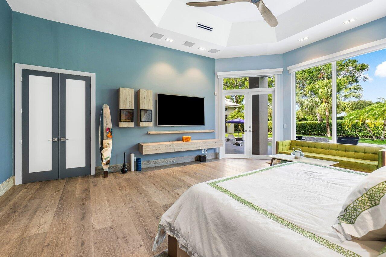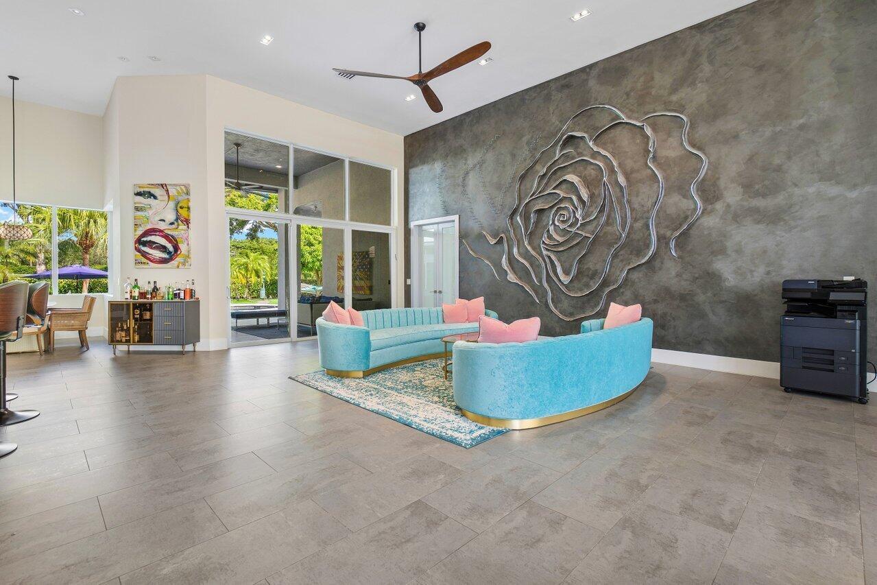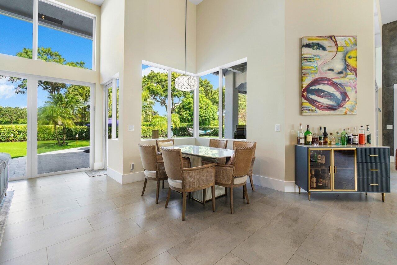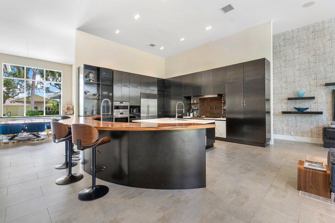 A designer's dream! Beautiful high end renovation: new impact windows and doors, spectacular chef's kitchen with FOUR ovens, two dishwashers & two sinks, large GAS range & griddle - huge curved bar top for easy and sophisticated entertaining. Amazing open space with 20' cathedral ceilings & high windows for fabulous natural light. Five bedrooms (one used as office) convenient split layout. New summer kitchen with piped in propane, new ACs, new tankless water heaters, new floors & bathrooms. Generator. Stunning views of the serene 4th golf hole from private covered patio with your own personal pool, SPA & putting green! 3 Car garage! Bocaire Country club is mandatory membership boutique, renowned championship golf course, tennis/pickle, high-end dining & Social events. A rated schools.