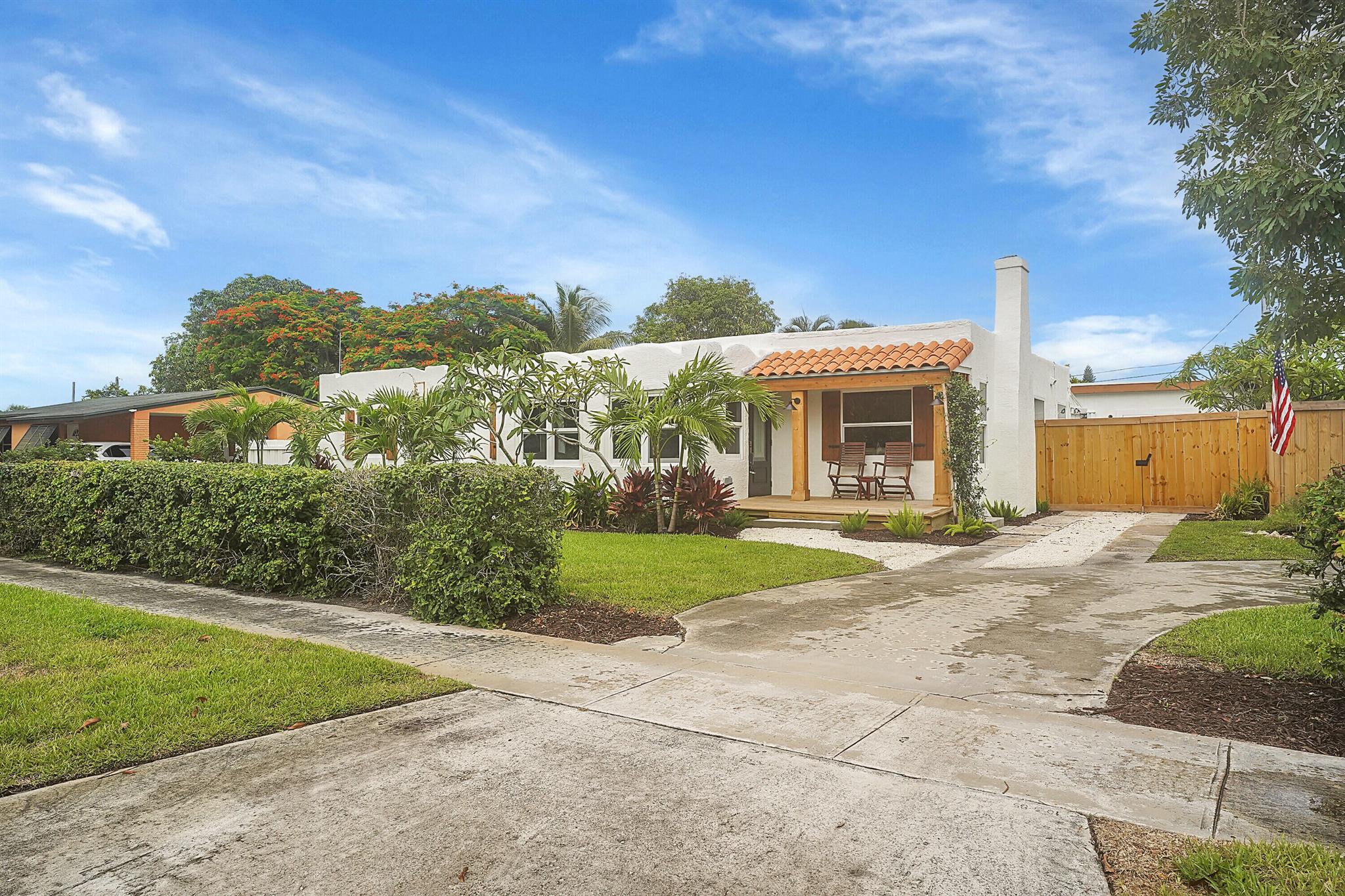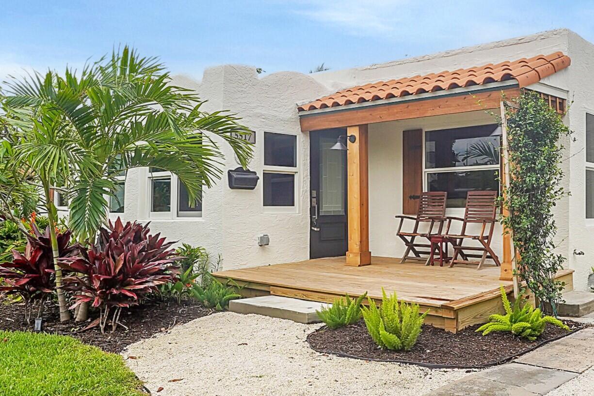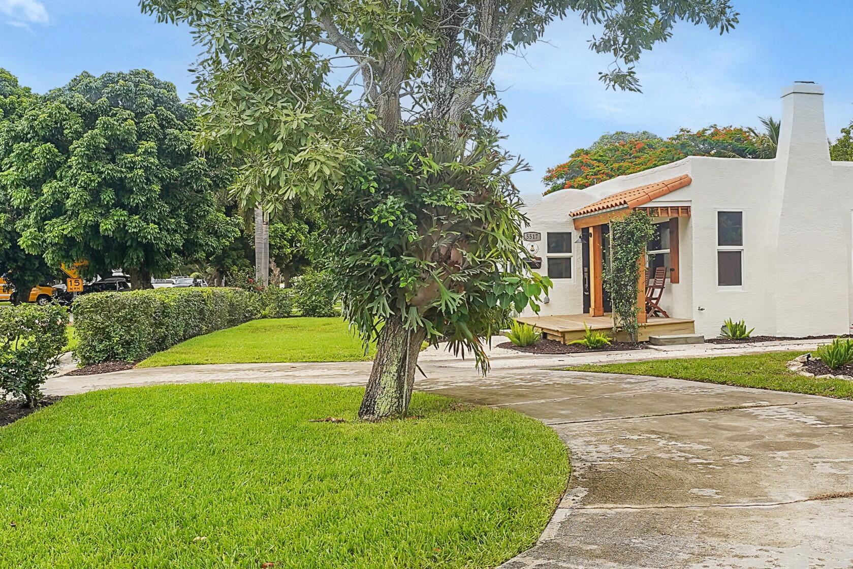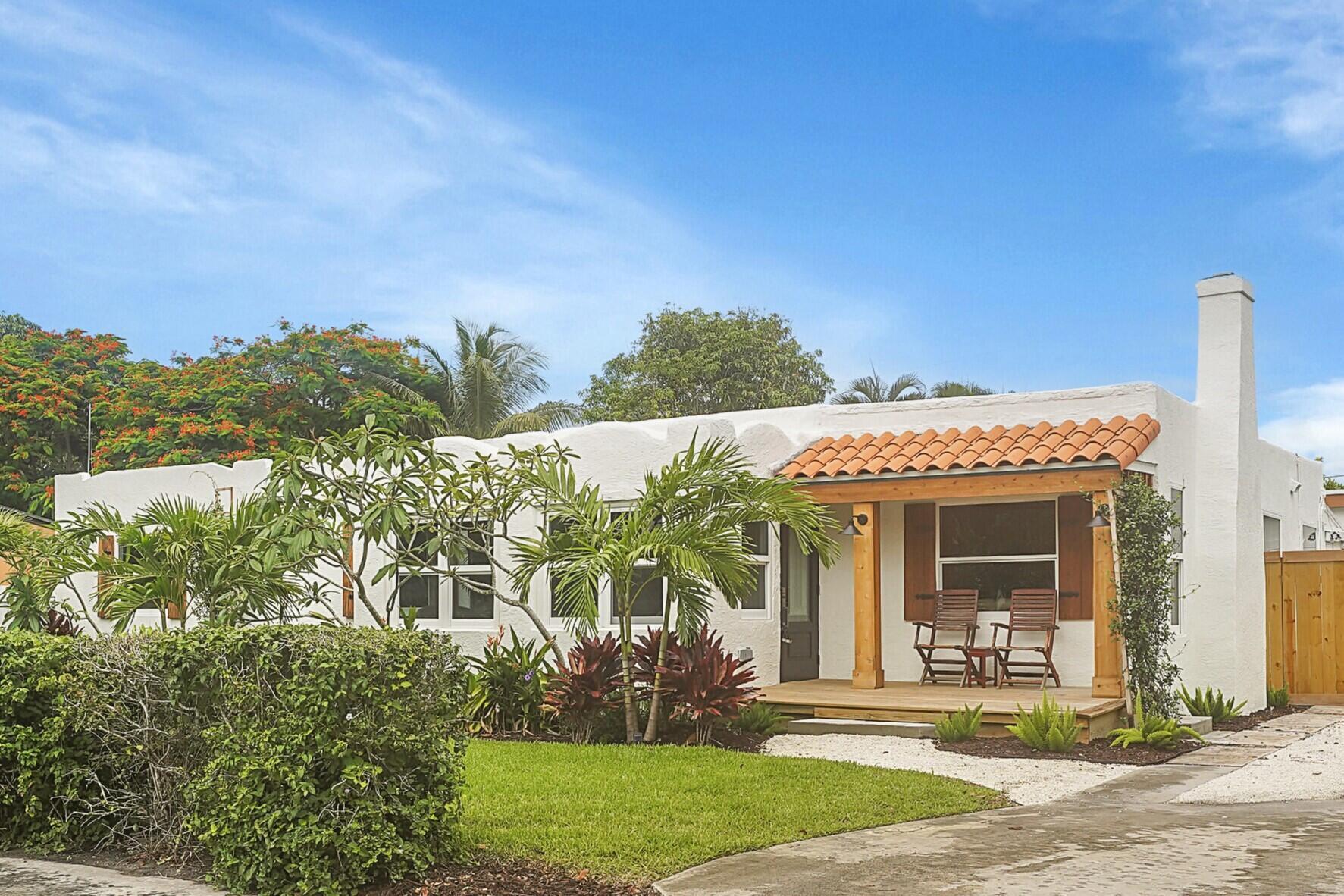 Charm oozes from this beautiful Spanish Mission style compound, home with guest house, on 2 1/2 lots in the coveted south end of West Palm Beach. Old and new are perfectly blended with original fireplace and pecky cypress ceilings together with a stunning kitchen, impact windows and energy efficient LED lighting throughout. Outside is just as stunning with meandering paths, two decks, firepit, very large yard with multiple locations for a pool, and some of the most beautiful tropical landscaping with flowering trees and bushes. There are Mango, oak, Fiddleleaf Fig and 3 of the largest Staghorn ferns in the county... inspiring the name of the home, ''Staghorn Manor''. Guest house is a true 1 bedroom 1 bath with living room, kitchen and laundry. Multiple energy saving features throughout