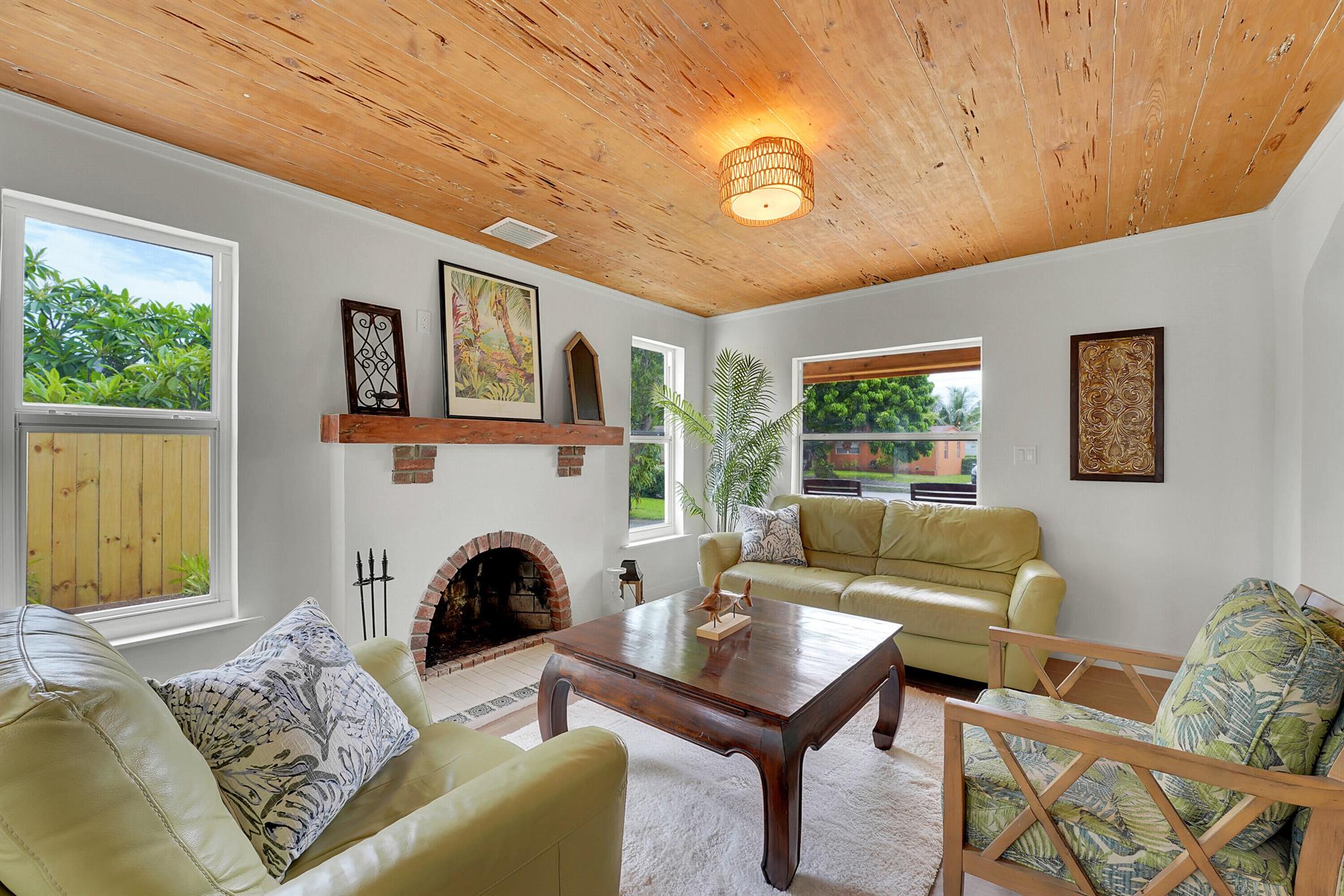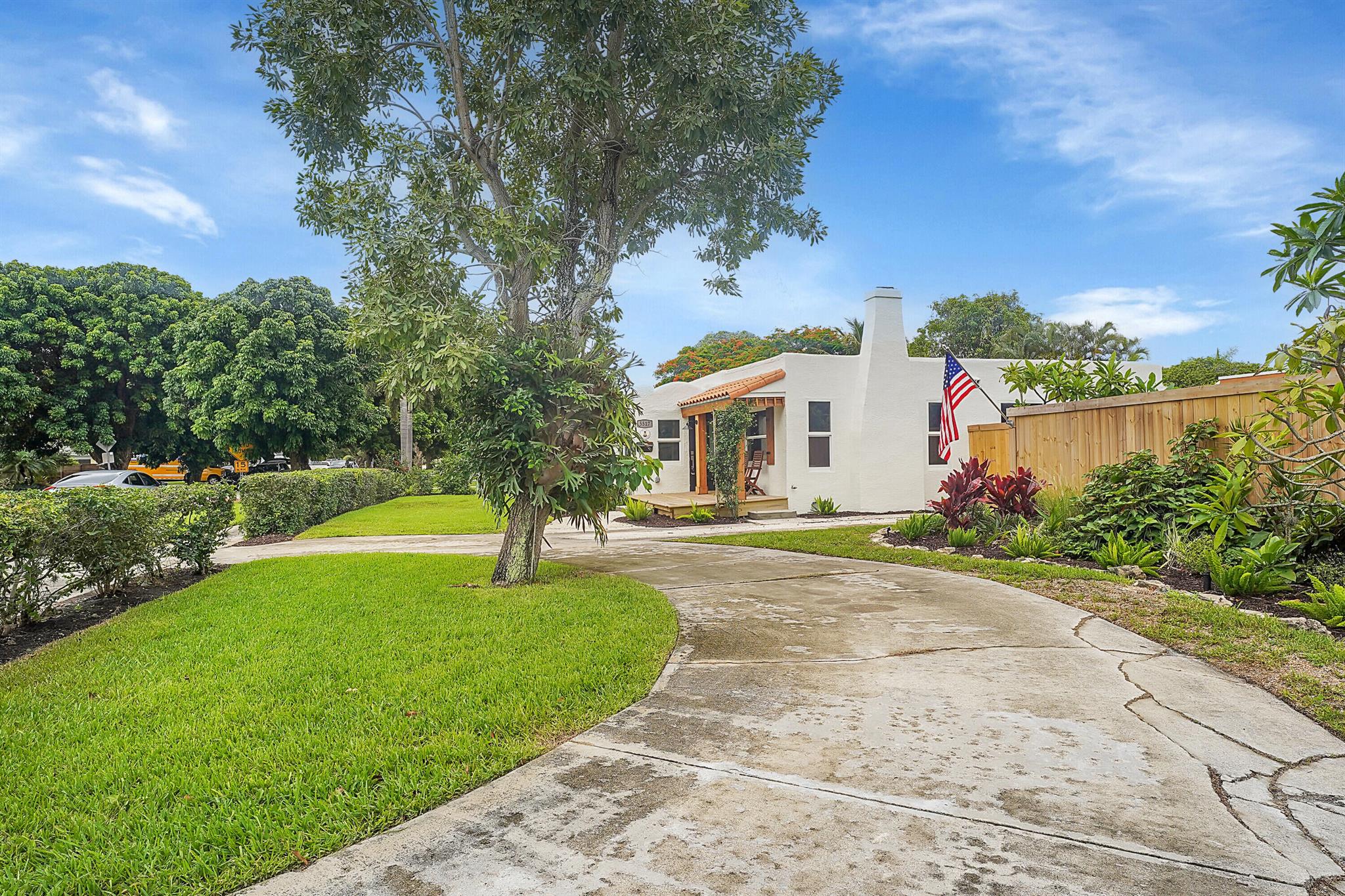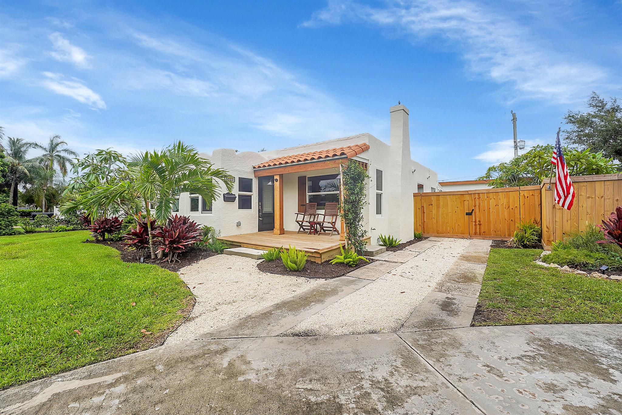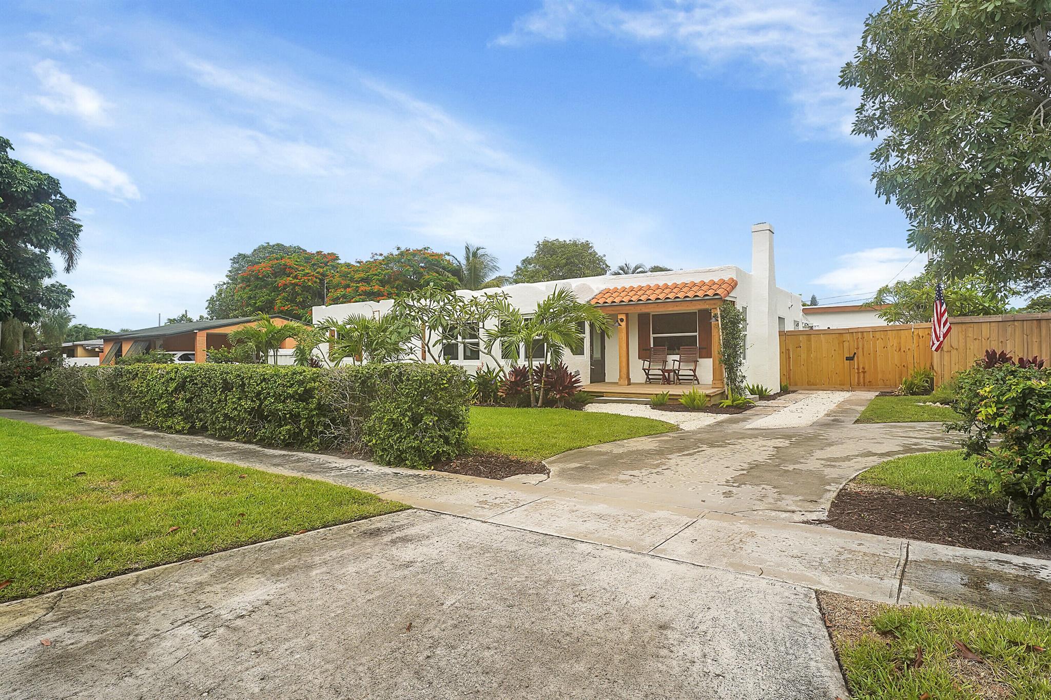 Charm oozes from this beautiful Spanish Mission style compound, home with guest house, on 2 1/2 lots in the coveted south end of West Palm Beach. Old and new are perfectly blended with original fireplace and pecky cypress ceilings together with a stunning kitchen, impact windows and energy efficient LED lighting throughout. Outside is just as stunning with meandering paths, two decks, firepit, very large yard with multiple locations for a pool, and some of the most beautiful tropical landscaping with flowering trees and bushes. There are Mango, oak, Fiddleleaf Fig and 3 of the largest Staghorn ferns in the county... inspiring the name of the home, ''Staghorn Manor''. Guest house is a true 1 bedroom 1 bath with living room, kitchen and laundry. Multiple energy saving features throughout