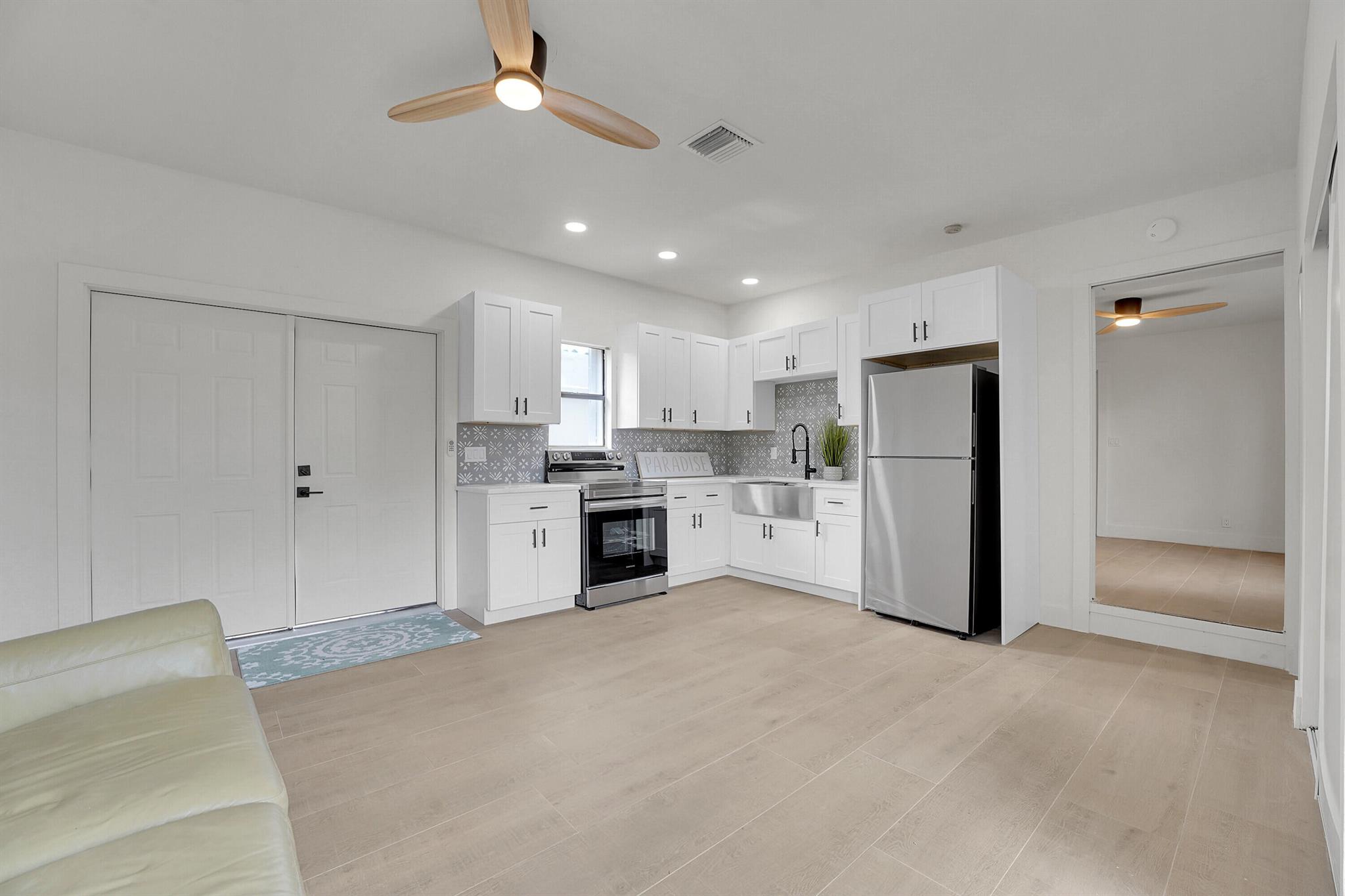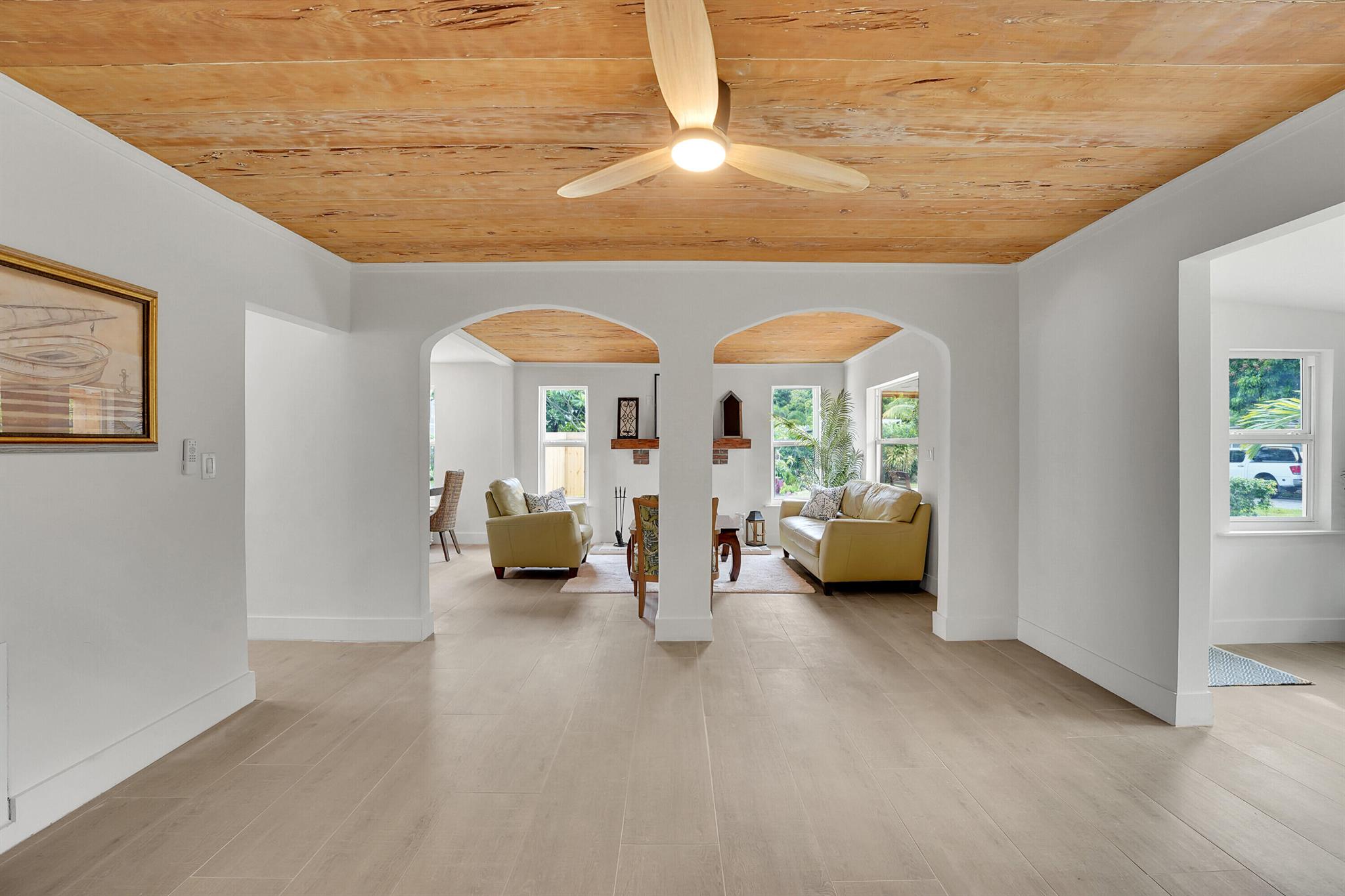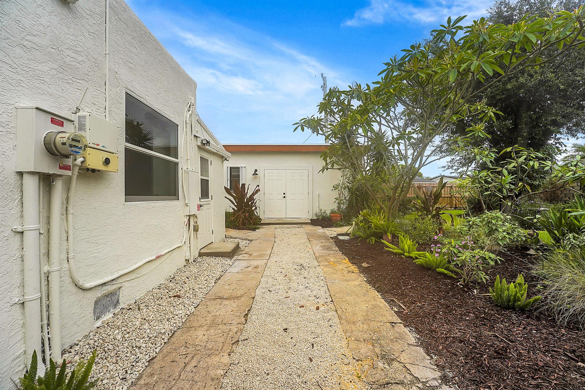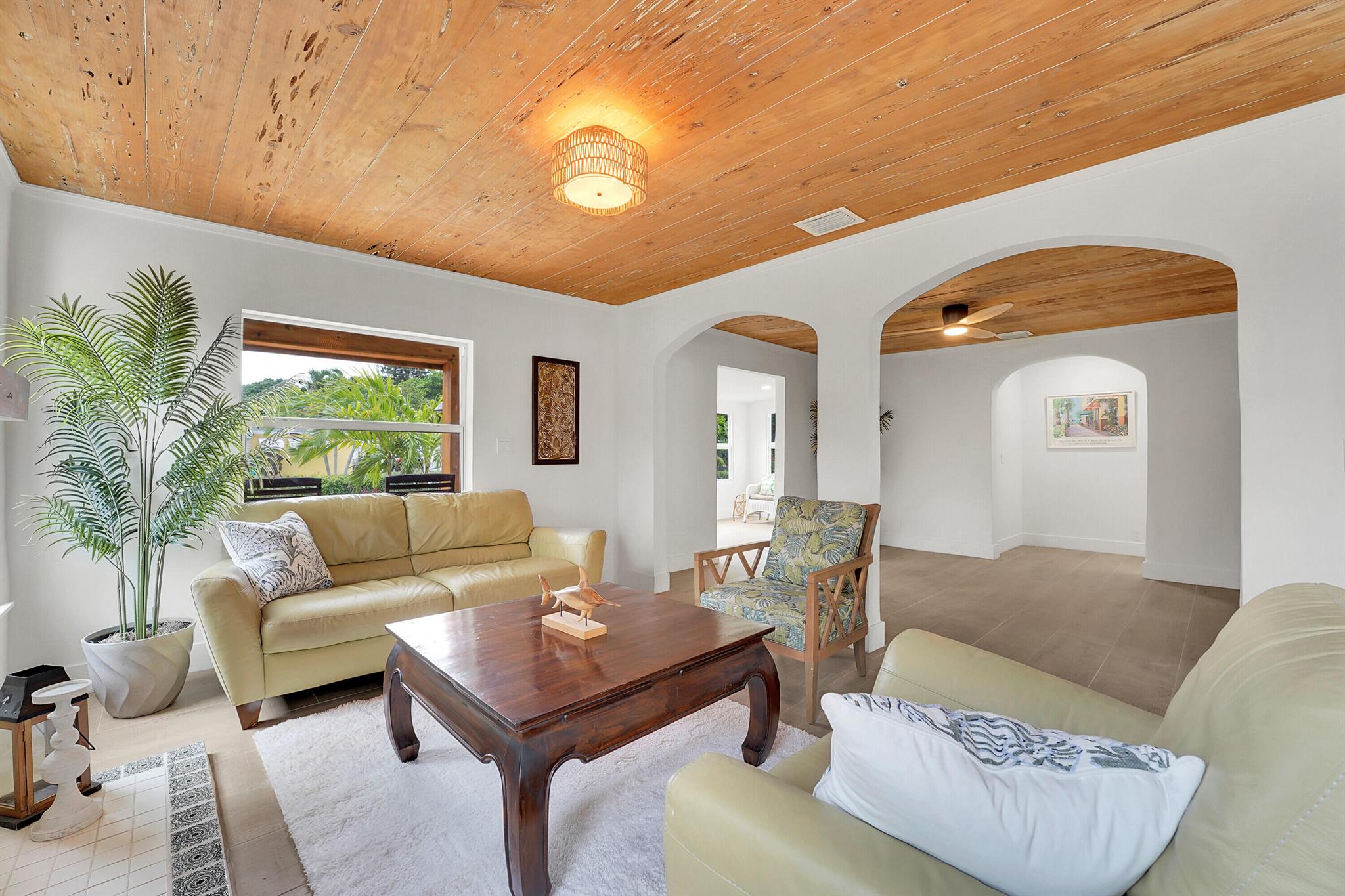Charm oozes from this beautiful Spanish Mission style compound, home with guest house, on 2 1/2 lots in the coveted south end of West Palm Beach. Old and new are perfectly blended with original fireplace and pecky cypress ceilings together with a stunning kitchen, impact windows and energy efficient LED lighting throughout. Outside is just as stunning with meandering paths, two decks, firepit, very large yard with multiple locations for a pool, and some of the most beautiful tropical landscaping with flowering trees and bushes. There are Mango, oak, Fiddleleaf Fig and 3 of the largest Staghorn ferns in the county... inspiring the name of the home, ''Staghorn Manor''. Guest house is a true 1 bedroom 1 bath with living room, kitchen and laundry. Multiple energy saving features throughout