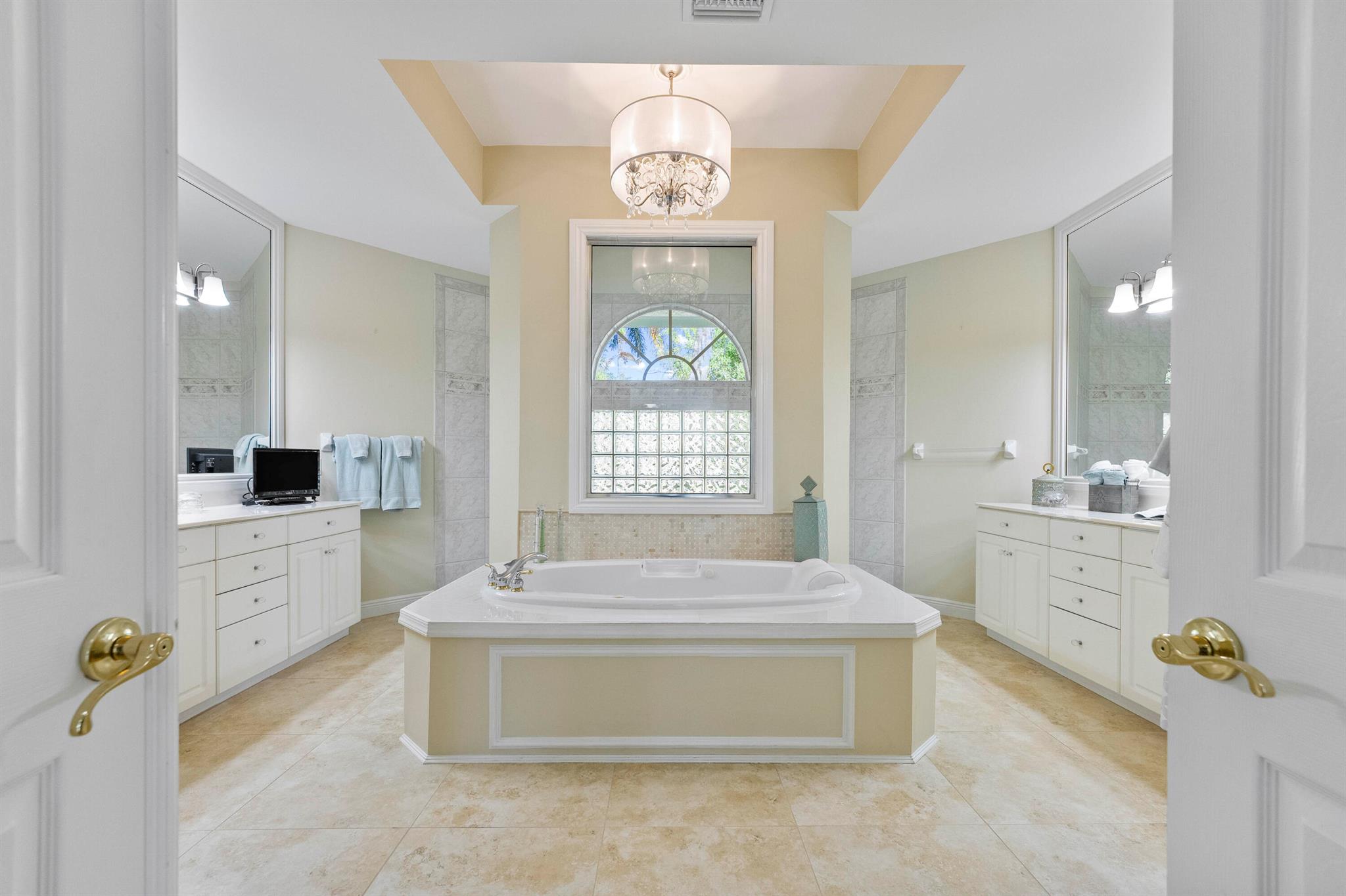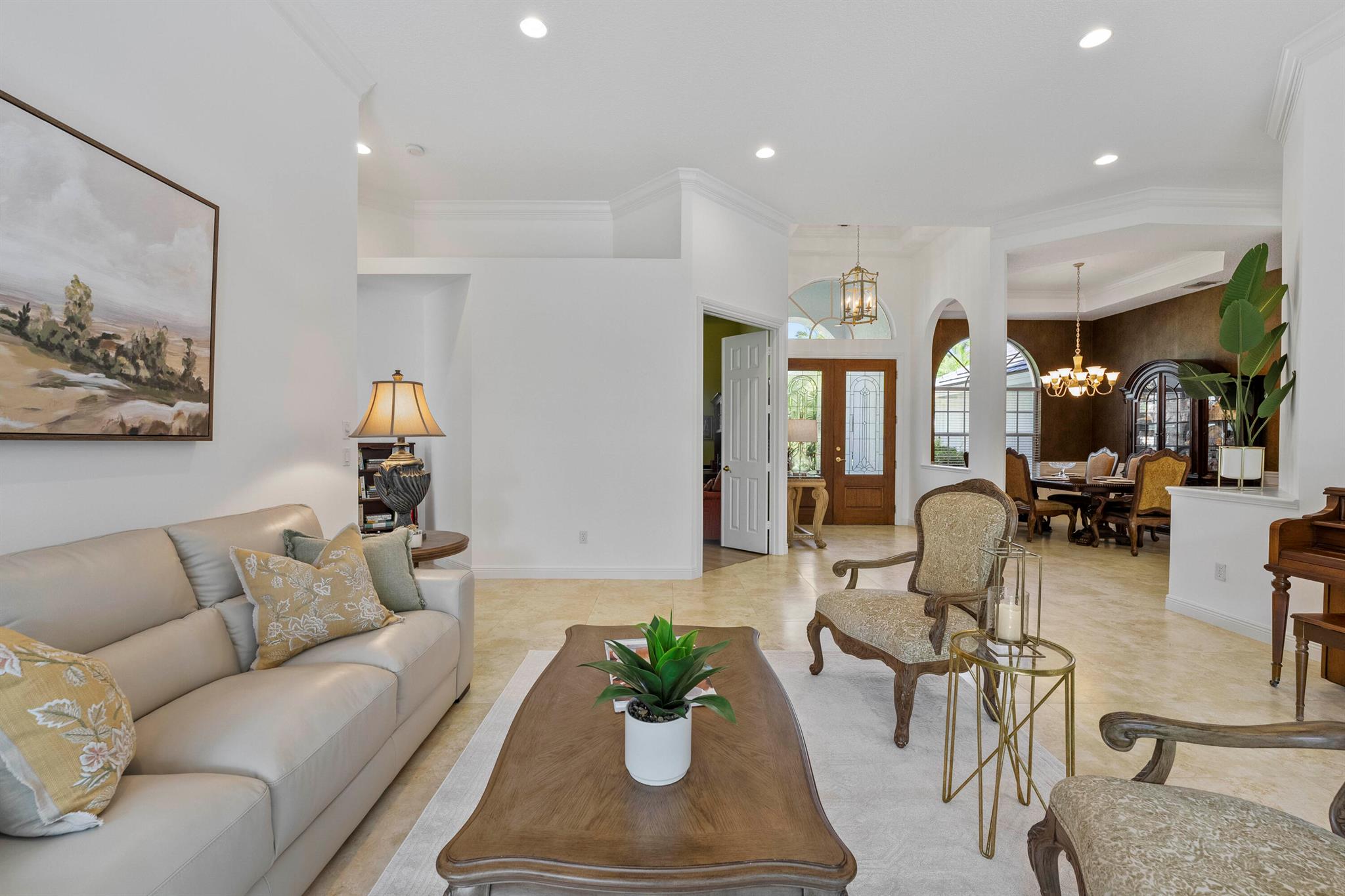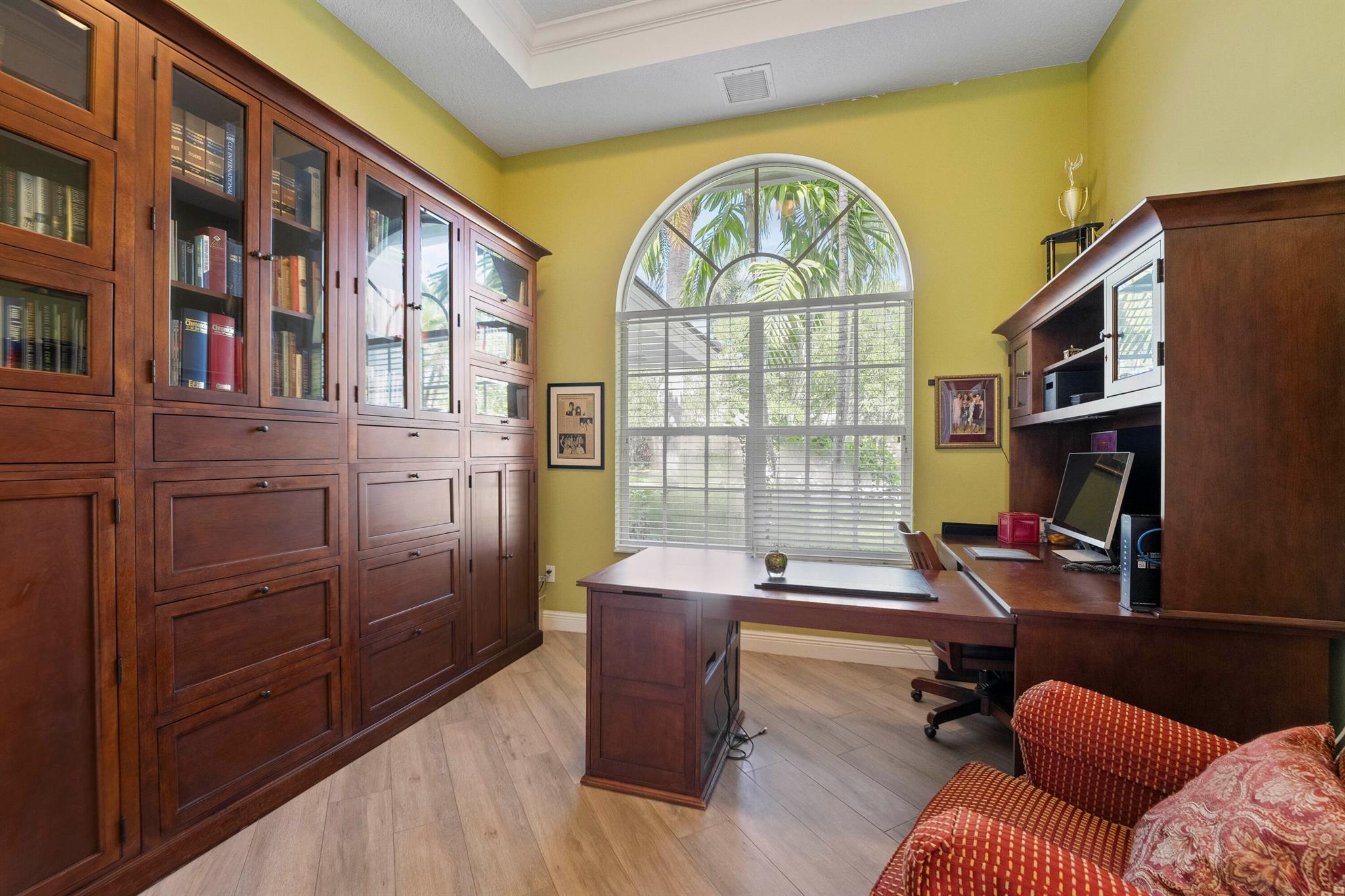 Start enjoying the Palm Beach County's lifestyle in this custom built home in West Palm Beach's beautiful Breakers West Country Club. With a NEW tile roof in 2022 and stucco exterior painted in 2024, this lovely home offers a wonderful floor plan with almost 3,400SF of living area and includes 4 Bedrooms + Office (with closet), 3.5 Baths and 3-car garage. Classic crown molding, 12ft ceilings and crisp white walls make this home the perfect backdrop for making it your own. Unique to this property's location is an adjoining common area easement, giving this home additional privacy from the neighboring home. With the popular split floor plan, this home features the Primary Suite and Office on one side of the house and 3 Bedrooms are located on the other side. The very spacious Primary