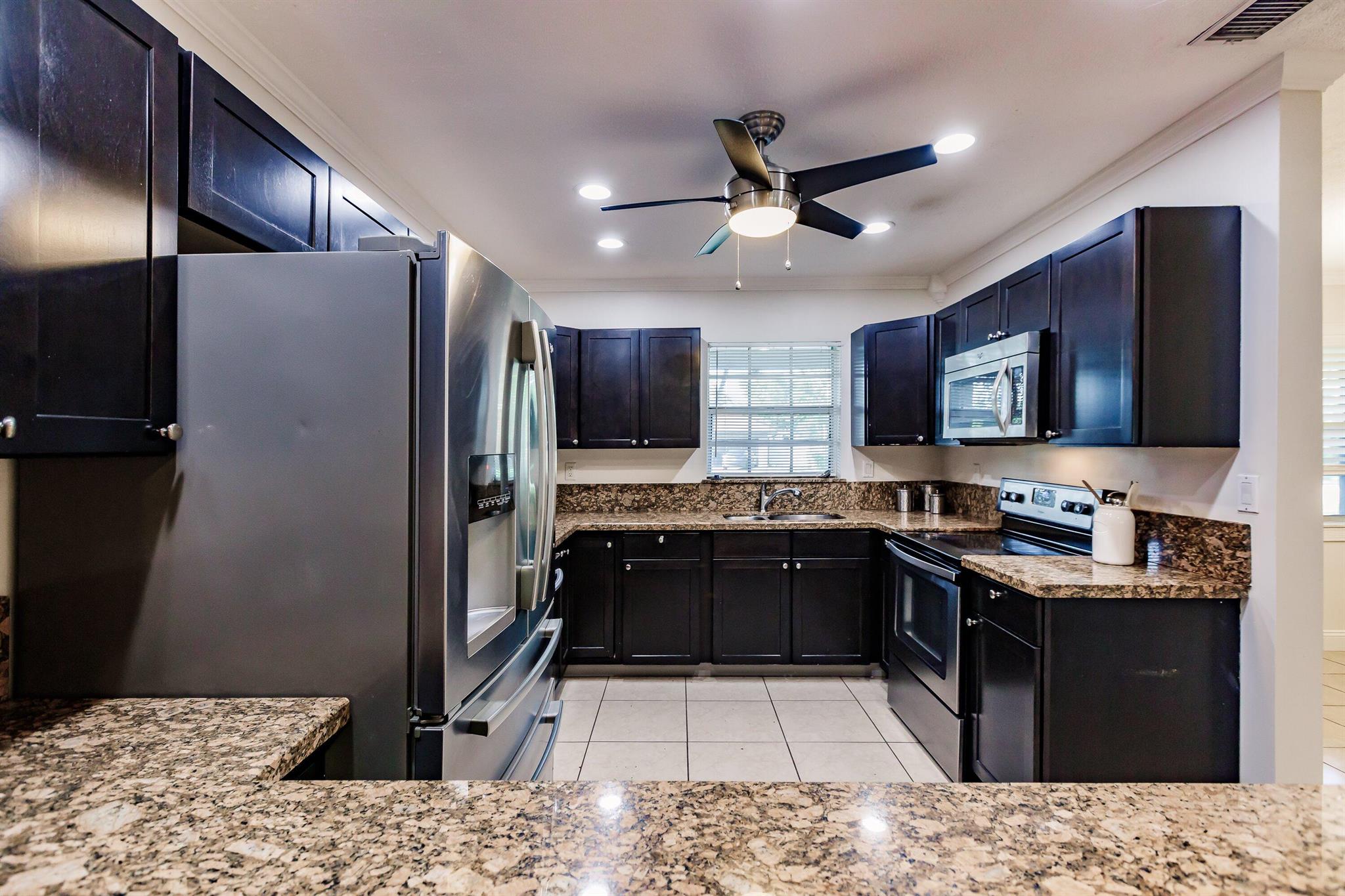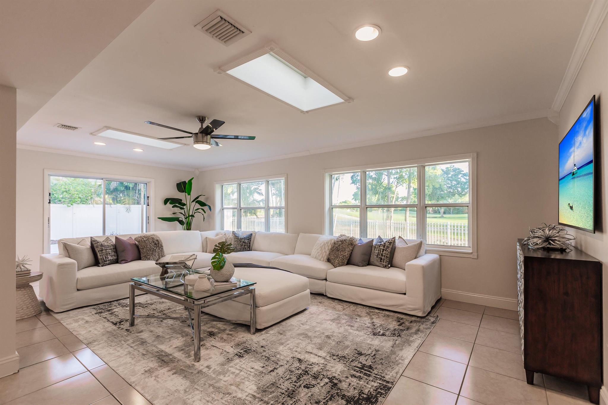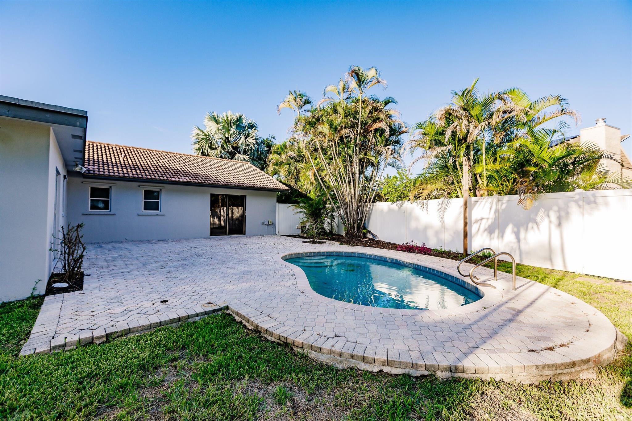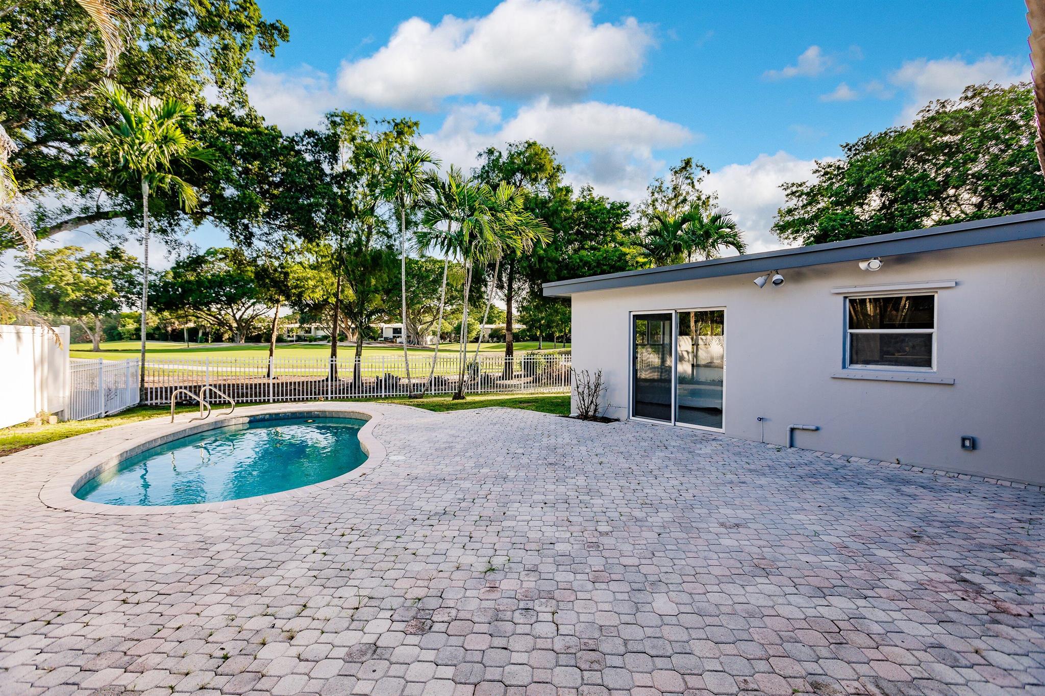This spacious private 3- bed, 2.5 bath home, overlooking the Jacaranda Golf Club, has been newly painted inside and out. It features a cozy fireplace, vaulted ceilings, and a massive yard with a private pool. The kitchen boasts newer appliances, granite countertops, and a tile backsplash. The versatile fourth bedroom can serve as an office or den. Additionally, the home includes a large multi-purpose room perfect for laundry, storage, and more. With ample space, there's plenty of room for all your toys. Enjoy luxury and comfort in this beautifully updated home!